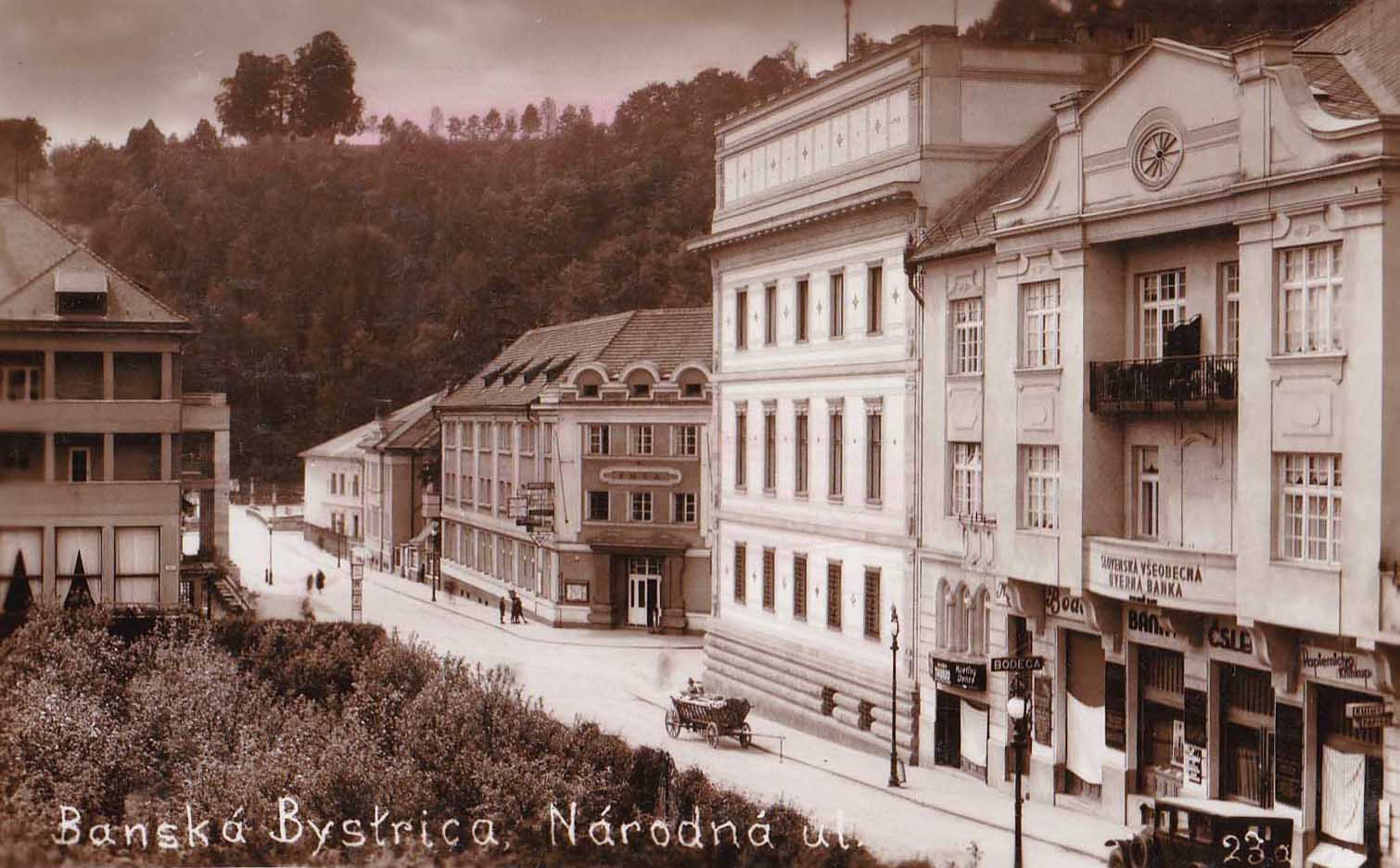 Nastala však šťastná zhoda okolností.V tom čase Lesné riaditeľsvo začalo búrať svoju budovu ( kammerhoff) na námestí a nahradilo ju novostavbou (1918) v prevedení, ako ju dnes poznáme (budova Lesov SR). Vytvorenie podjazdu v prízemí otvorilo nové možnosti využitia vzácneho územia, ktoré dovtedy slúžilo pre záhrady a hospodárske objekty domov námestia. Tento, podľa mňa historický počin, bol počiatkom vzniku najnovšej exluzívnej ulice v historickom jadre mesta- terajšej Národnej ulice. Lobovaním u ministra pôdohospodárstva mesto výhodne získalo od Lesného riaditeľstva pozemok záhrady vo dvore úradu a prikúpilo aj pozemky od súkromníkov až po Hron.