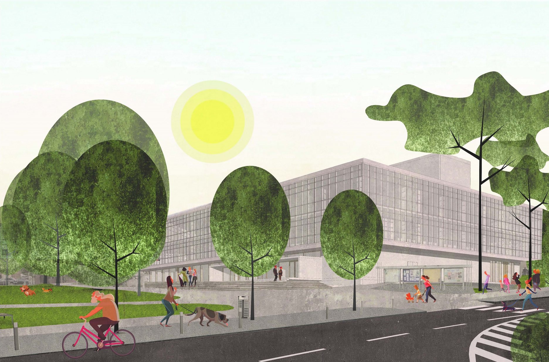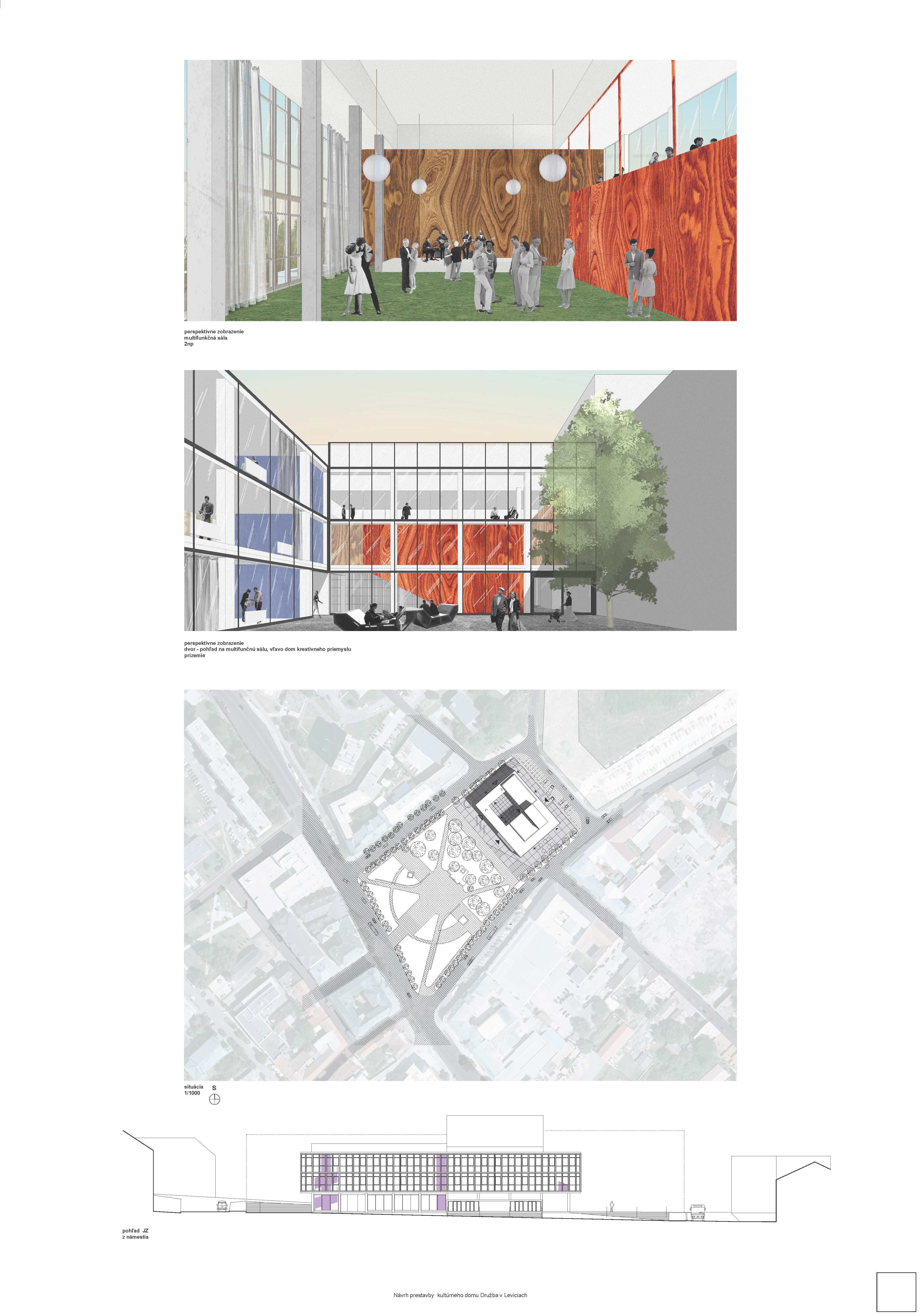 Súťažný návrh č.2: Ing. Arch. Juraj Ďurík, Ing. Arch. Lucia Ďuríková, Ing. Arch. Katarína Klinčoková, Ing. Valéria Rosová, Petra Arvajová - Levice, Nadlice