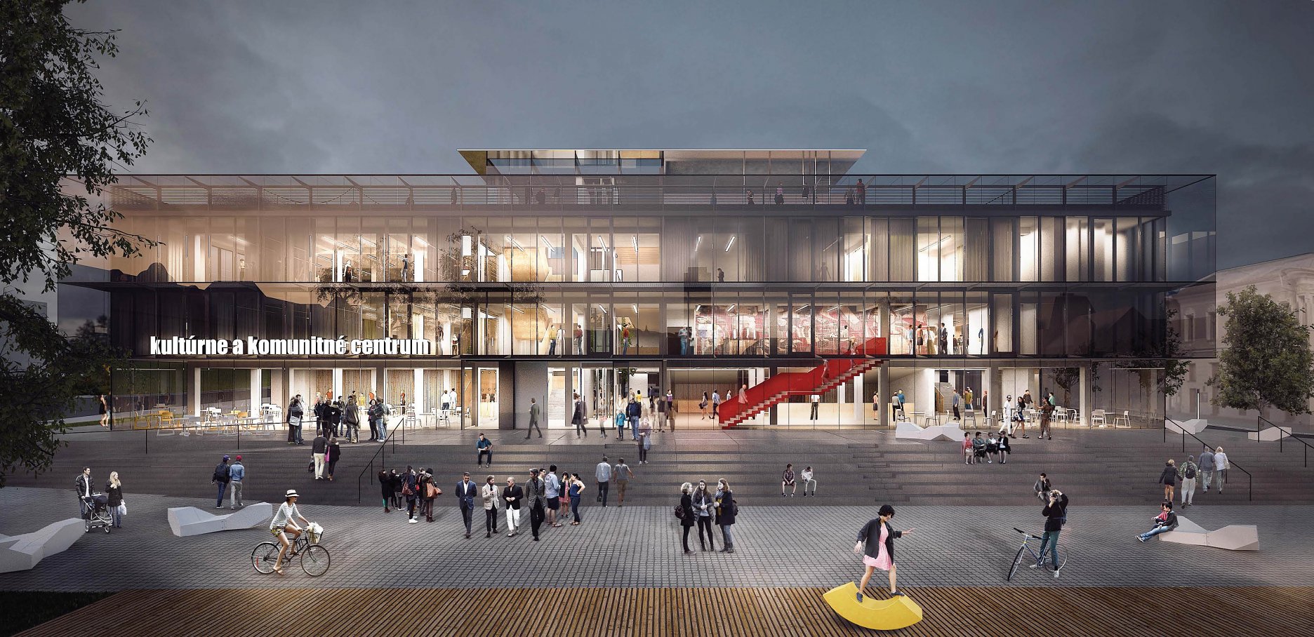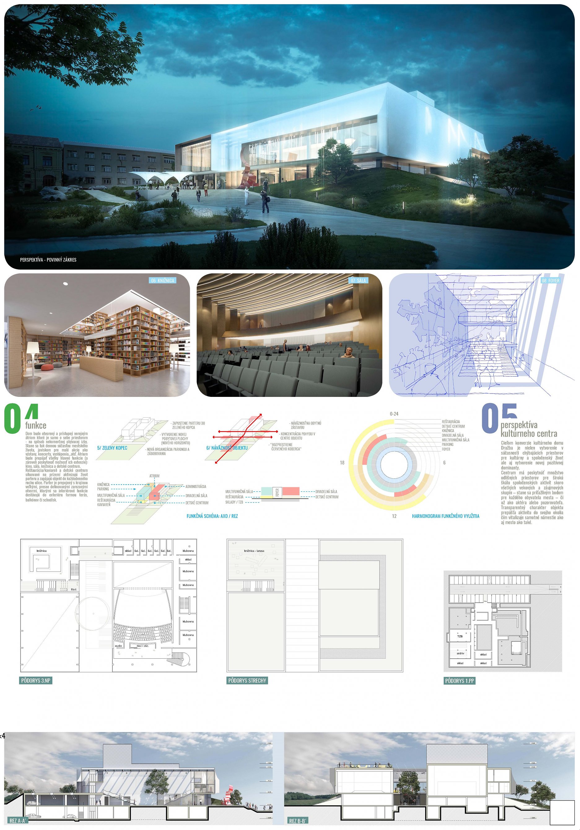 Víťazný návrh podľa názoru a rozhodnutia poroty skĺbil najlepšie zo všetkých predložených súťažných návrhov hlavné požiadavky vyhlasovateľa a poroty na riešenie rekonštrukcie jestvujúceho kultúrneho domu z pohľadu funkčnej náplne, celkového architektonického výrazu a ekonomických kritérií. Vysoko hodnotený bol v návrhu citlivý prístup k základnej hmote objektu so zachovaním jeho hlavných proporcií a kompozície, pri použití jednoduchých a súčasných výrazových prostriedkov, vytvárajúcich pozitívnu premenu stavby. Táto premena sa neodohráva iba vo výraze objektu, no čo je rovnako dôležité aj v jeho blízkom okolí, dispozícii a prevádzke. Osadenie objektu do zelene prispieva k snahe mesta o zatraktívnenie verejného priestranstva, hoci pri tomto riešení porota odporúča zvážiť v ďalšom postupe predložené riešenie statickej dopravy v okolí kultúrneho domu. Dispozícia objektu je logická a vyvážená, pričom rešpektuje základné danosti pôdorysu - schodisko a vnútorné átrium. Integrovaním mestskej knižnice do objektu autori riešia nielen nevyhovujúci momentálny stav tejto funkcie v rámci mesta, ale zároveň dávajú predpoklad na celodenné využitie objektu a vhodné integrovanie navrhovaných funkcií. Porota odporúča v ďalšom postupe venovať zvýšenú pozornosť pri riešení vstupného predpolia (hlavne jeho schodiskovej časti), zásobovania divadelnej sály a drobným dispozičným nedostatkom, ktoré však z celkového koncepčného pohľadu nie sú zásadné. Návrh je realistickým riešením, ktoré poskytuje požadovanú náplň a funkčnosť spolu s výrazným posunom architektonického pôsobenia objektu, pri zachovaní jeho pôvodného charakteru.