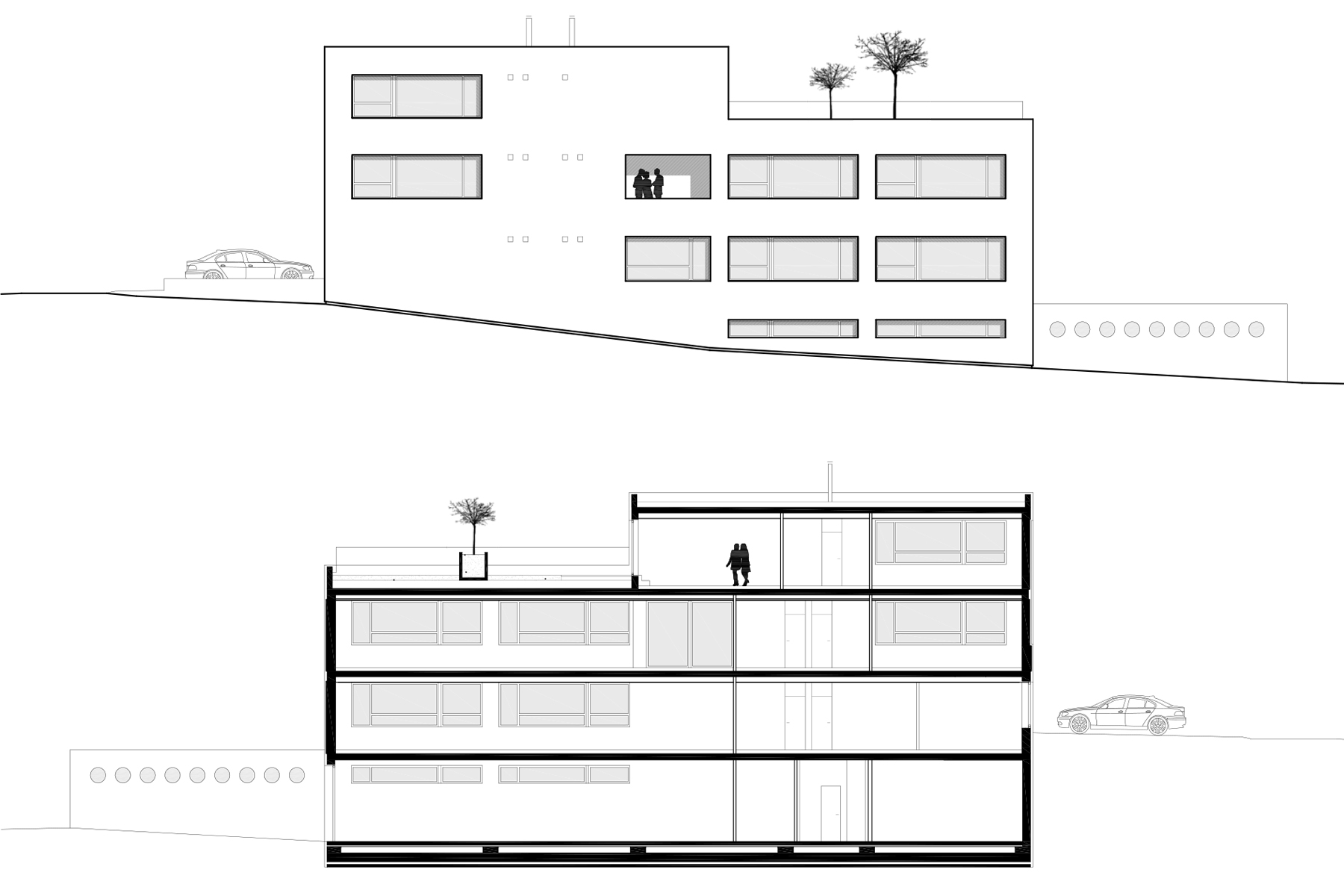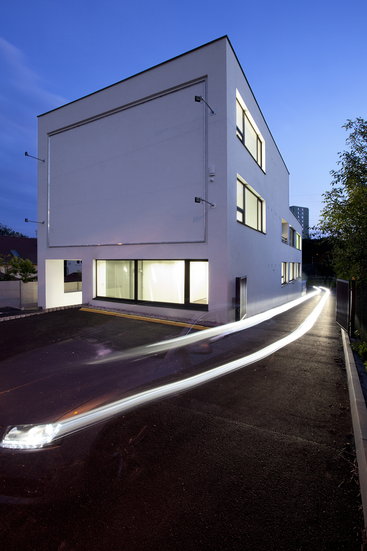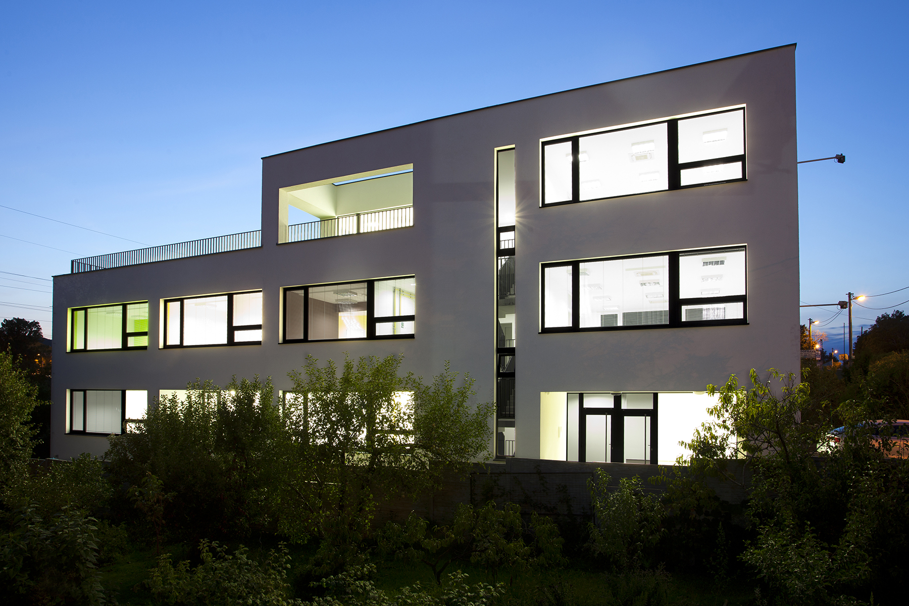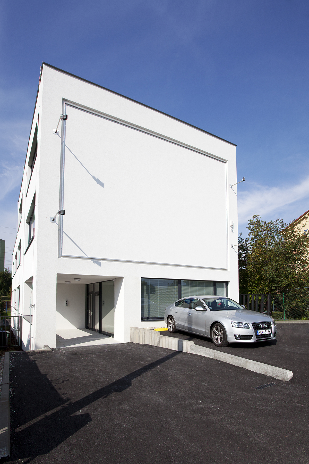 Administratívna budova na mierne svahovitom pozemku v Bratislave je odpoveďou na pragmatické zadanie – návrh domu, ktorého využitie má byť do maximálnej miery univerzálne, jeho užívatelia totiž nie sú vopred známi.