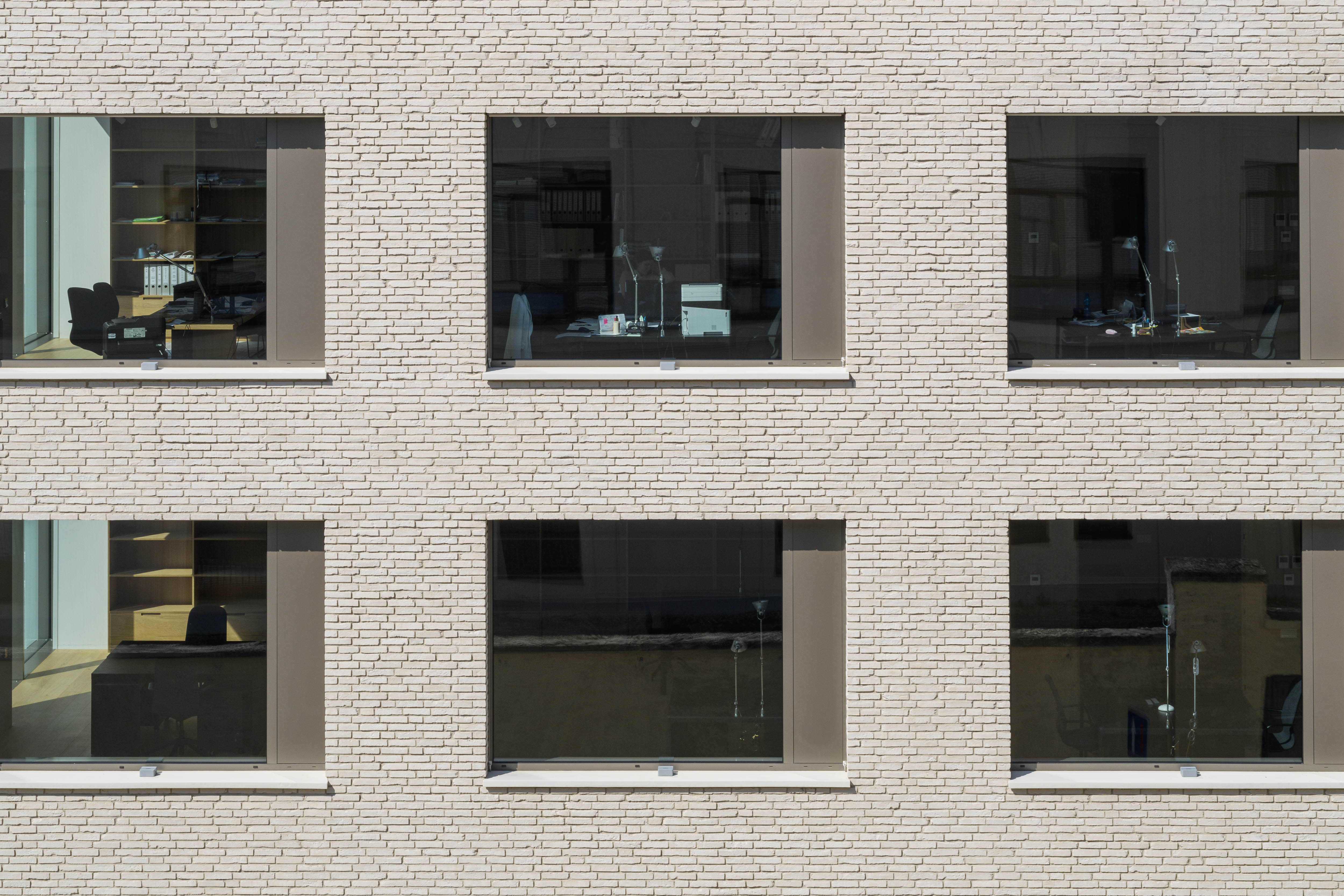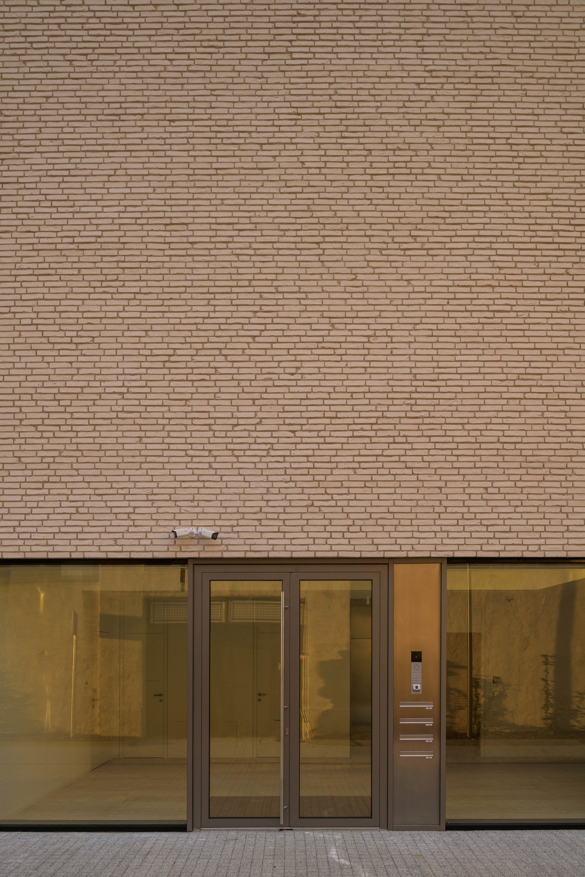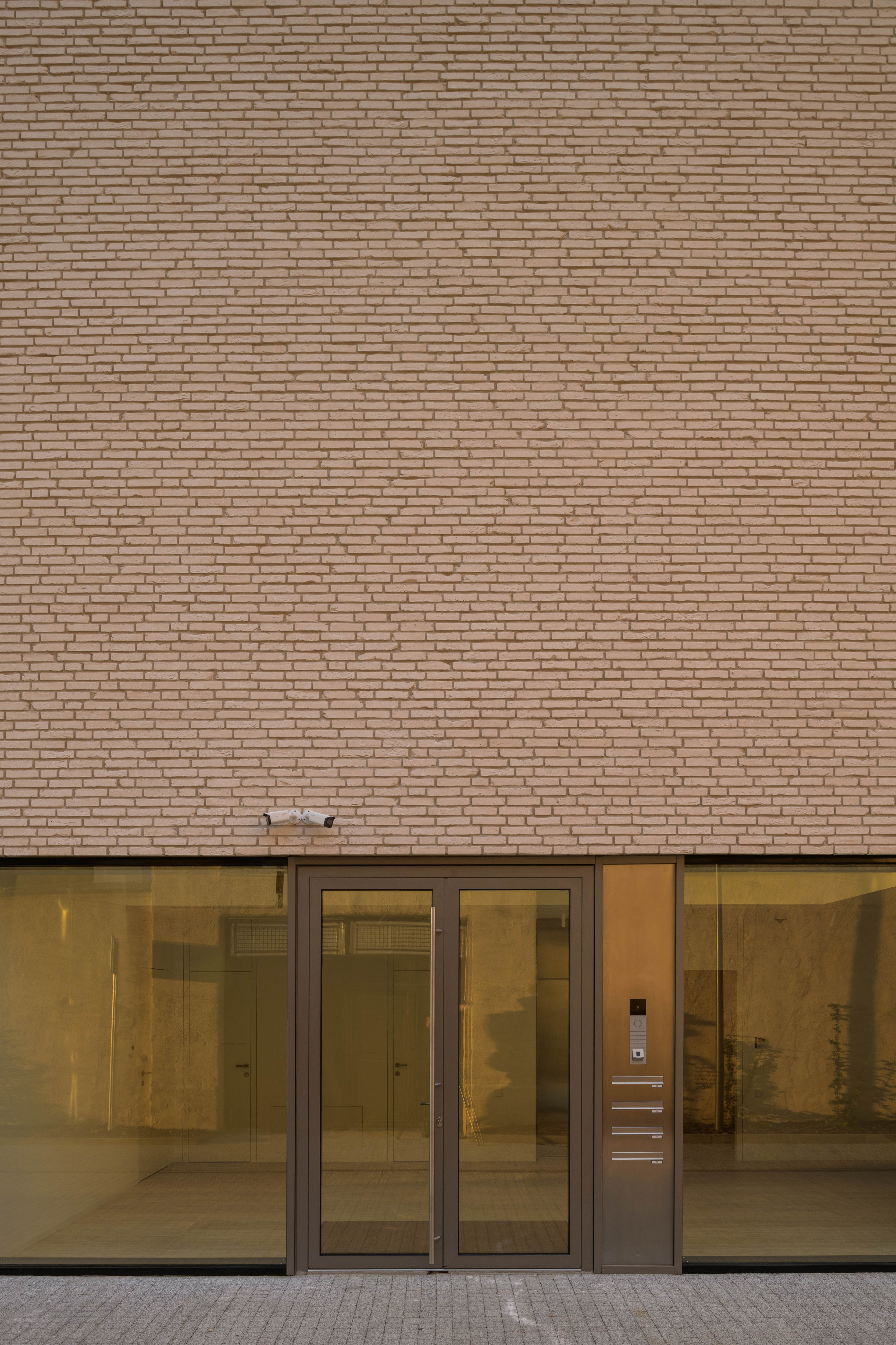 Materiálové a farebné riešenie je prispôsobené okoliu. Tlmenú farebnosť celoplošne použitých lícových tehál dopĺňajú hliníkové rámy zasklenia v bronzovej farbe RAL 7048.