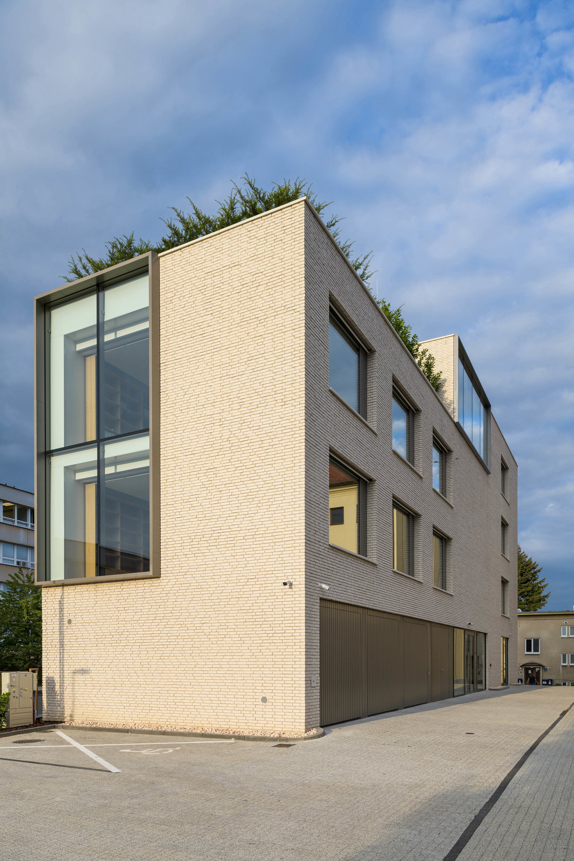 Administratívna budova v tichej lokalite v centre Nitry, na Veternej ulici. V komplikovanom mestskom prostredí museli autori zvládnuť nástrahy zadania, v tesnom susedstve s barokovým Piaristickým kostolom a gymnáziom z 18. storočia. Na historický blok architekti reagovali viacerými nepriamymi odkazmi. Vlastná (nová) architektonická identita však ostáva silnou súčasťou kontextuálneho riešenia. Nadväznosti k prostrediu sú logicky premietnuté smerom navonok, aj do prehľadnej vnútornej štruktúry, so zreteľom na budúcu flexibilitu. Novostavba zo severu susedí s administratívnym centrom z 80. rokov, ku ktorému smeruje plná fasáda. Výhľady sú komponované smerom k piaristom, do uličky Veterná.