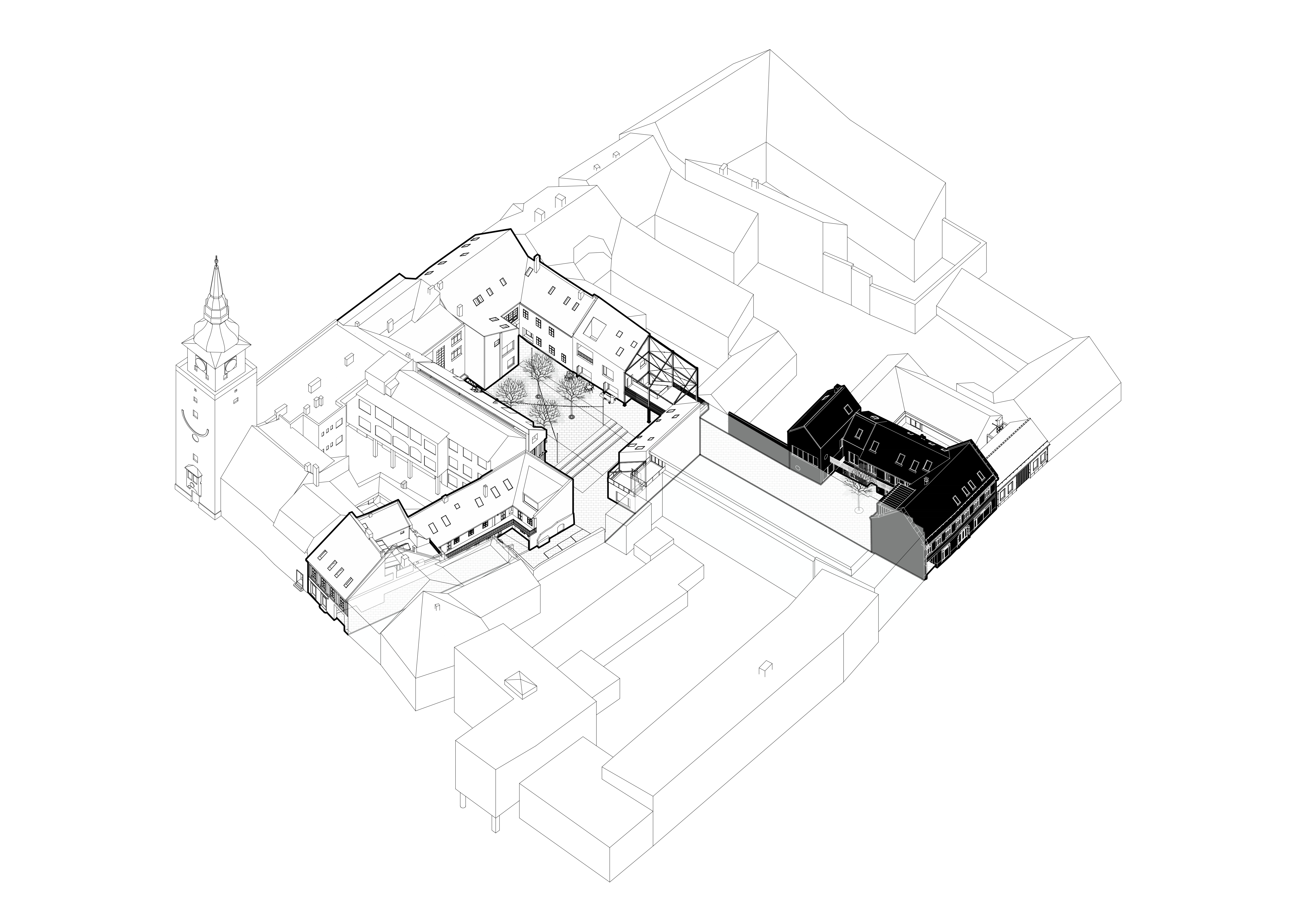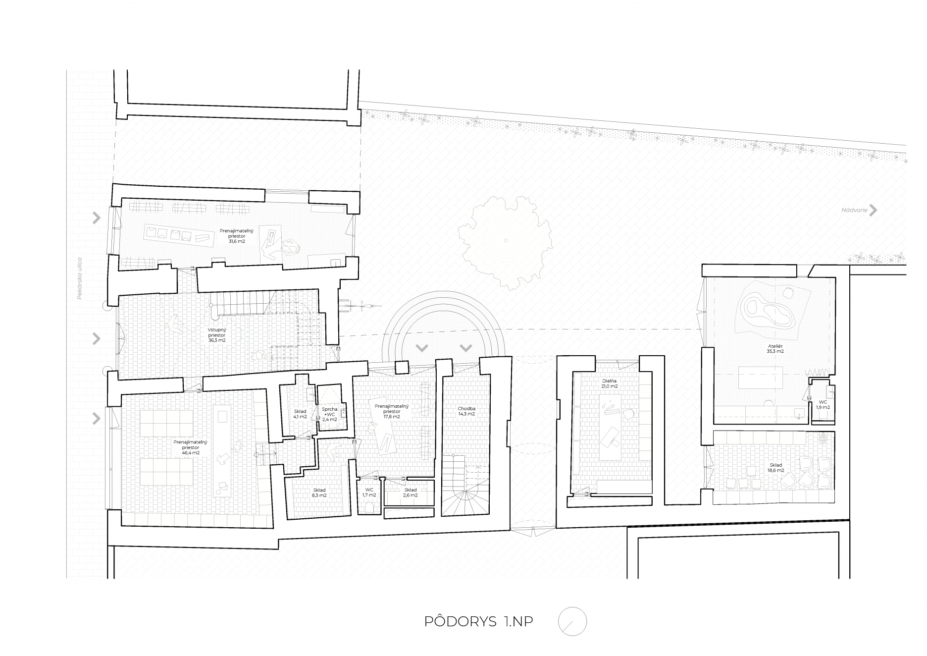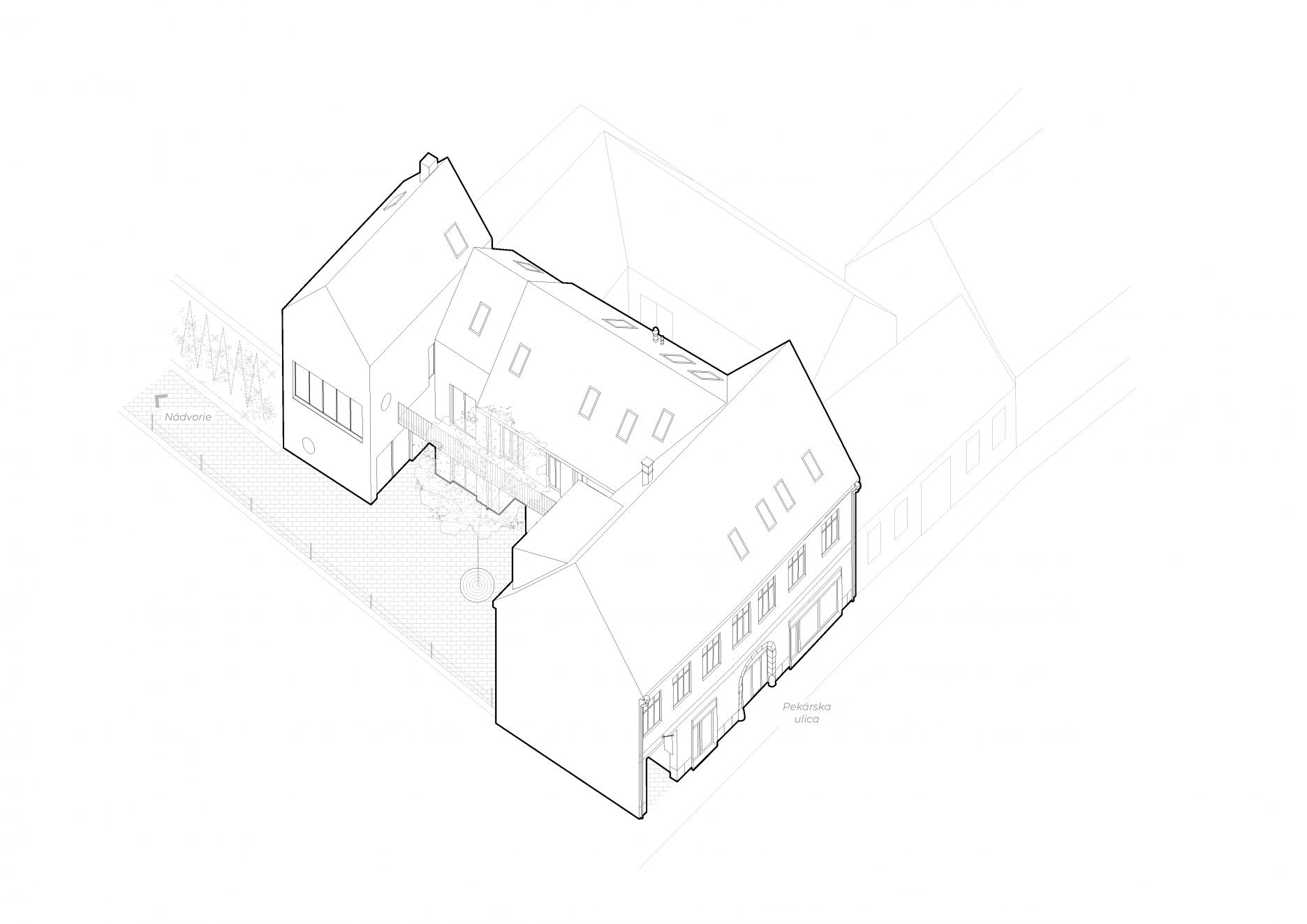 Posledná dokončená etapa oceňovaného Trnavského projektu Nádvorie, priestoru súčasnej kultúry, ktorý vznikol spojením parciel historických meštianskych domov a ich nádvorí do jedného prepojeného komplexu. Nová náplň krídla, orientovaného do Pekárskej ulice oživila pôvodnú stavbenú substanciu meštianskeho domu, ktorú citlivo doplnili súčasné zásahy. Nové dvorové krídlo charakterizuje hybridná konštrukcia s tradičnými murovanými a inovatívnymi prefabrikovanými konštrukciami EcoCocon. Autorom z ateliéru Sadovsky & Architects sa opäť podarilo zachovať pestrosť aj rôznorodosť typickú pre rastlé historické jadrá.