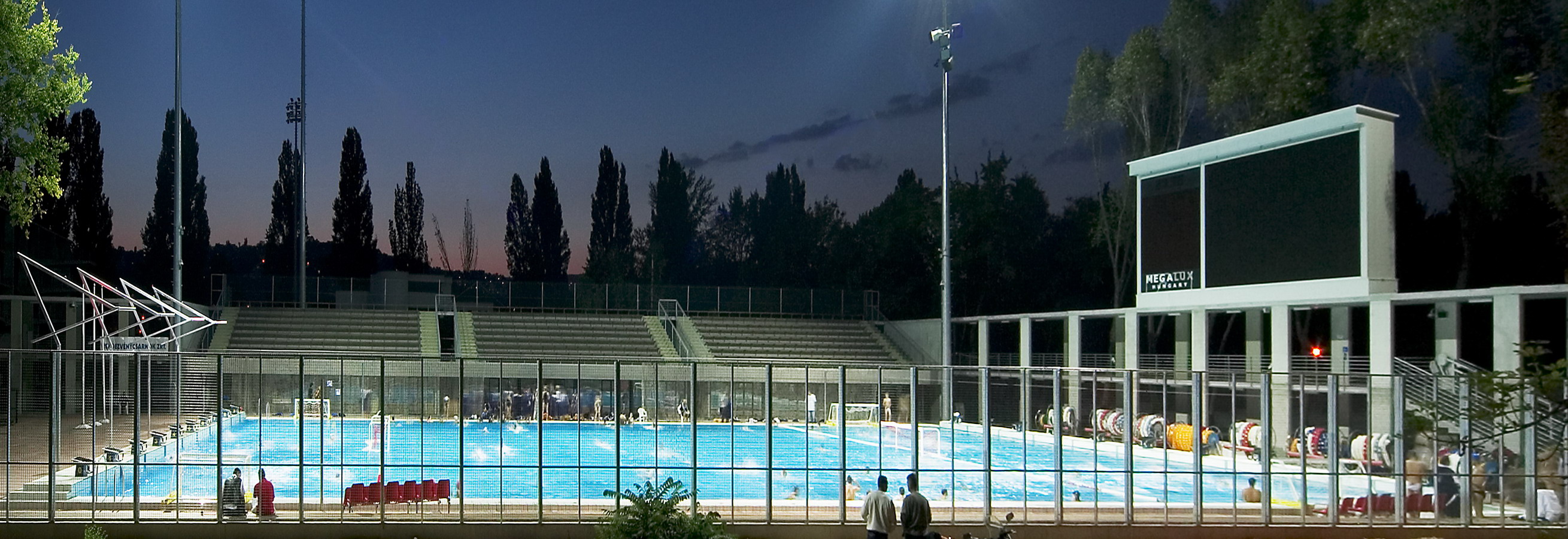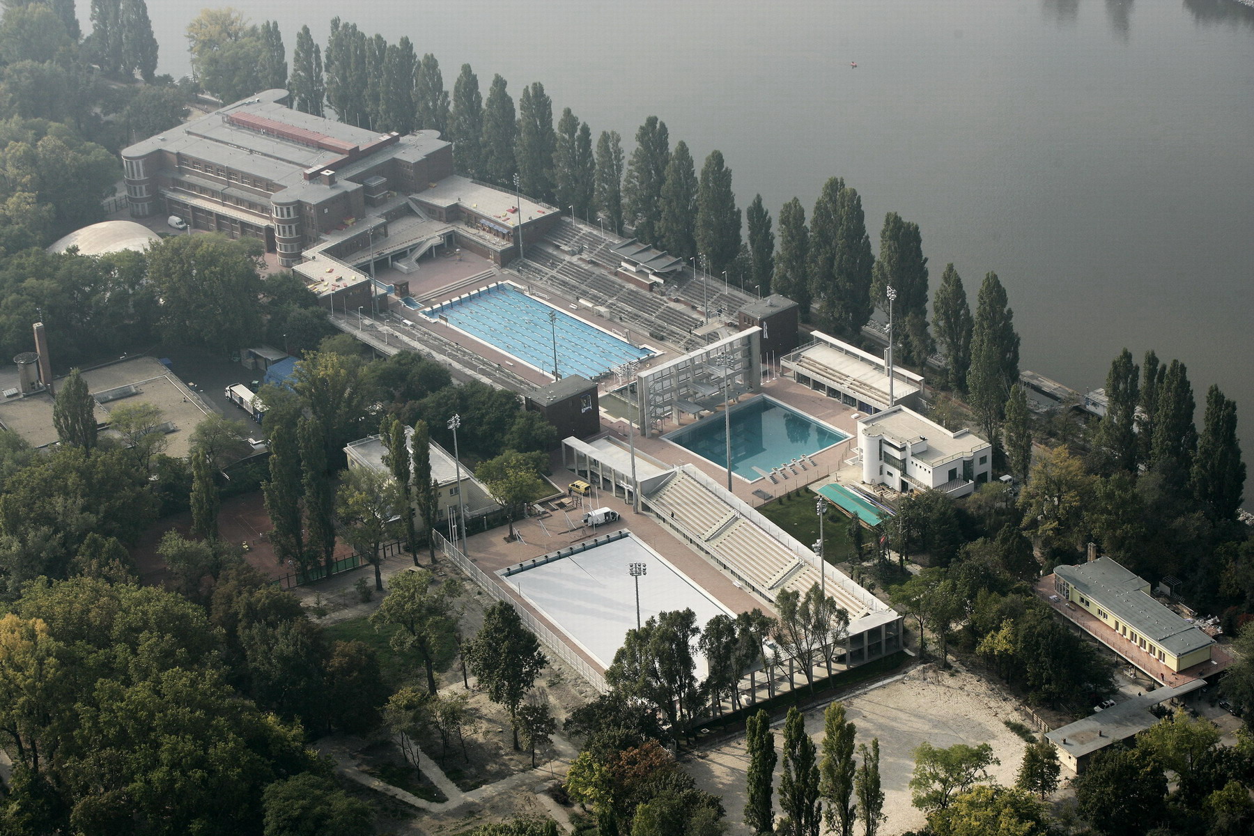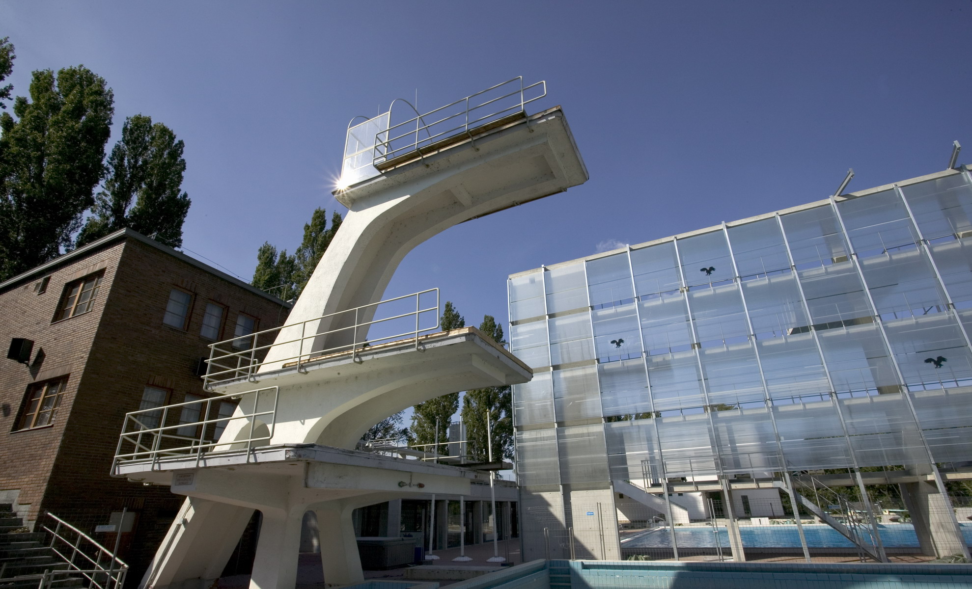 Nový bazén spolu so skokanskou vežou a zázemím je súčasťou rozšírenia Národného centra vodných športov v Budapešti (mapa TU). Toto centrum bolo postavené v roku 1930 podľa návrhu Alfréda Hajósa, ktorý bol nielen prvý maďarský olympijský víťaz, ale tiež nadaný architekt. Zriadenie, nesúce jeho meno, bolo neskôr rozšírené tak, aby sa tu mohli konať európske plavecké majstrovstvá v roku 2006. Pri tejto príležitosti boli postavené nové 50 a 25 metrové vonkajšie bazény, šatne, tribúny a skokanská veža. Po dokončení bol športový areál pomenovaný po inštruktorovi plávania Tamásovi Széchym, ktorý trénoval päť olympijských plaveckých víťazov a zomrel len dva roky pred dokončením areálu. Najvýraznejším prvkom modernizácie je skokanská veža. Jej objem, ako stena oddeľuje nové konštrukcie od starého bazéna. Avšak priehľadnou plochou tiež udržiava medzi nimi vizuálny kontakt. Jasné geometrické tvary evokujú éru, kedy bol pôvodný bazén postavený. Podľa vyjadrenia architektov štruktúra zachytáva okamih kedy sa športovec pripravuje skočiť a balansuje sa na okraji dosky s roztiahnutými rukami.