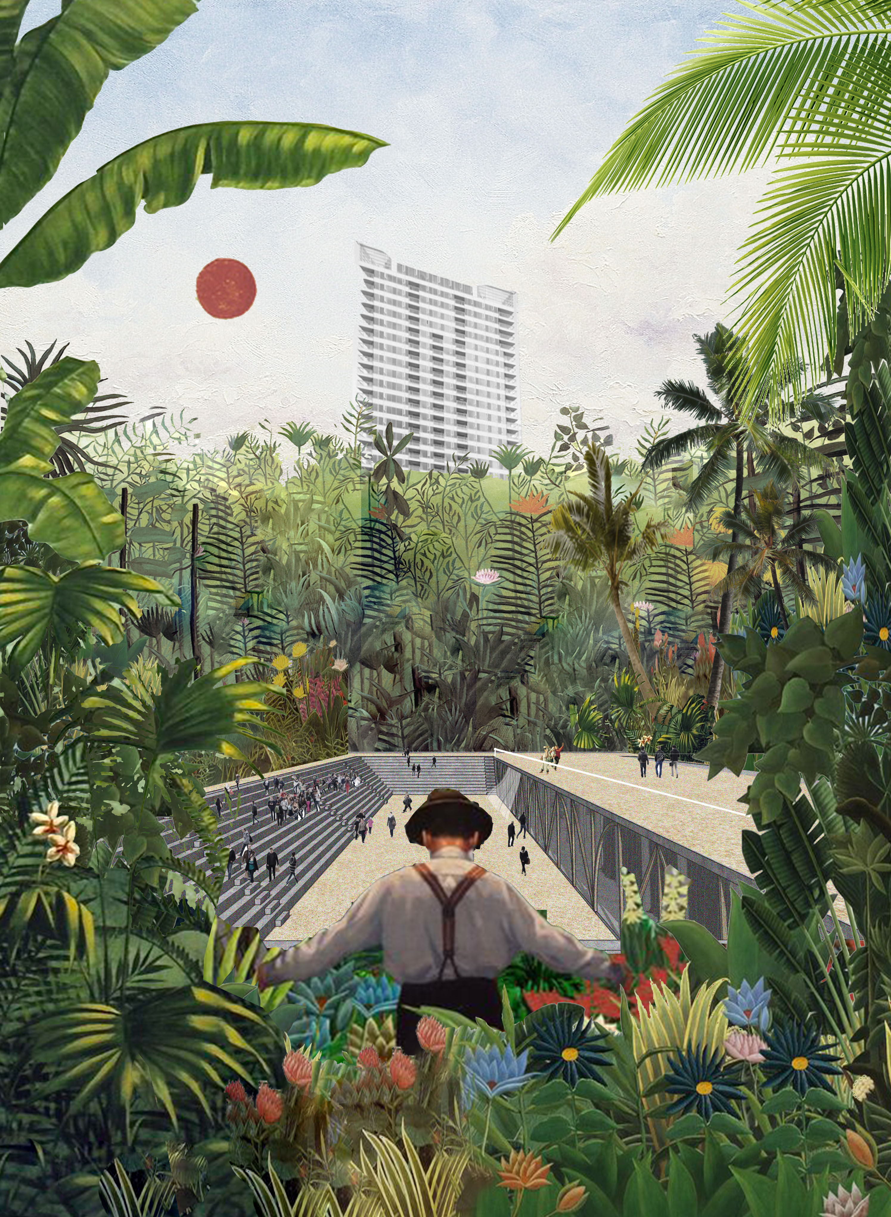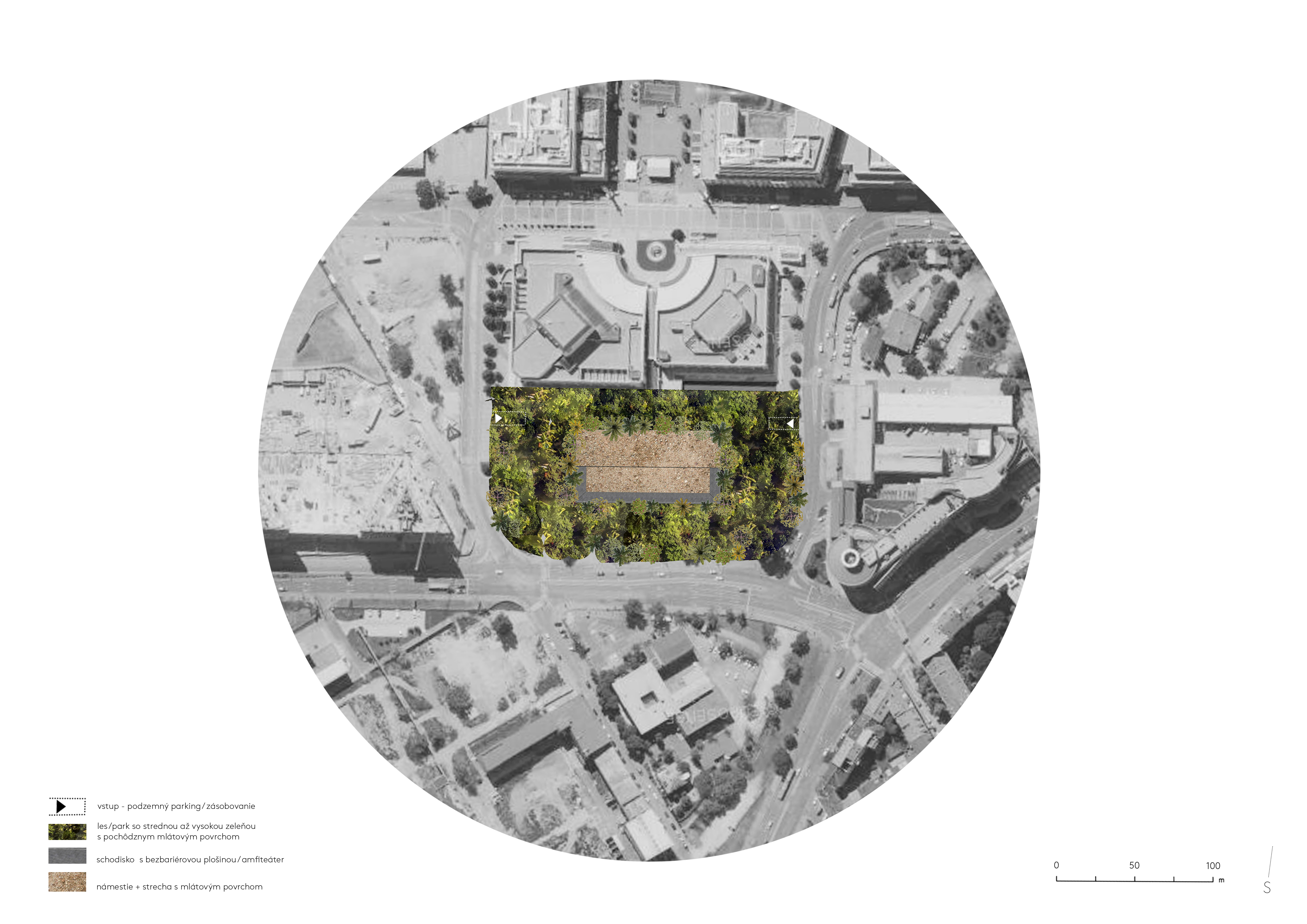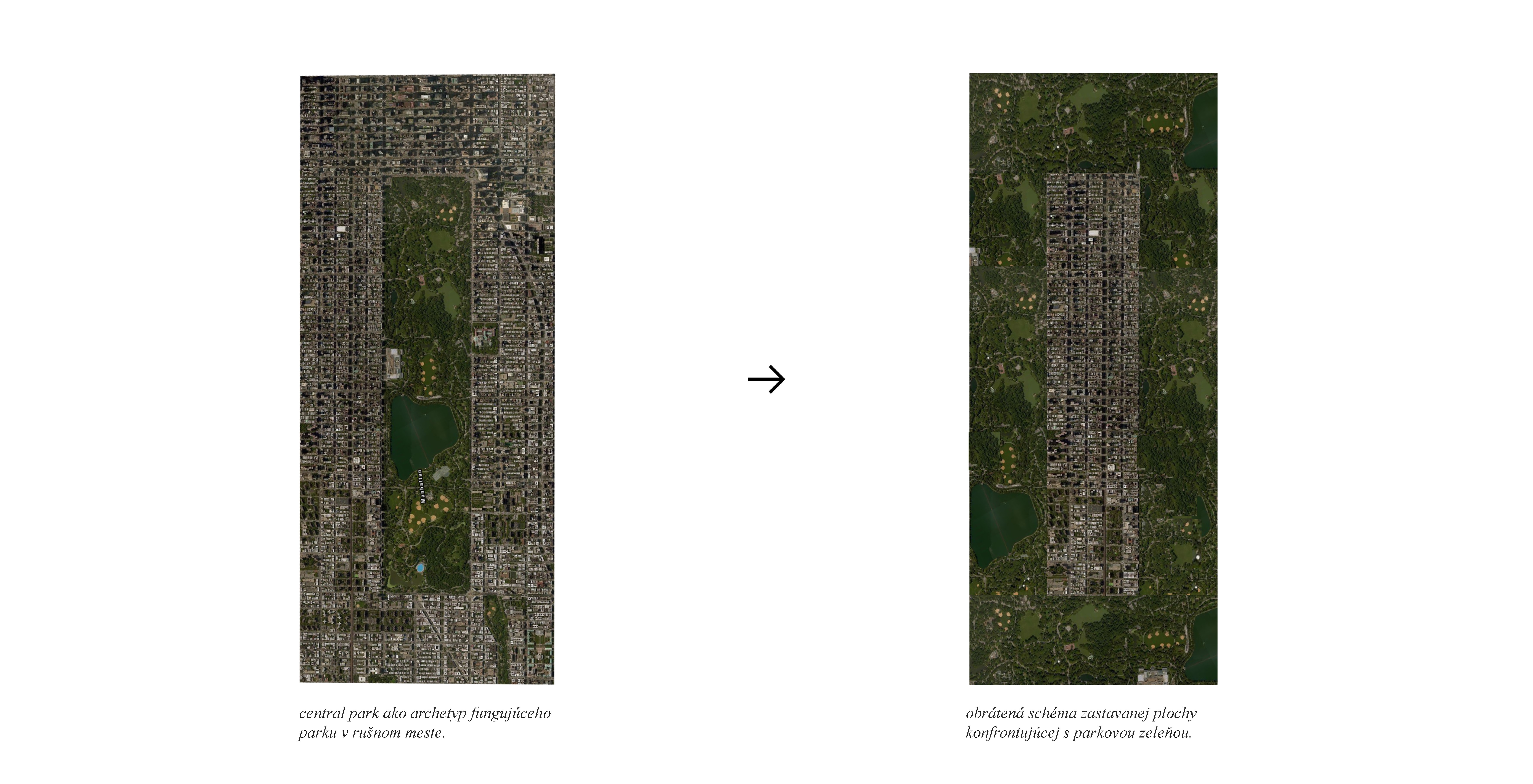 Tento koncept sa približuje vzťahmi rôznych vrstiev intimity vo väčšej mierke koncepcii ostrova Manhattan. Pri invertovaní schémy týchto objemov vzniká myšlienka centrálneho umiestnenia objektu, ktorý s jeho požadovanou kultúrnou náplňou a súčasnou potrebou využitia verejného priestoru rôznymi scenármi utvára odtlačok, jamu.