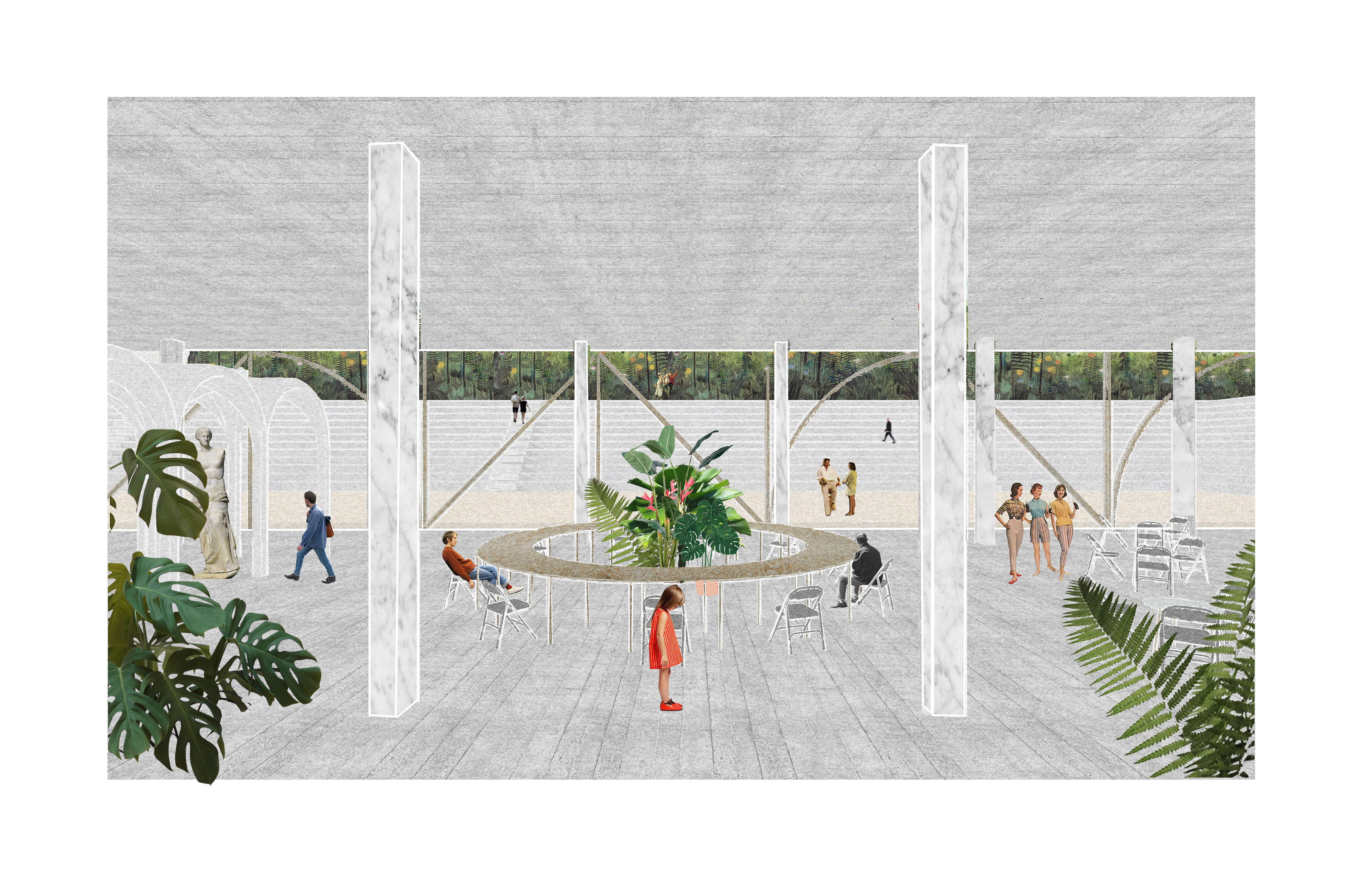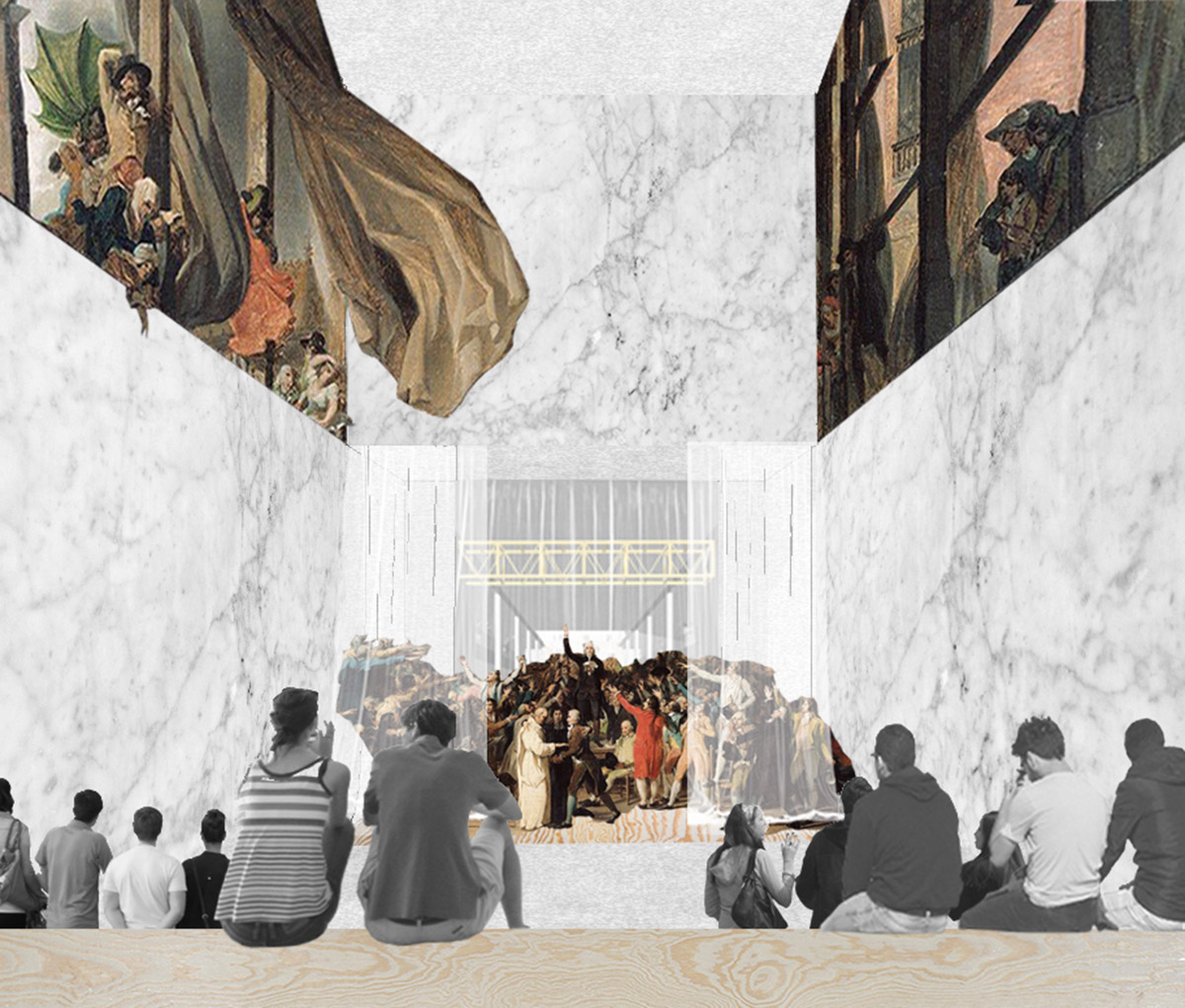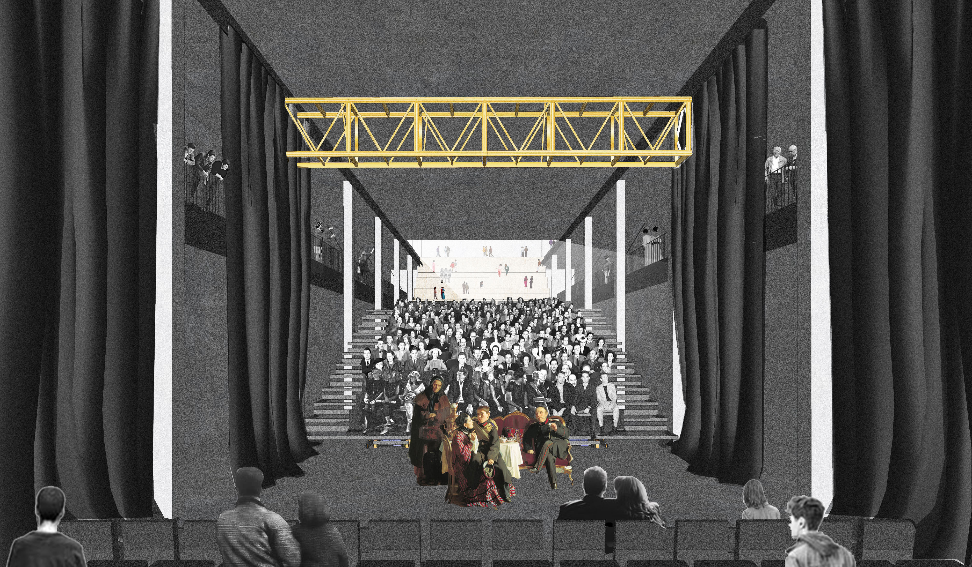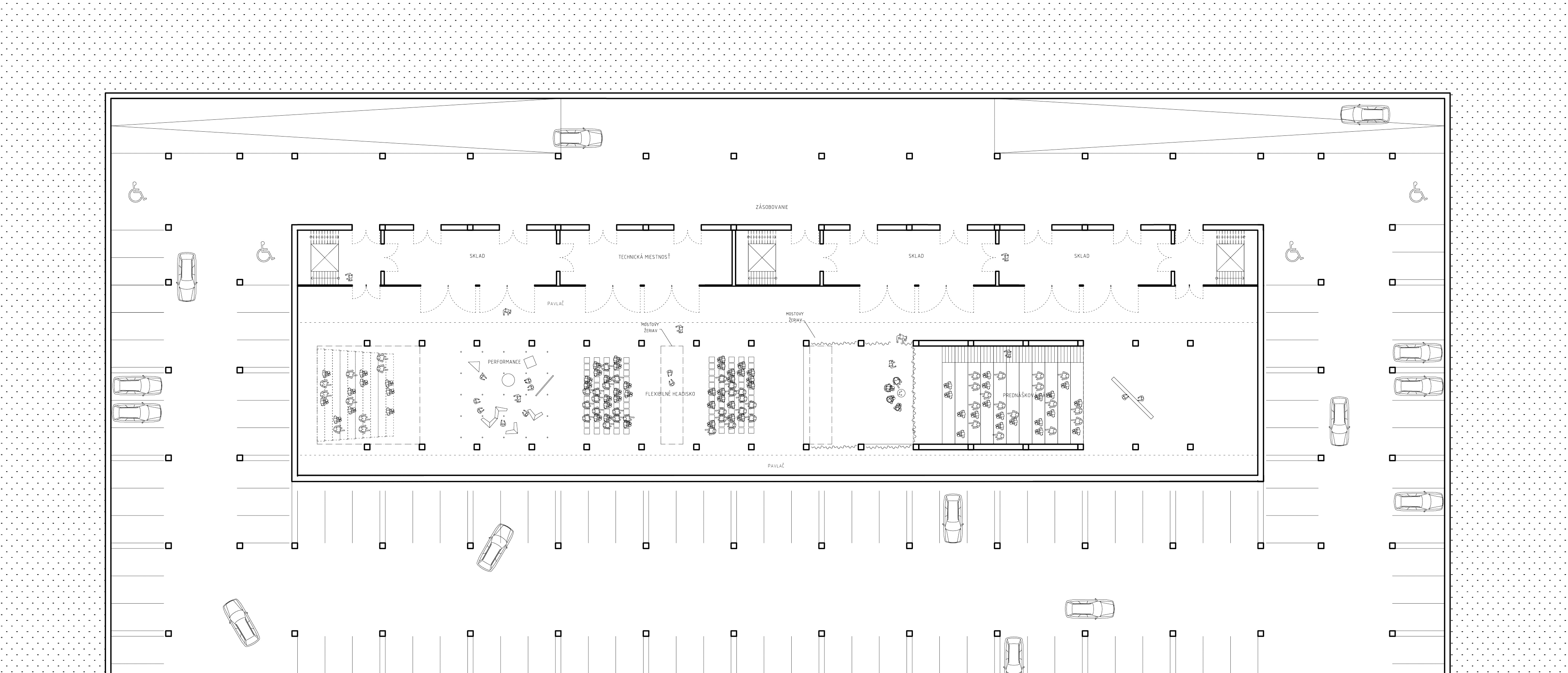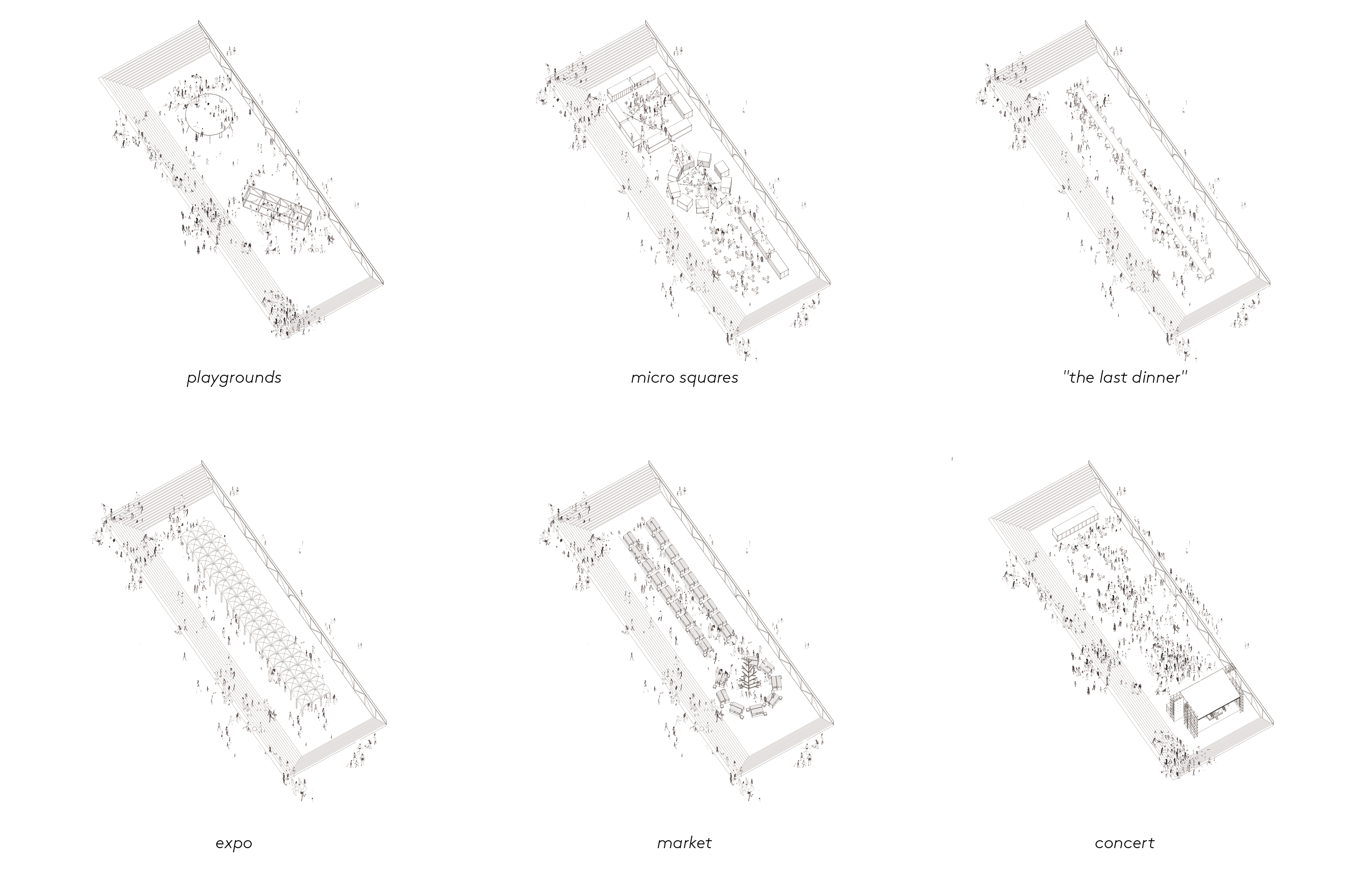 70 m dlhá a 12 m široká hala vytvára priestor absolútnej slobody, chaosu a zároveň hierarchie tvorenej kultúrnou náplňou. Tento priestor tak následne dovoľuje rôzne variácie programu. Hlavnou pointou malého mestského divadla je v konečnom dôsledku koncept syntézy ľudskosti,skromnosti a provokácie zároveň.