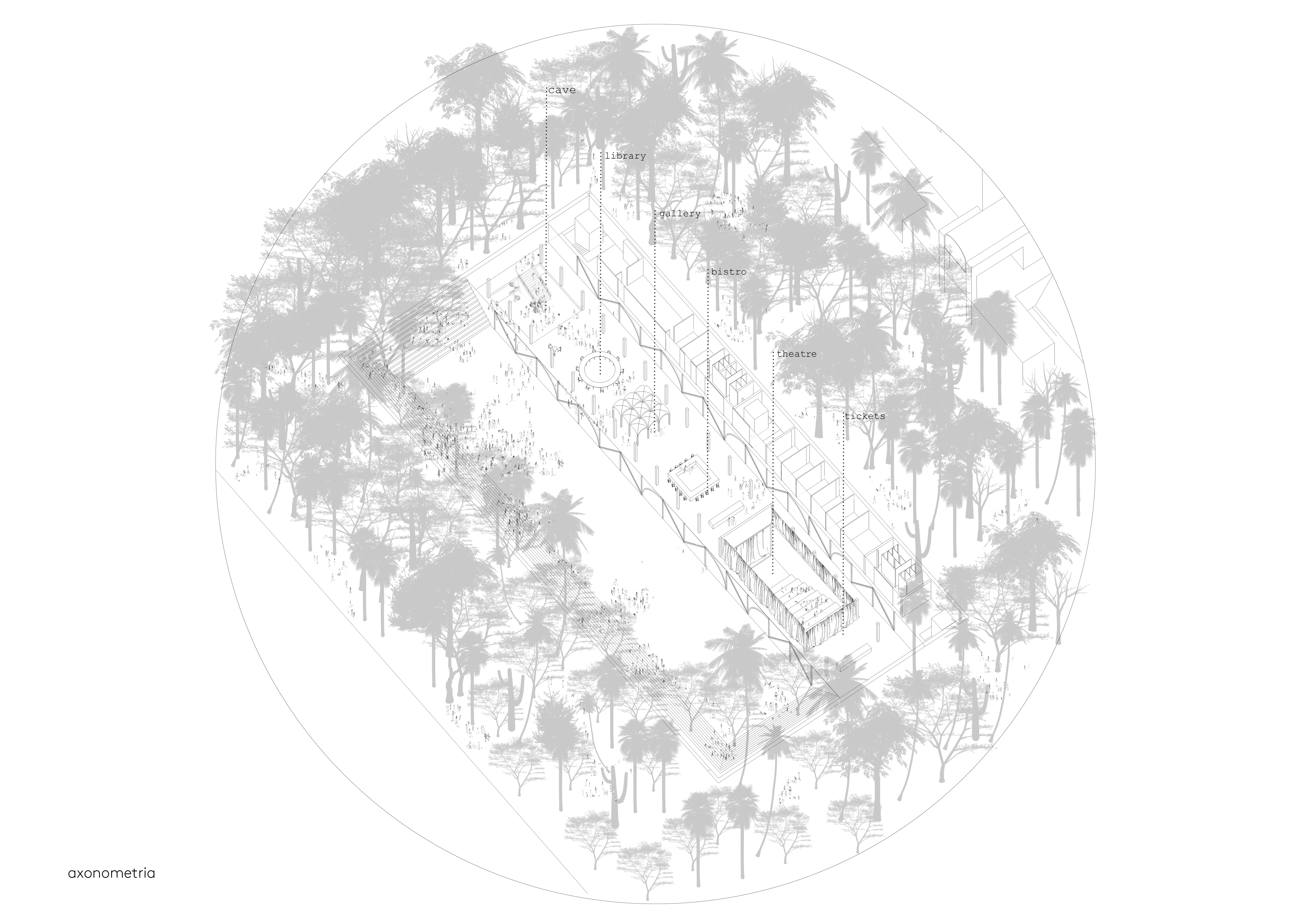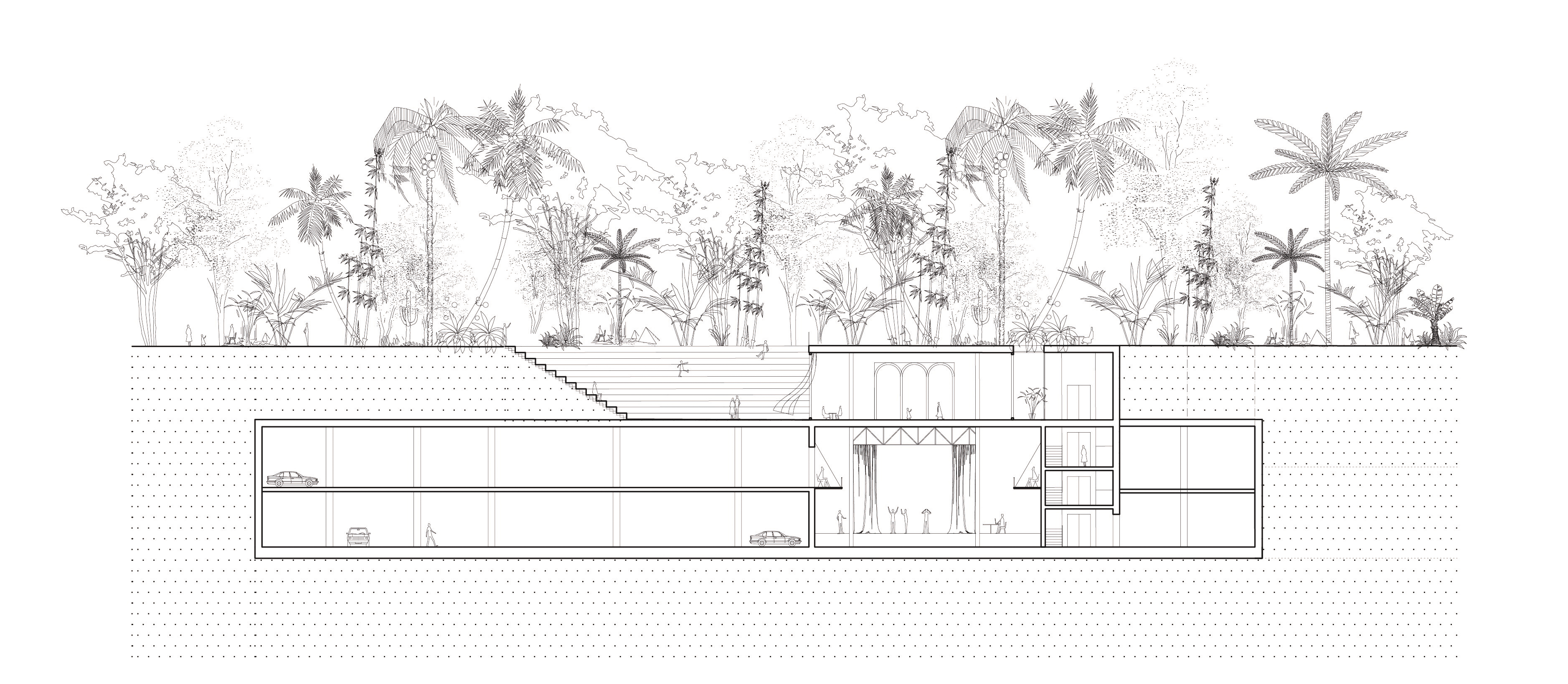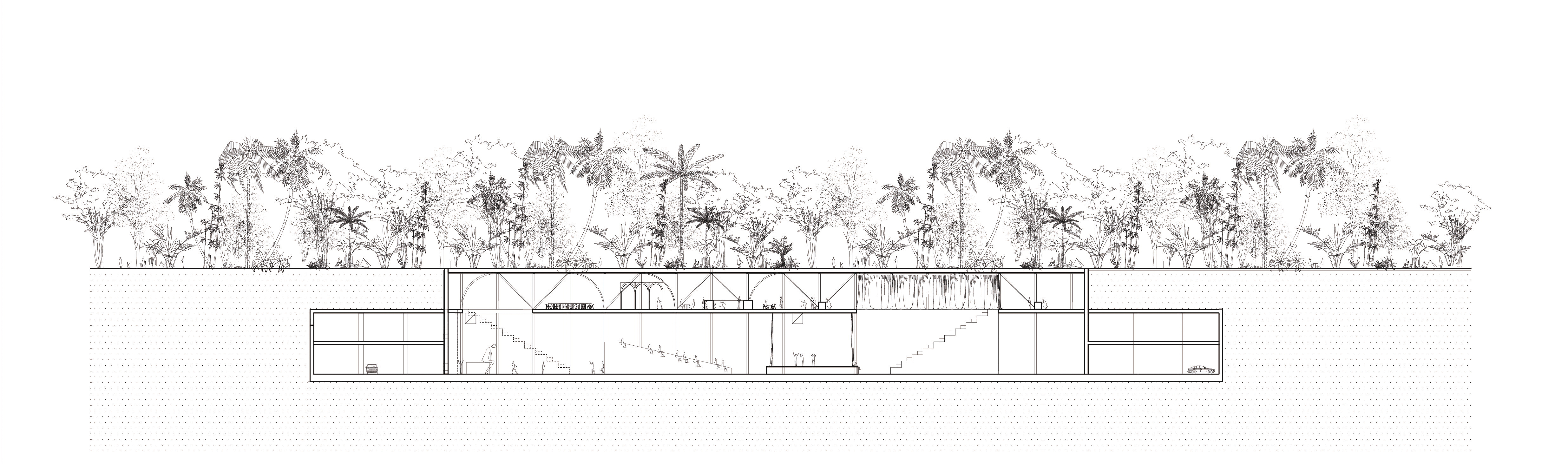 Veľkorysá továreň kultúry ukrytá pod zemou, no zároveň formálny pavilón s námestím ukrytým uprostred pralesa. Toto je “pauza od monumentov”.