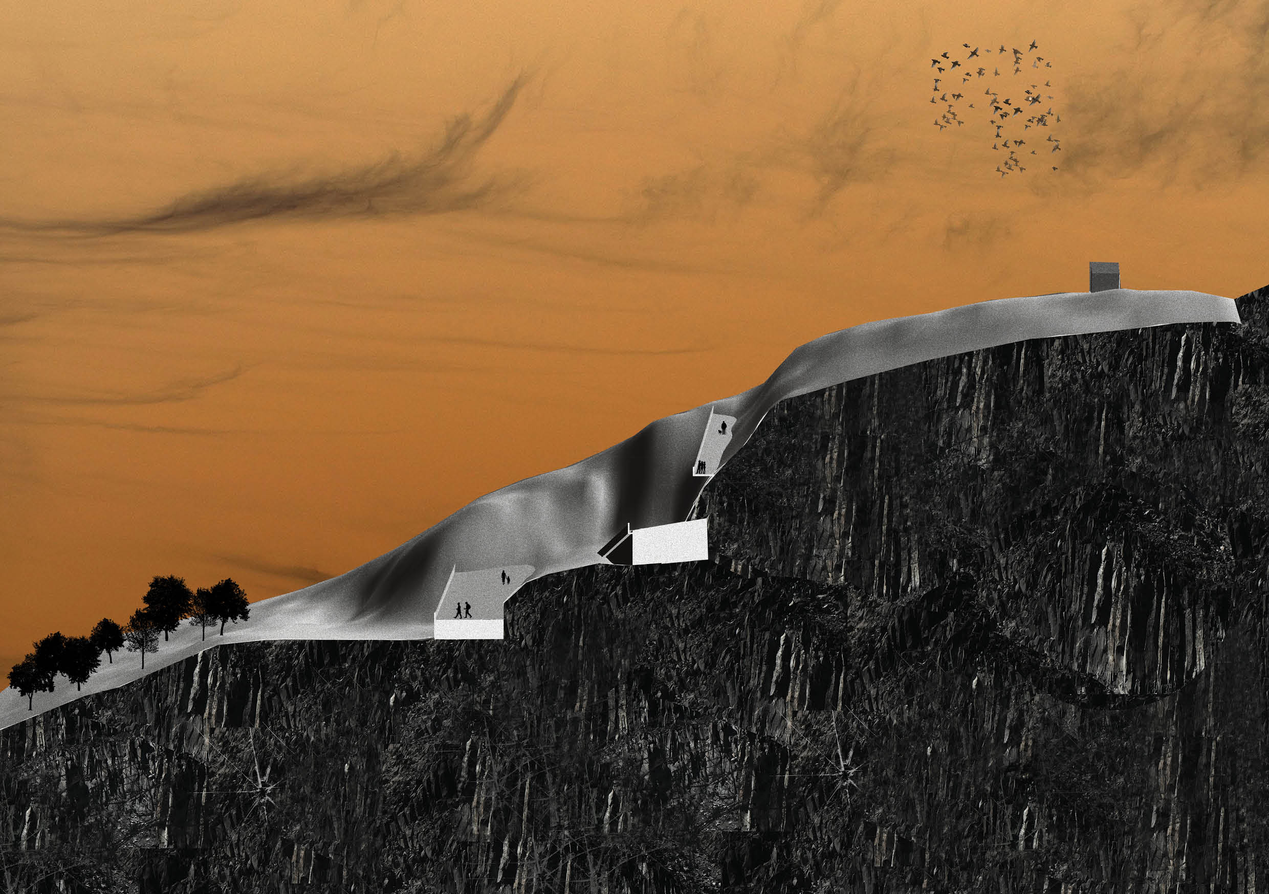 Návrh tvoří vyzdvižené betonové buňky minimálních rozměrů ukotvené do skály, sloužící ke krátkodobému přebývání. Beton jako materiál trvanlivý. Pochozí vrstva a interiér jsou obloženy dřevem, jež je obnovitelné a nahraditelné. Zdánlivě nízký komfort - kamna v samotné chatce, suchý záchod a zdroj pitné vody z vrtu - odhalí skutečné potřeby člověka.