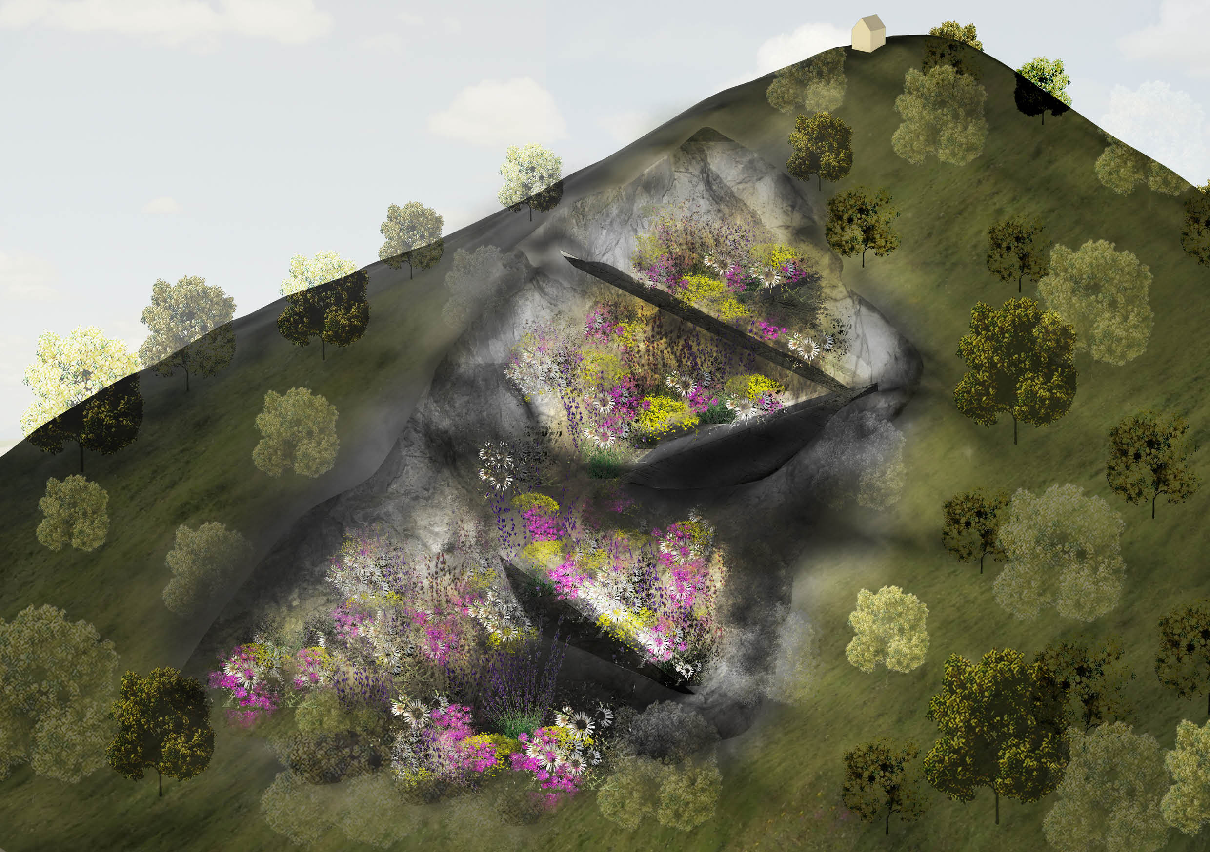 Projekt odlišující se od ostatních svým introvertním, až intimním přístupem postaveným na hledání kontemplačních poloh fragmentů člověkem ovlivněné (dokonstruované) krajiny. Autorka, spíše než aby navrhovala, nachází a preparuje atmosféry latentně přítomné (či tušené) v prostoru sedmi lomů na kámen ležících v blízkém okolí Jičína. Vytváří cyklus architektonických básní (či skladeb) na témata, která v ní uvnitř lomů zarezonovala. Výsledné návrhy vnímáme spíše jako záznamy této rezonance než jako projekty usilující o realizaci, jež by byla v několika případech obtížná (v dnešní „době ekonomické“ až nemožná). Za nejcennější pak považuji moment přenosu objevené atmosféry pomocí autorky coby nástroje na diváka, který překvapen svou schopností percepce znovu zjišťuje, jak neostré okraje obor architektura má.