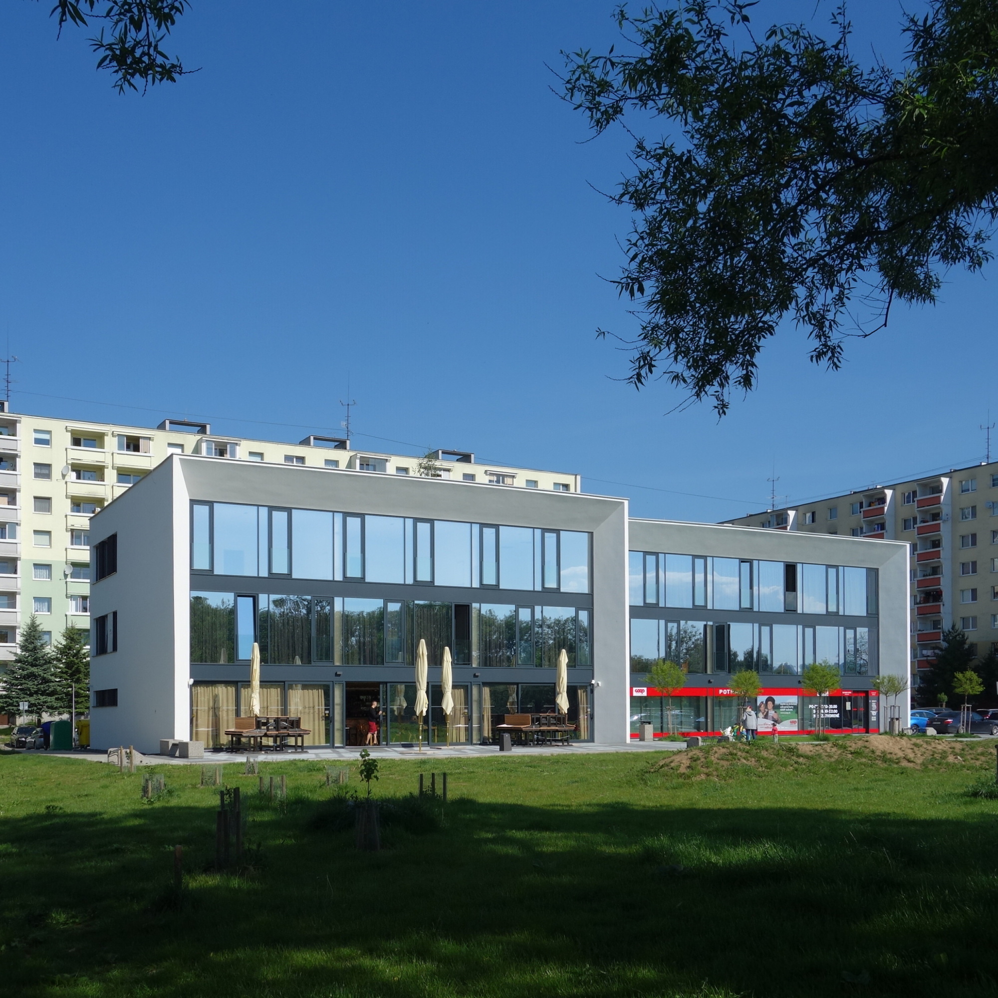 Stavba je prvou etapou výstavby obchodného centra so zameraním na služby. Po rekonštrukcii objekt poskytuje v prízemí približne 500 m2 obchodných priestorov a na horných dvoch podlažiach približne 1000 m2 kancelárskych priestorov.
