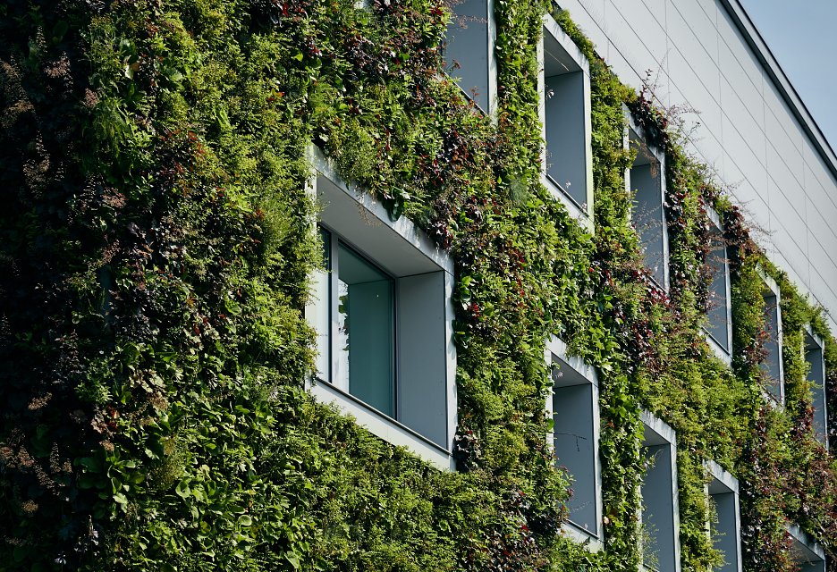 Biologicky aktívny povrch podporujúci vsakovanie dažďovej vody pokrýva takmer 67% pozemku. Spolu s vertikálnou záhradou tvorí zeleň až 82% povrchu. Dažďová voda zozbieraná zo strechy a dláždených plôch je zvedená do podzemnej zbernej nádrže. Voda je ďaľej využívaná na zavlažovanie, čo pomáha znižovať zaťaženie mestskej kanalizácie.