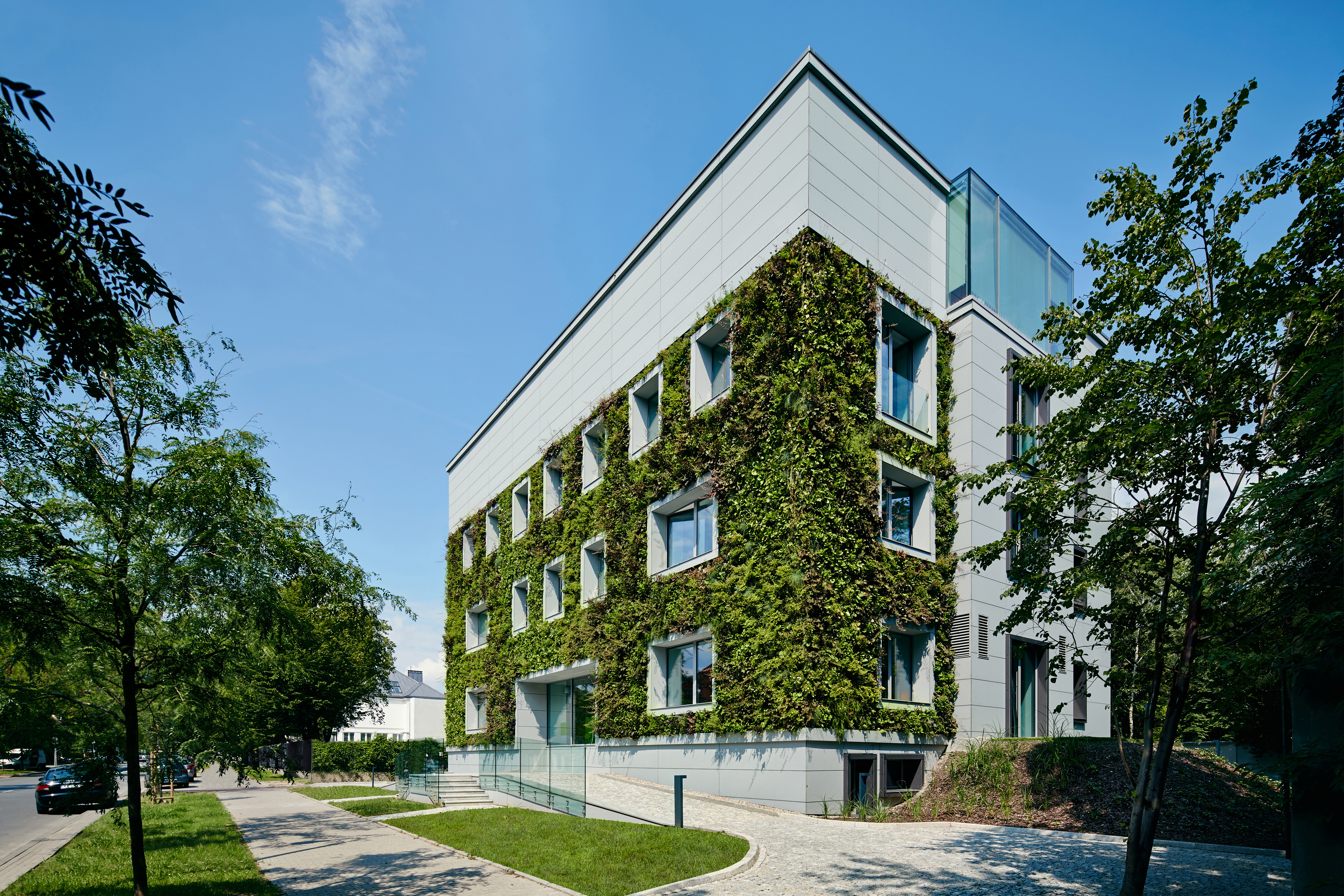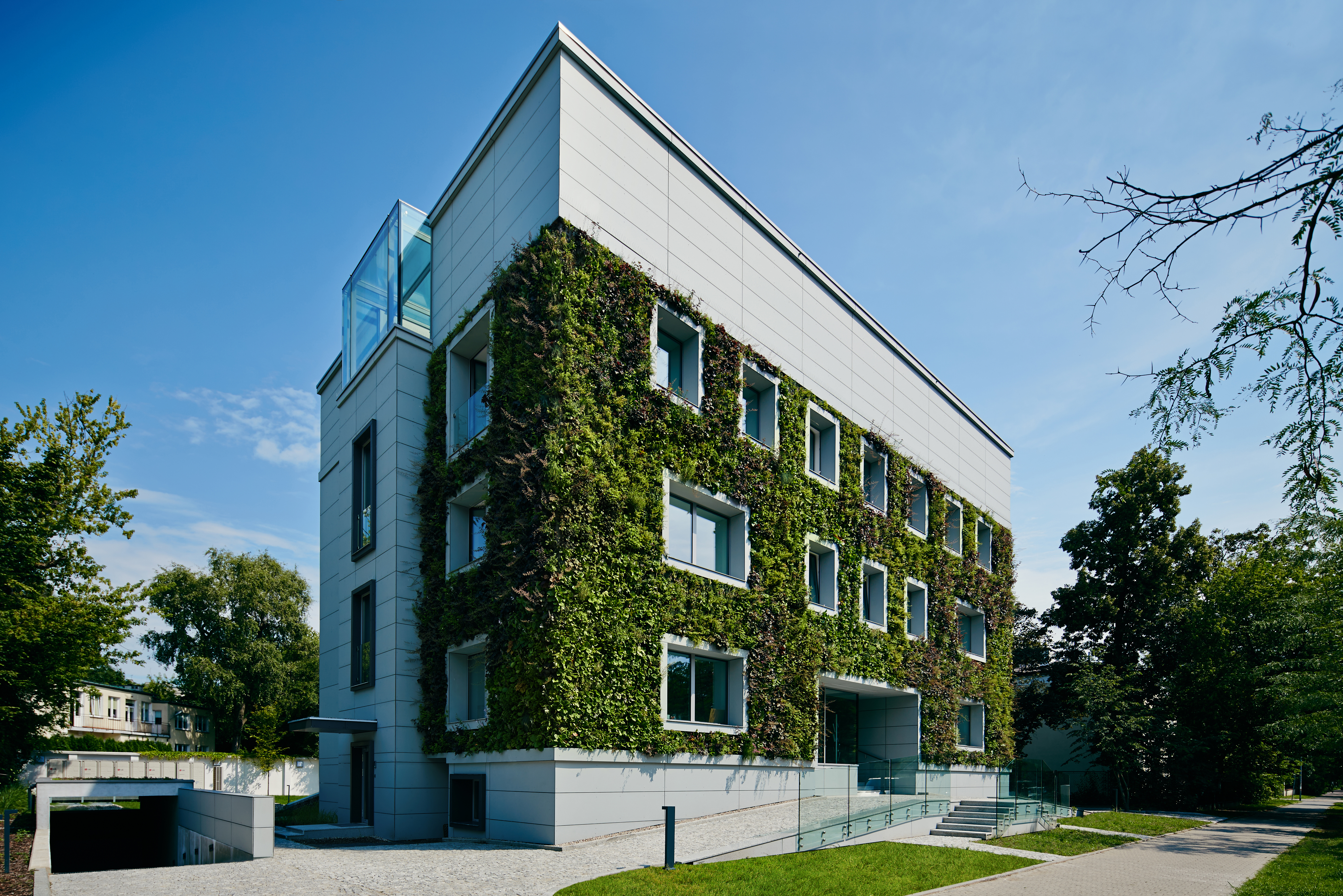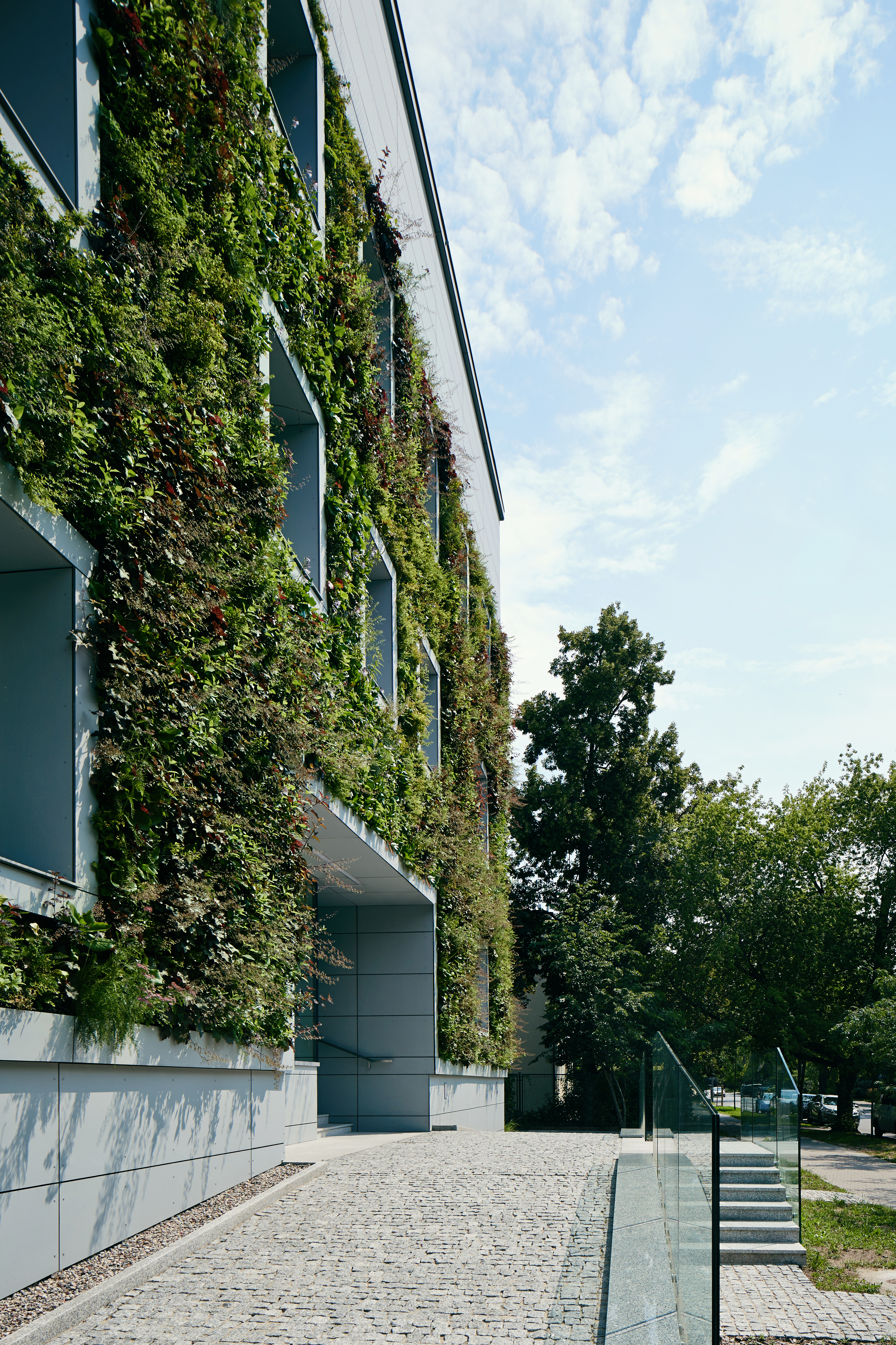 Hlavným poznávacím znakom tohto projektu je exteriérová vertikálna záhrada – prvá svojho druhu v Poľsku. Budova sa tak stala súčasťou zelene typickej pre túto mestskú časť. Zelená fasáda stiera hranice, zjemńuje hrany a kontrastuje s prísnou geometriou šedých betónových panelov. Výraz budovy sa mení s postupom času a striedaním ročných období. Výber rastlín bral v úvahu lokalitu a istá voľnosť bola ponechaná aj prírode – je iba otázkou času kedy sa tu rozrastú priviate semiačka…