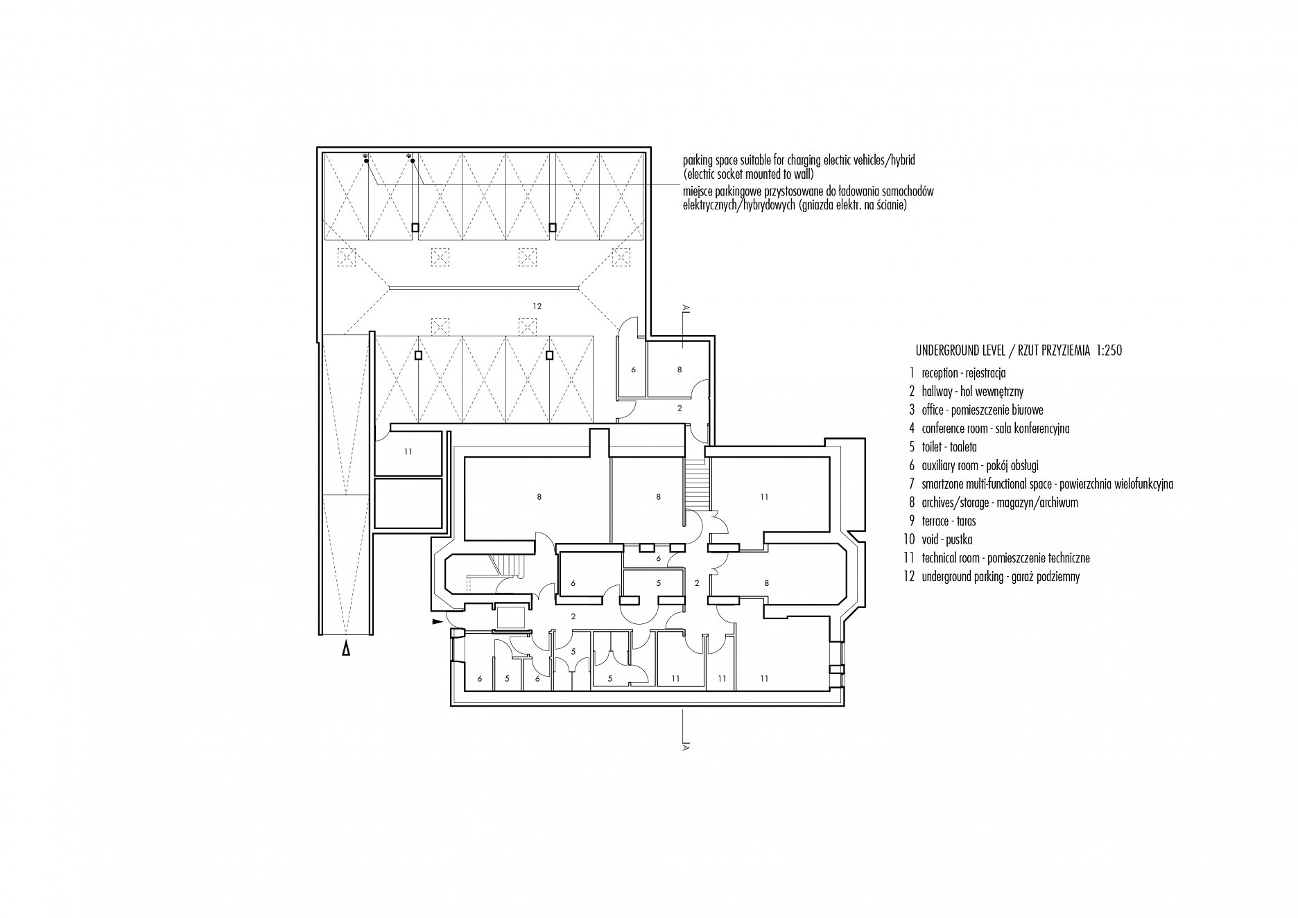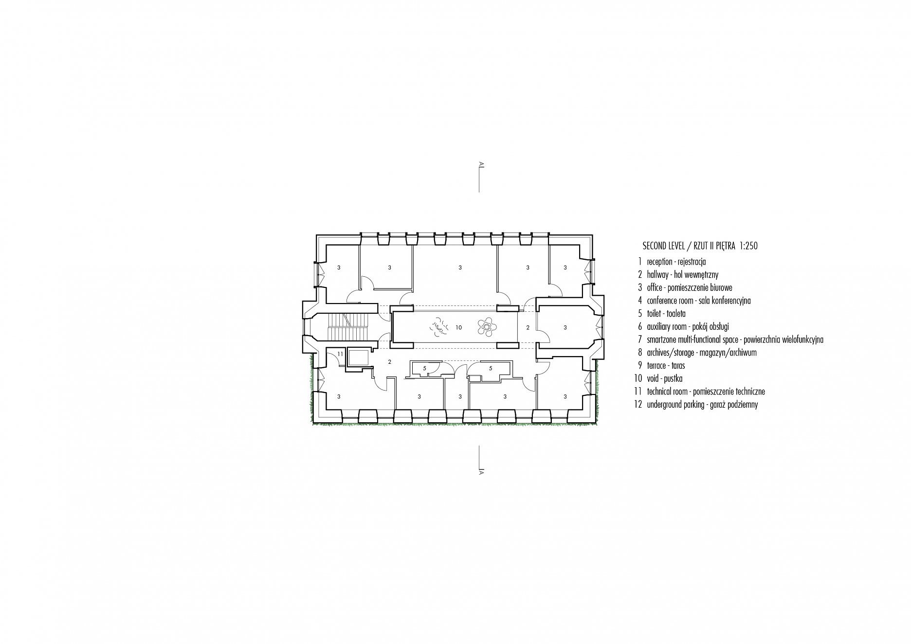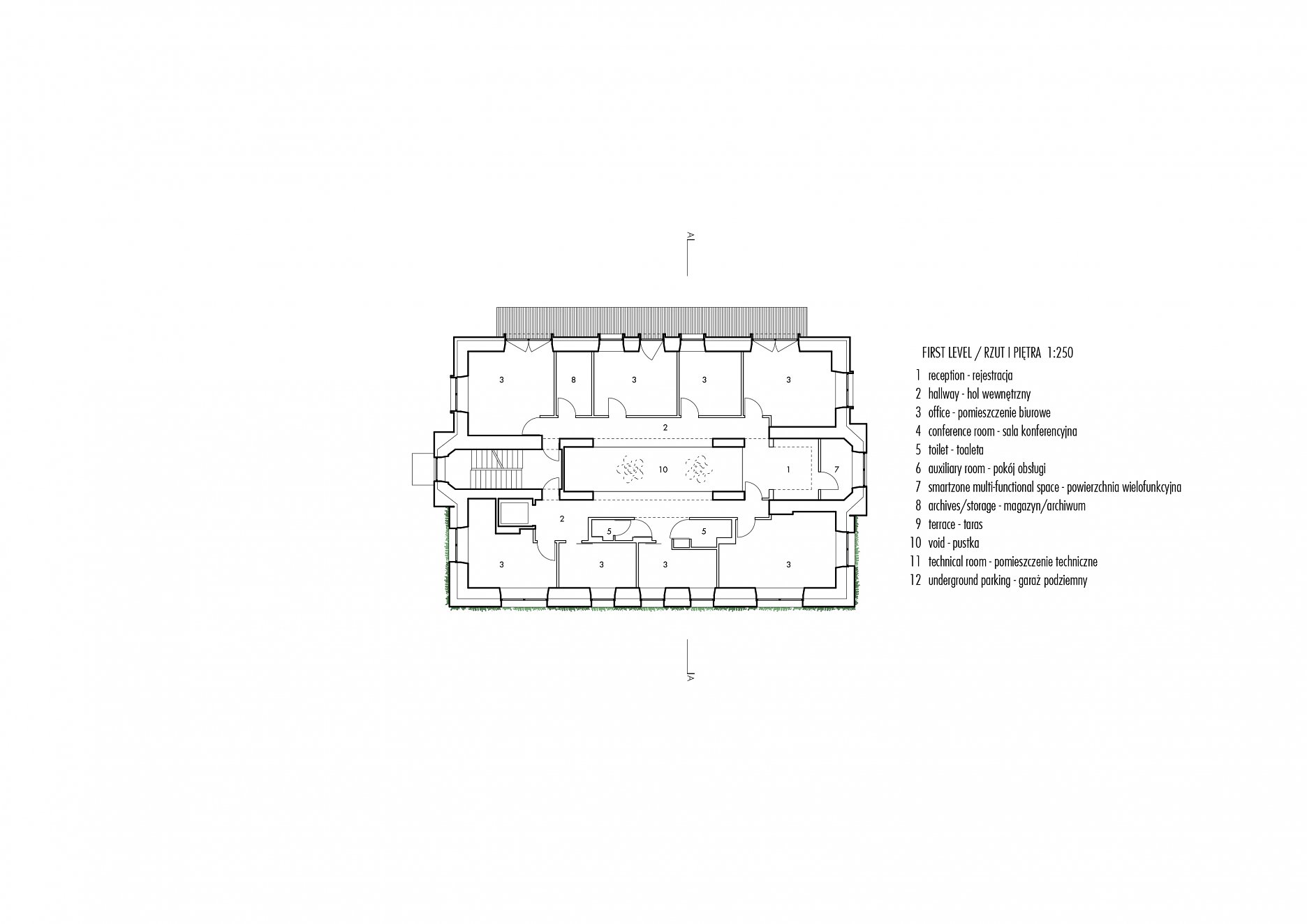 Bytový dom bol prestavaný na administratívnu budovu. Budovamá má štyri nadzemné podlažia a suterén. V suteréne je umiestnené parkovisko, technické zázemie a miestnosti archívu. Na prízemí je recepcia, konferenčné miestnosti, viacúčelový priestor a kancelárie. Na vyšších podlažiach sa nachádzajú kancelárie