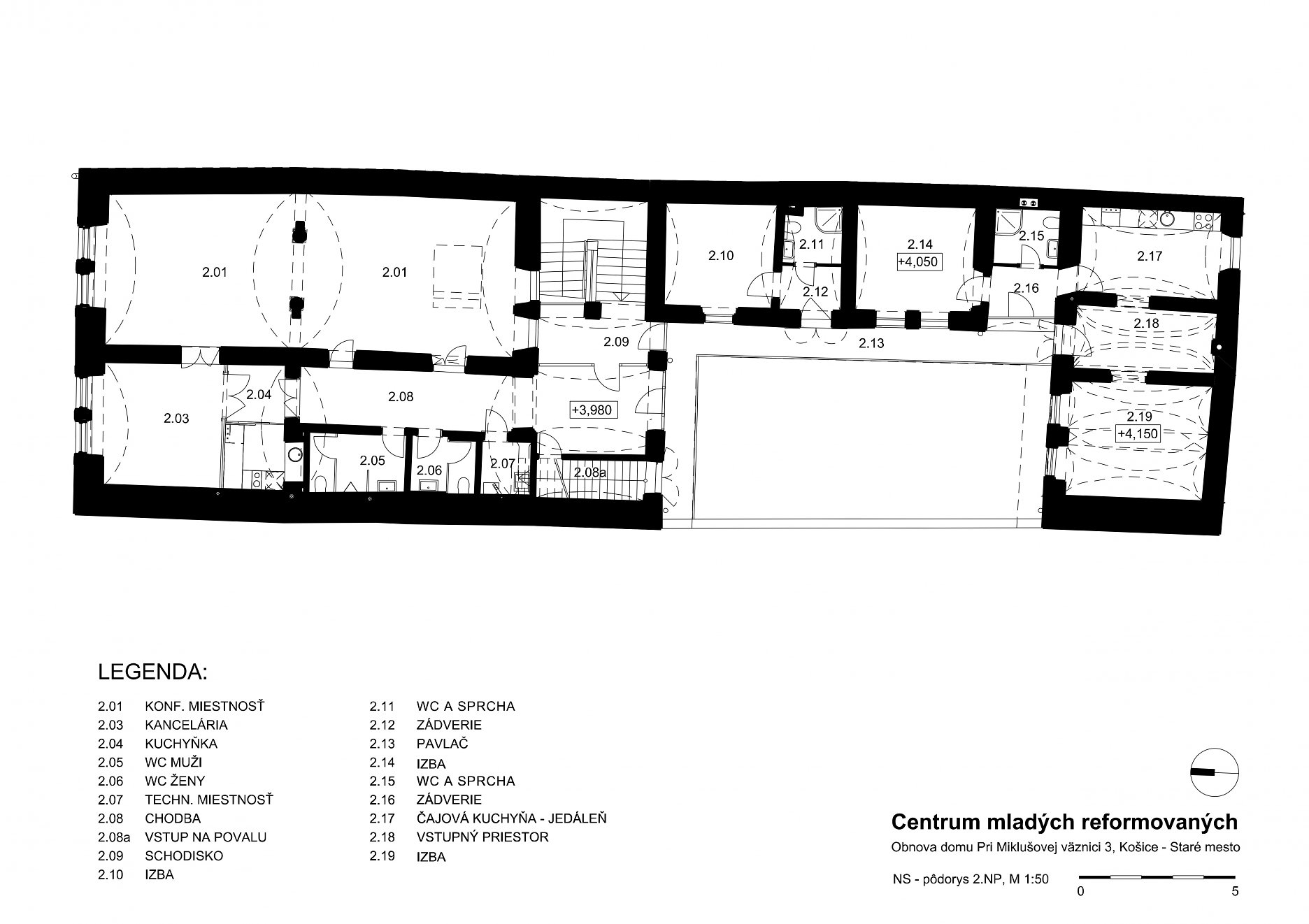 Meštiansky dom v centre Košíc po rekonštrukcii slúži ako konferenčné a spoločenské centrum mládežníckej organizácie Reformovanej cirkvi, ktorého súčasťou je príležitostné ubytovanie. Ján Krcho sa na projekte podieľal už vo fáze pamiatkového výskumu, svoje poznatky následne preniesol do procesu návrhu a realizácie. Východiskom pamiatkovej obnovy bolo zachovanie všetkých vrstiev, uzatvorených poslednou určujúcou klasicistickou prestavbou, vrátane neskorších hodnotných doplnkov.