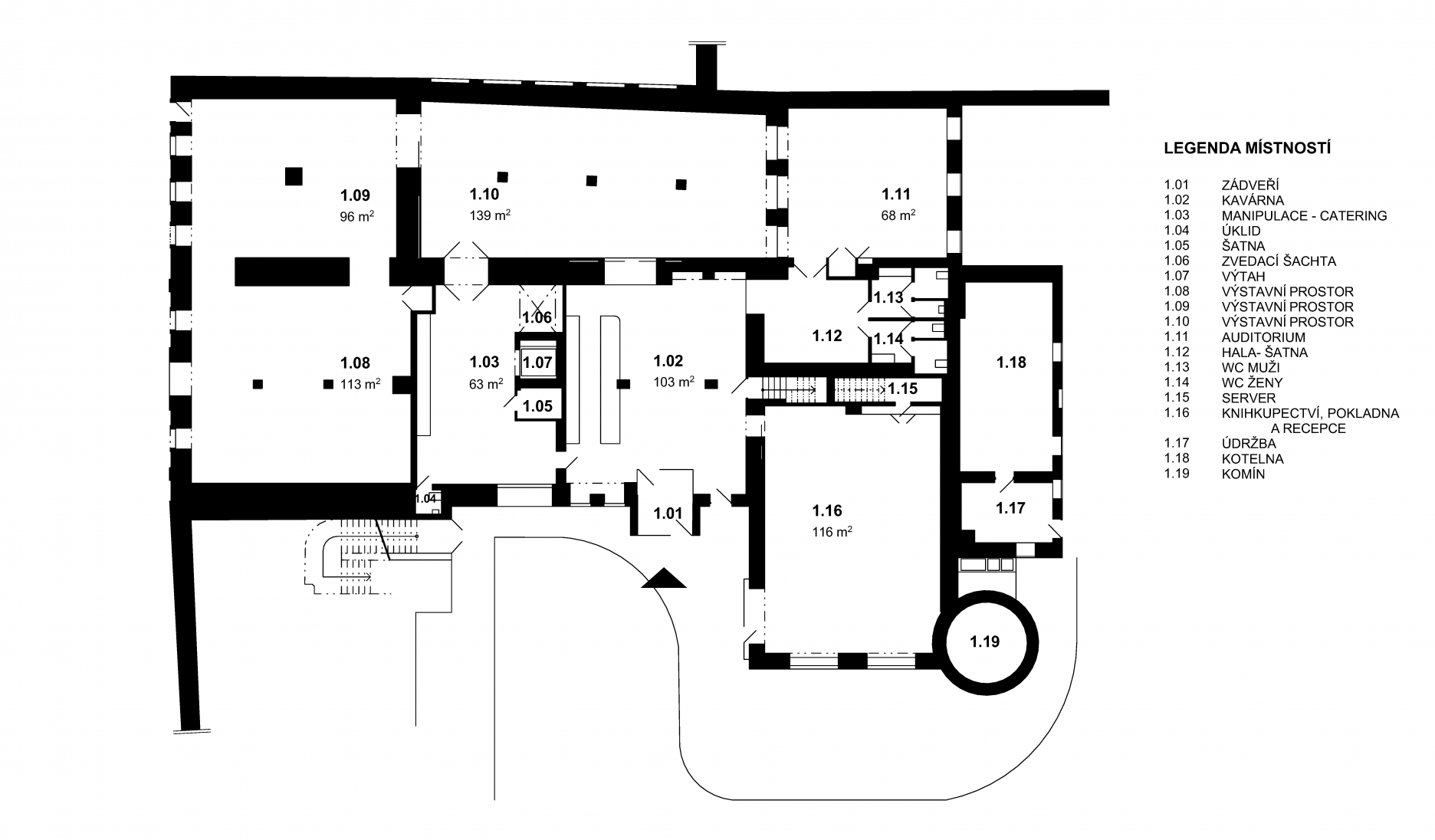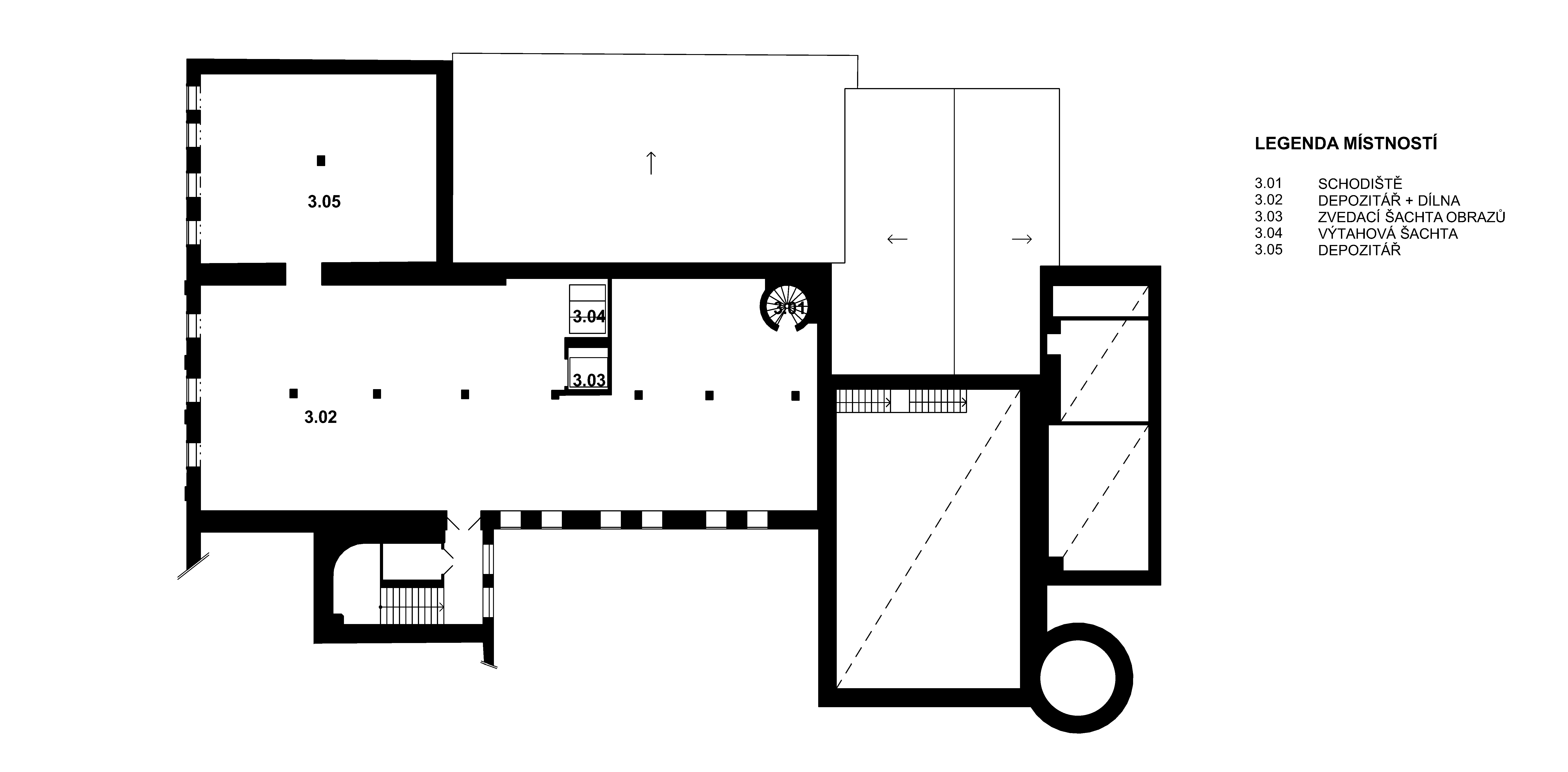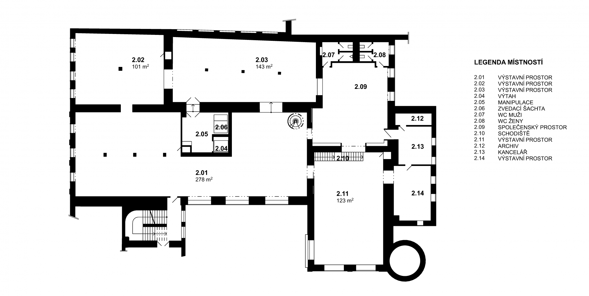 Trojpodlažný objekt je po rekonštrukcii funkčne rozdelený na tri úrovne. Na prízemí sa nachádza hlavný výstavný priestor so zameraním na české moderné a súčasné umenie, kaviareň, kníhkupectvo a multifunkčná prednášková miestnosť. Na poschodí sú výstavné priestory venované modernému umeniu a súkromná časť. Depozitár s regálovým systémom je situovaný na najvyššom podlaží. Celková úžitková plocha objektu je 3 000 m2.