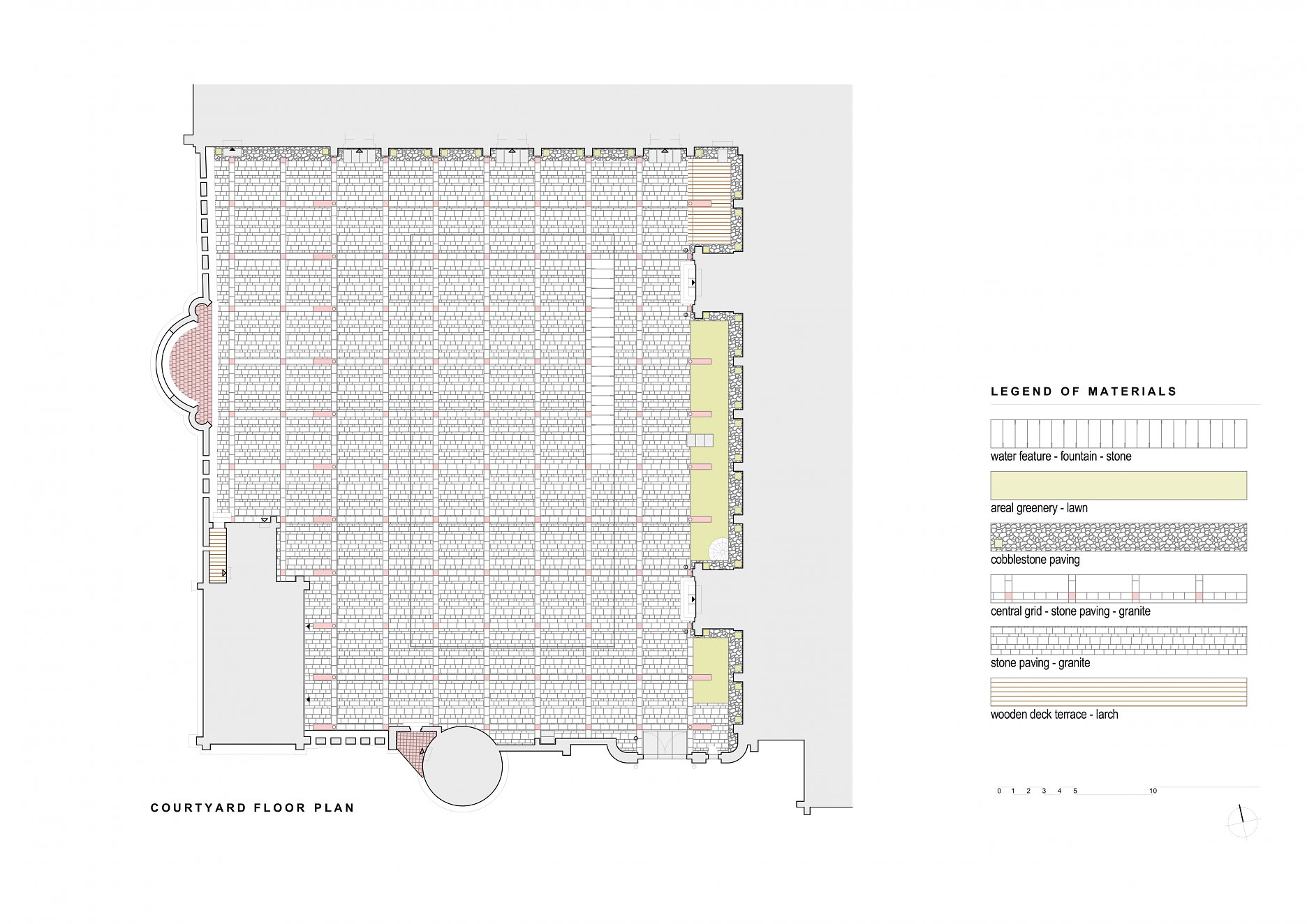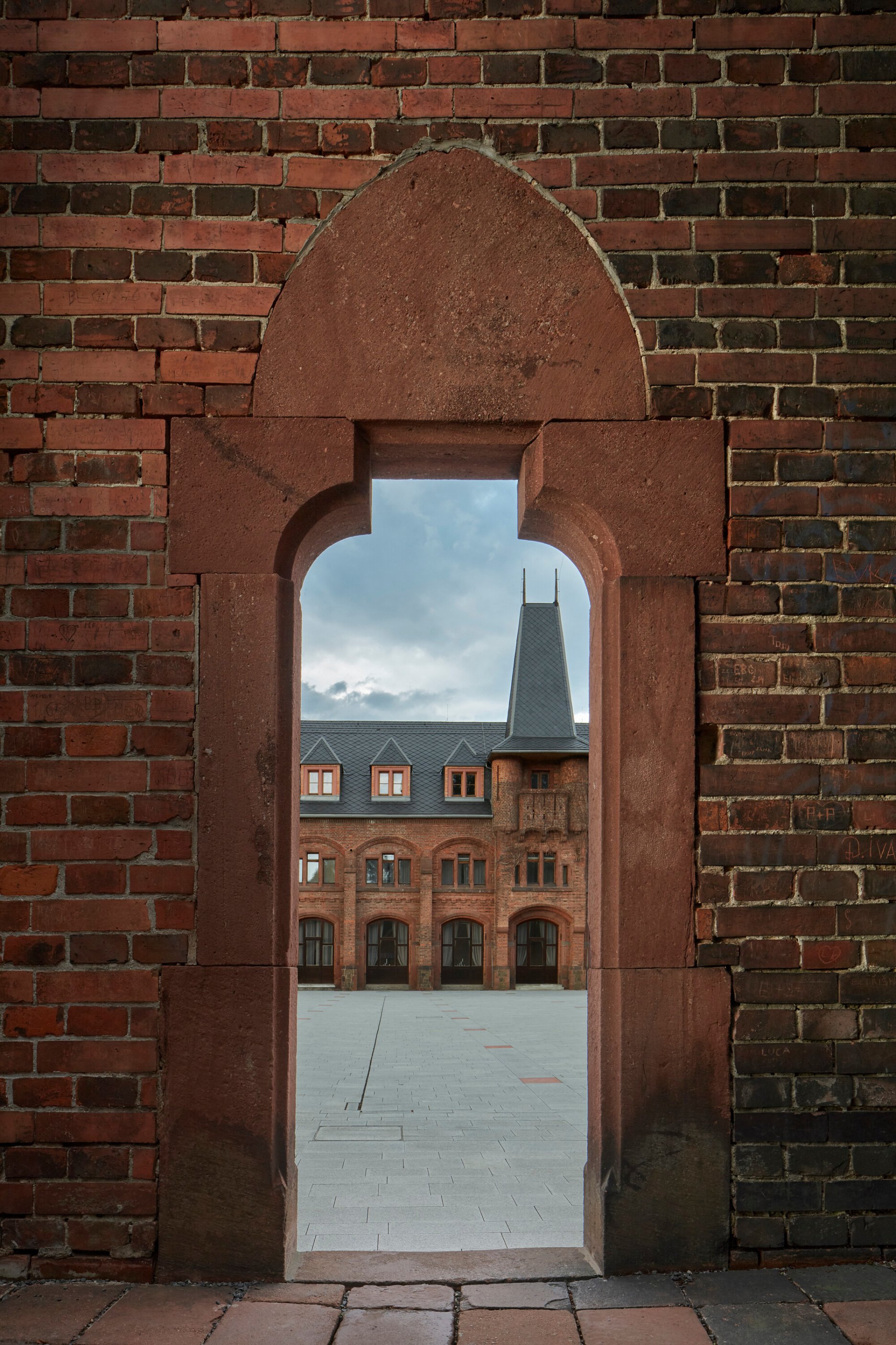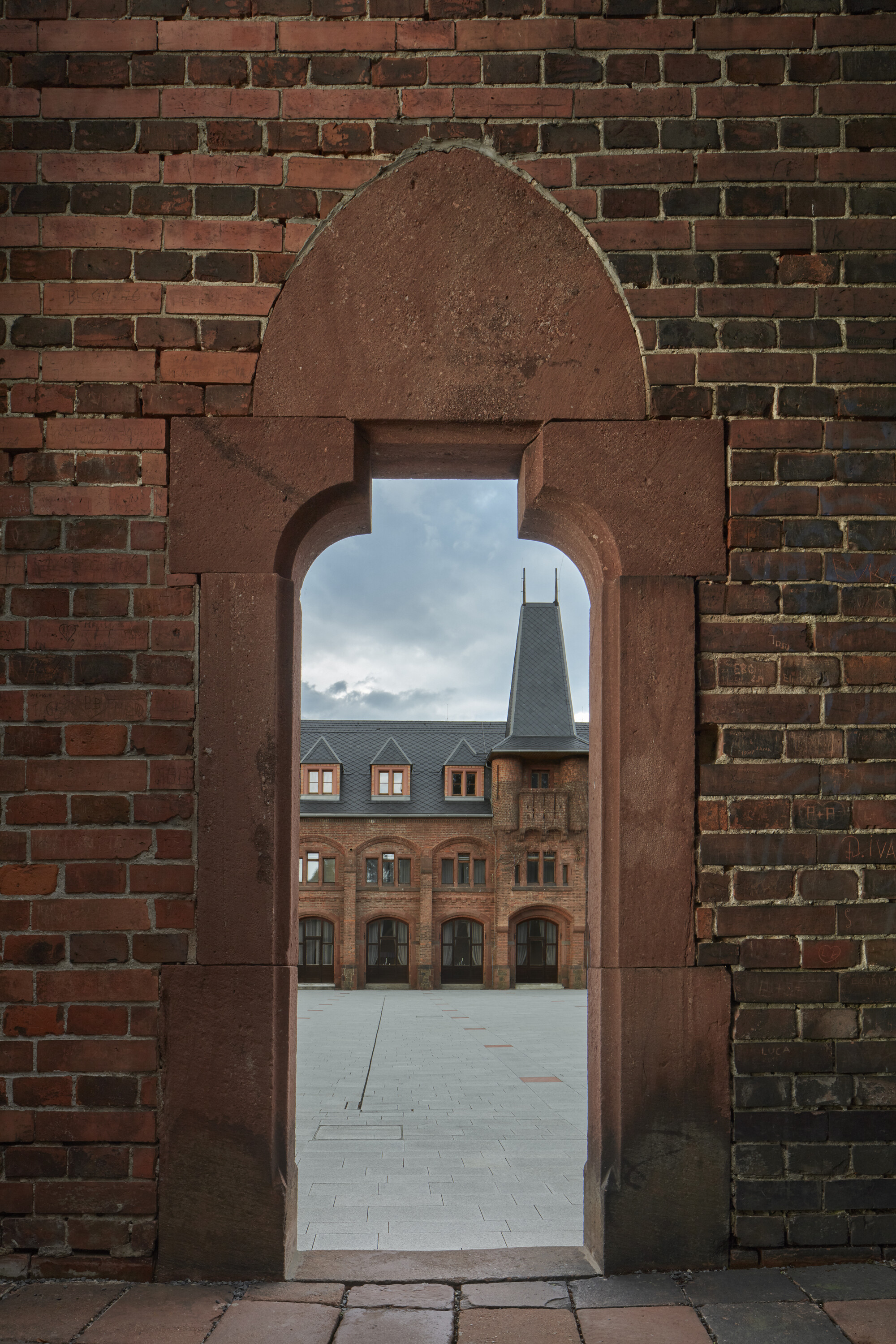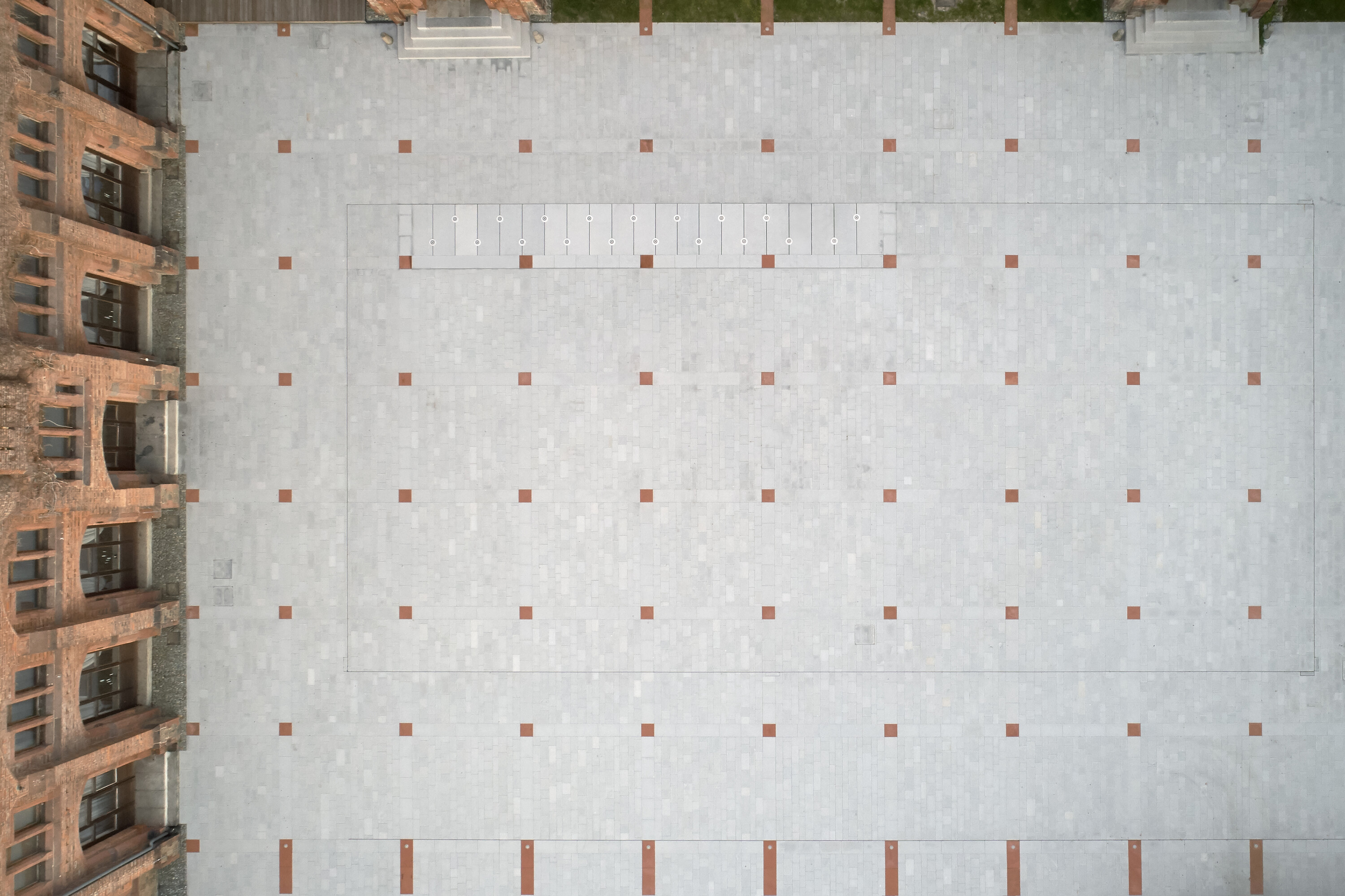Rekonštrukcia opäť zjednotila nádvorie pre potreby kultúrnych podujatí. Plocha jednotne vydláždená žulovými platňami, tvorí dôstojné pozadie pre romantický výraz Červeného zámku. Predovšetkým v letných mesiacoch zlepšuje klímu na nádvorí fontána so skrytou hladinou.