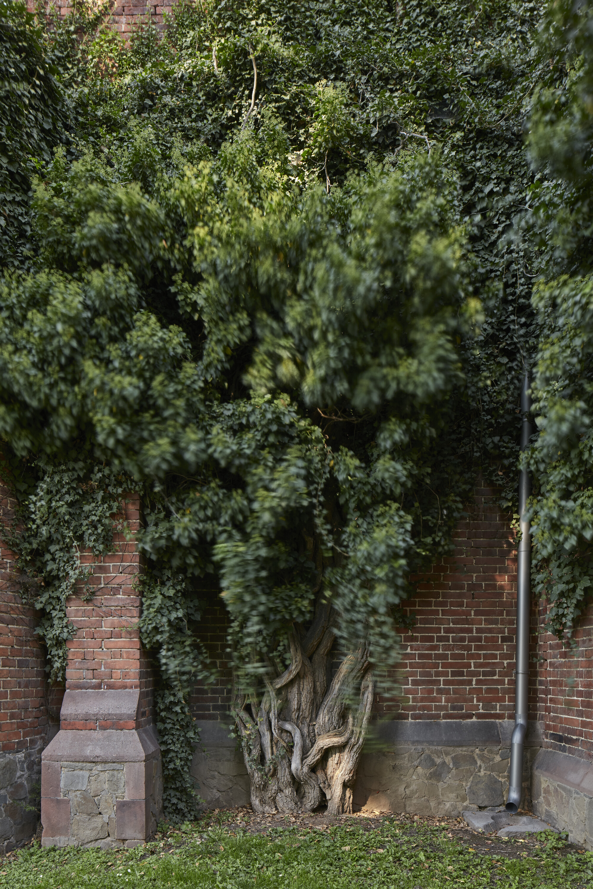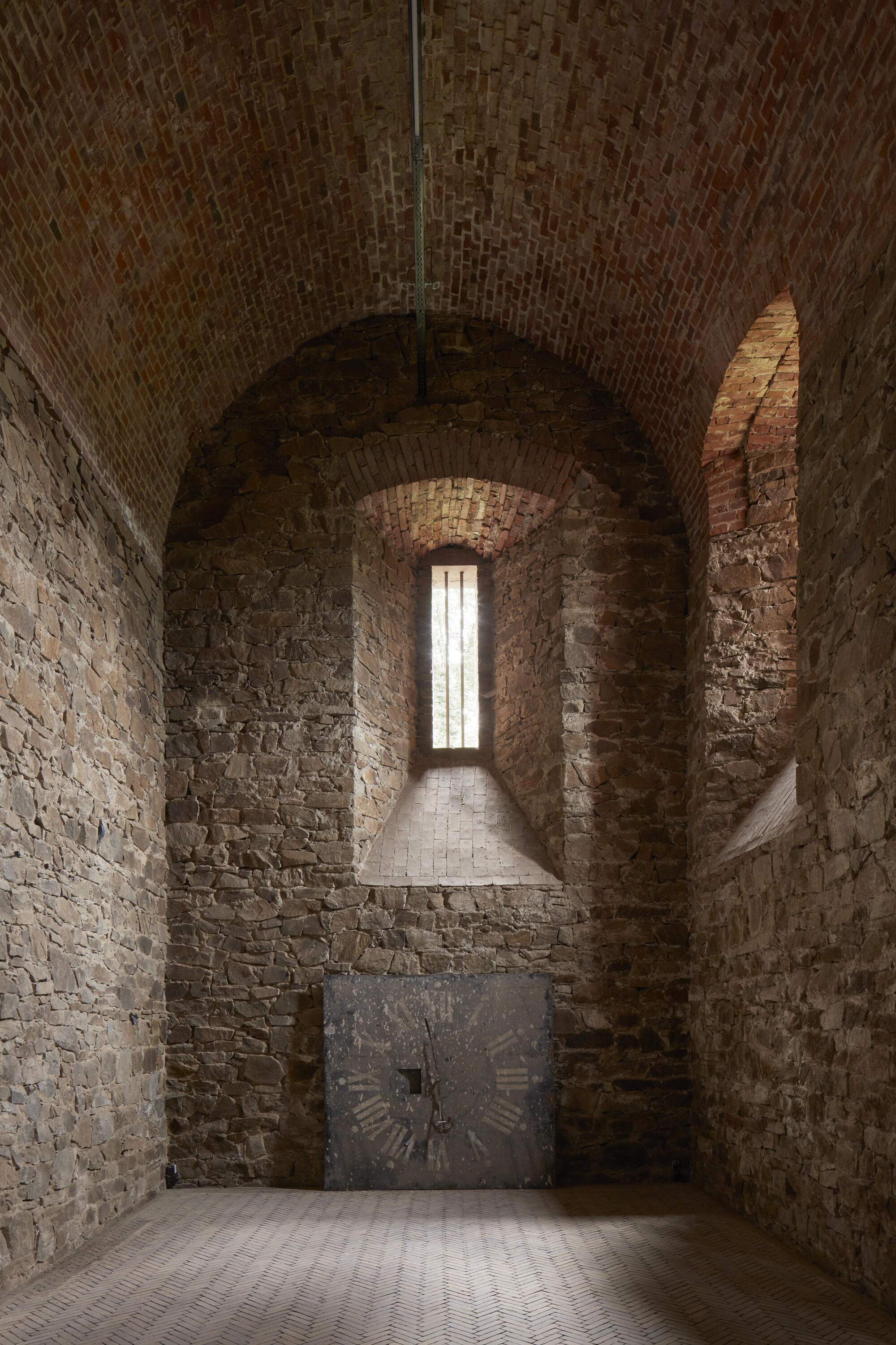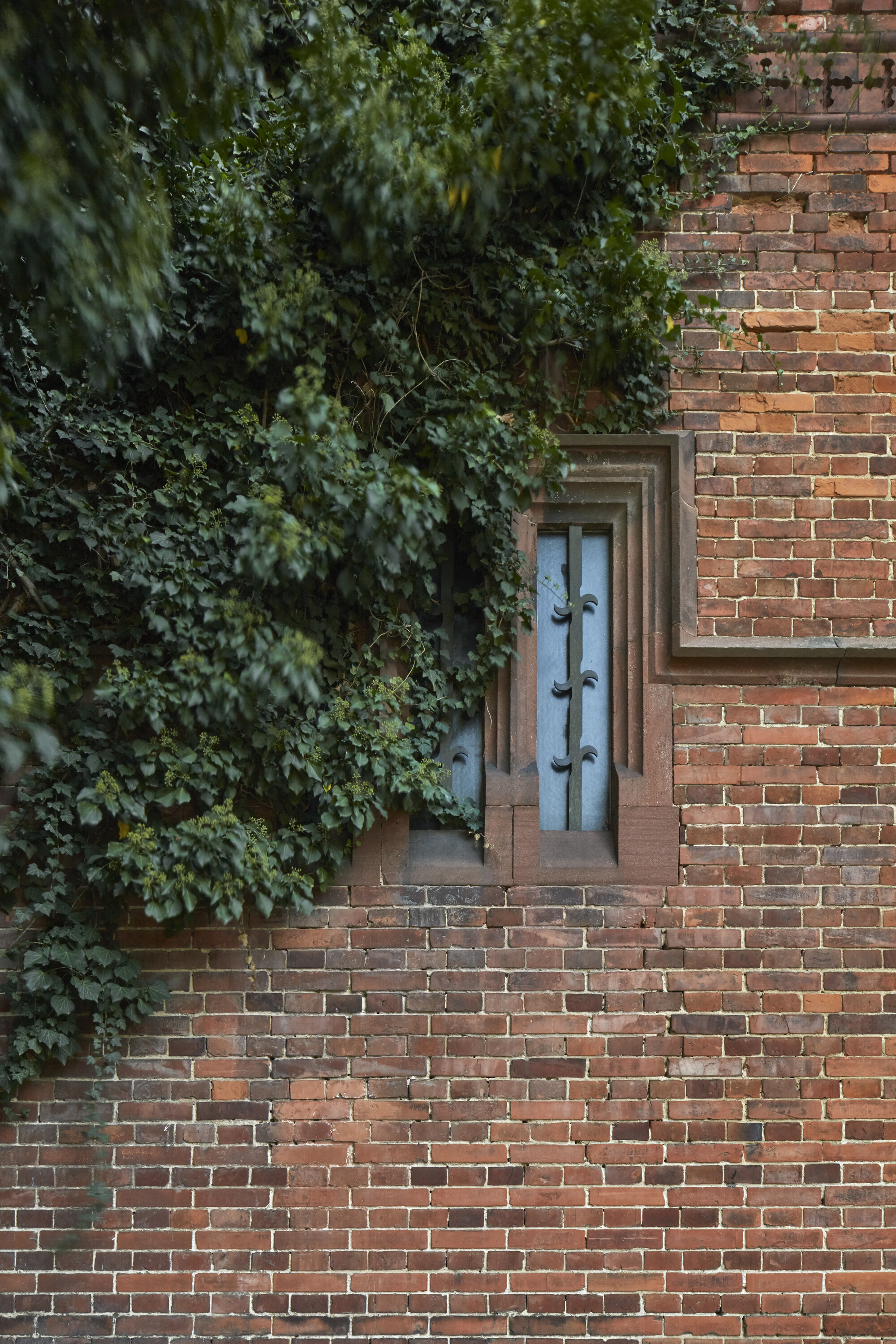 Režné tehlové murivo, bridlicová strecha s minimom klampiarskych detailov, dôsledne obnovené remeselné detaily...