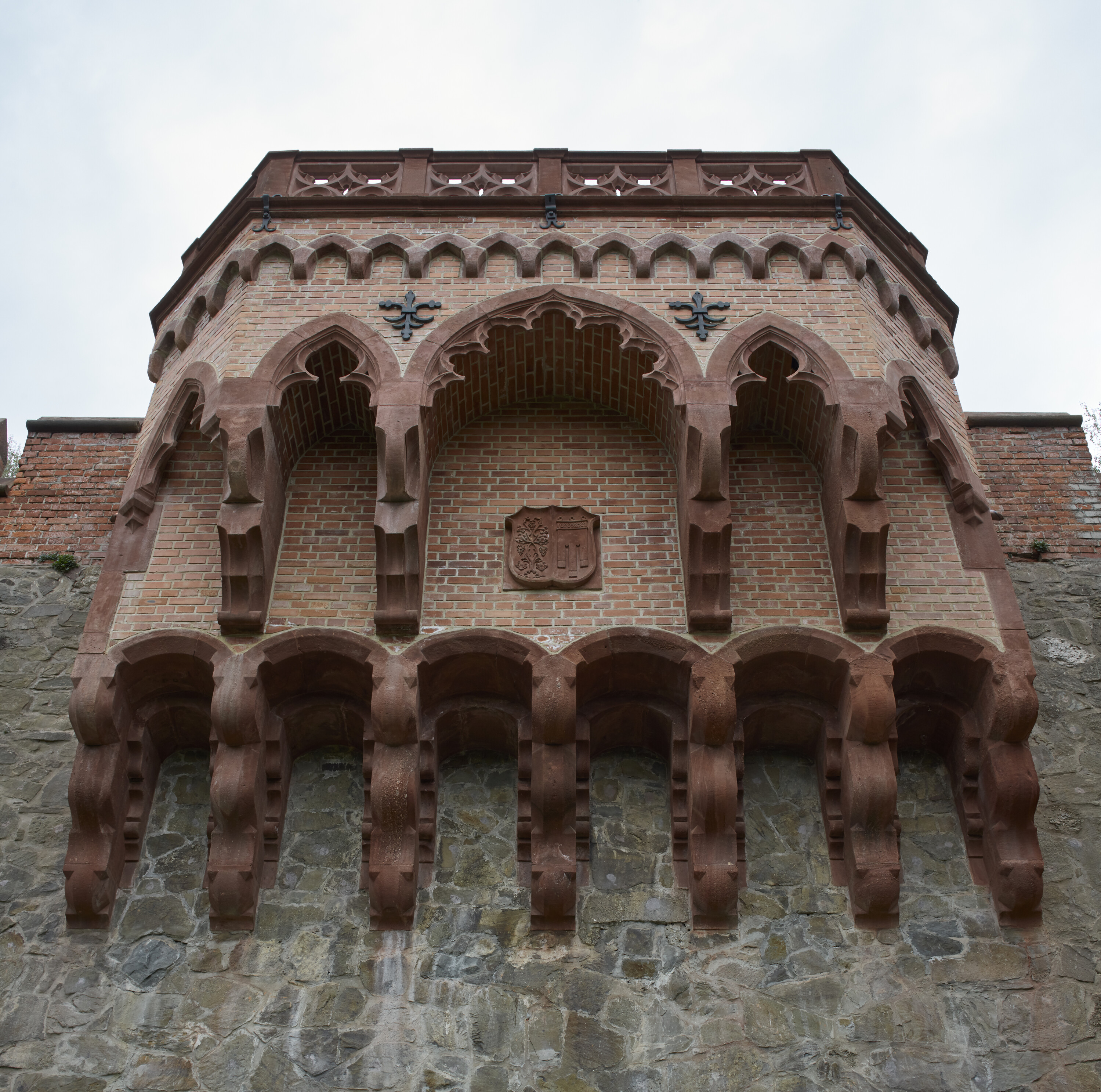 Hodnotné historické murivo bolo zachované v maximálnej možnej miere. Fasádu zámku z režného muriva, s kamennými prvkami z červeného pieskovca, zdobia umelecko-remeselné prvky - napríklad erbové a nápisové dosky, chrliče, maskaróny, rozety, zakončovacie články, socha baziliška, alebo komínové hlavice. Na fasáde vstupnej brány bol po rokoch doplnený ukončovací článok vežíc (zosilujúcich arkierov).