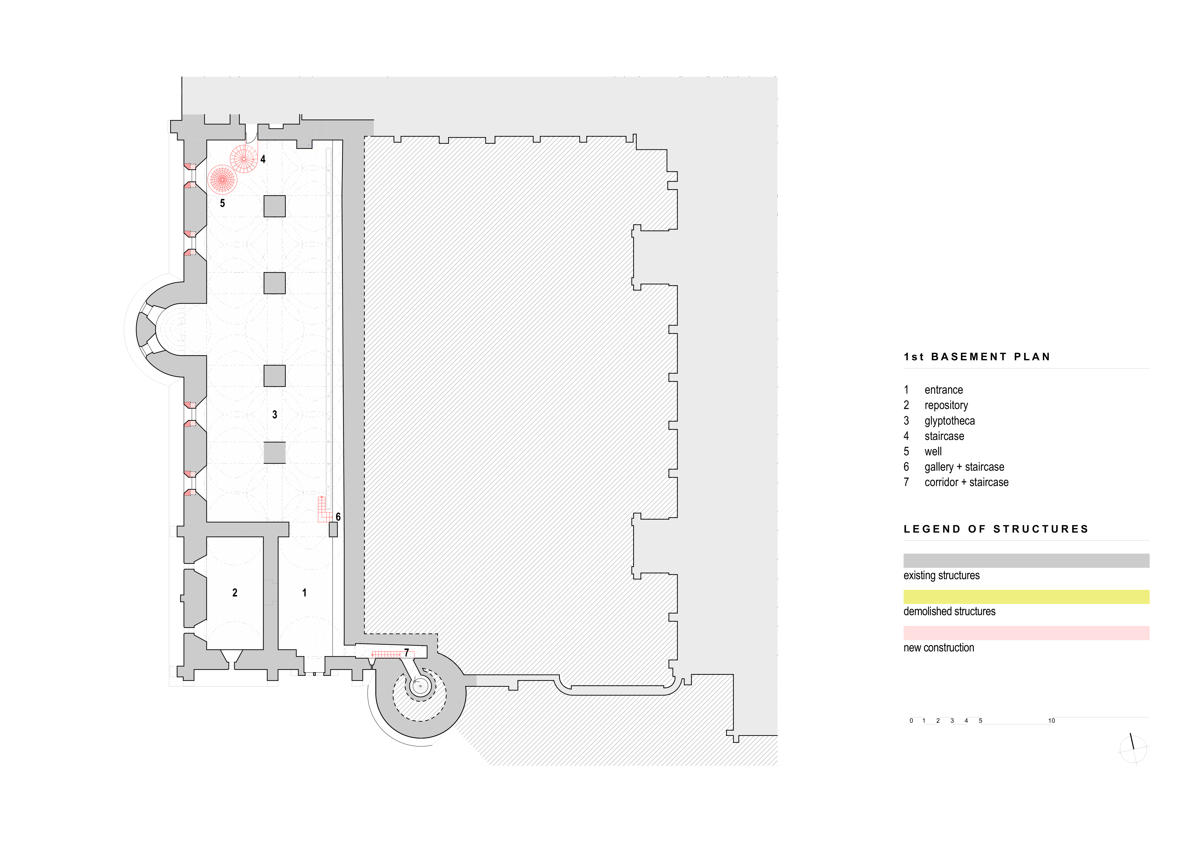 Klenutému dvojloďovému priestoru dolných koniarní (vtedajší hospic pre ranené kone) prinavrátila rekonštrukcia pôvodnú dispozíciu a monumentalitu. Priestor našiel uplatnenie pre výstavy, koncerty a ako glypotéka, kde sú uložené pôvodné sochy a fragmenty zo striech a fasád objektu.