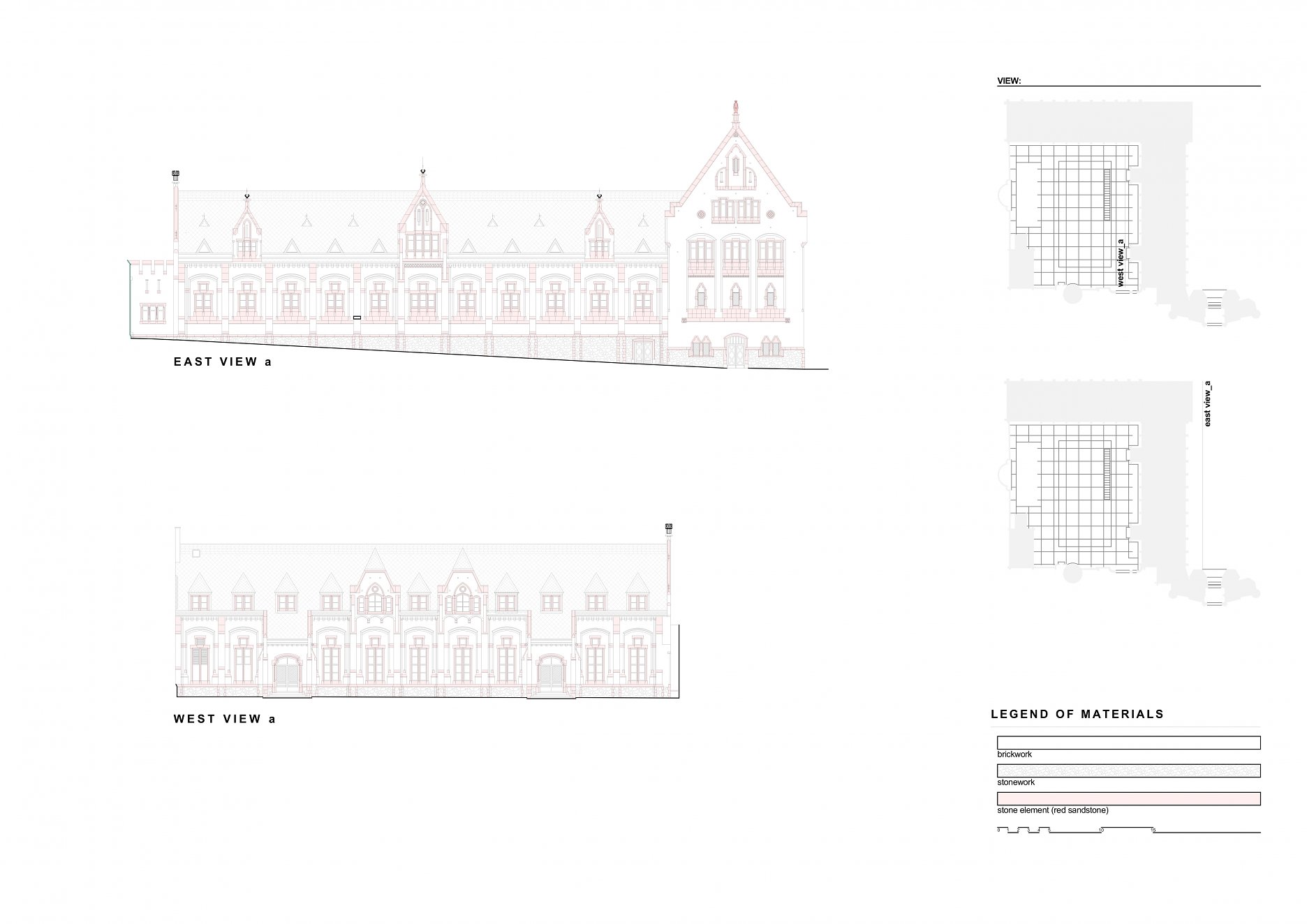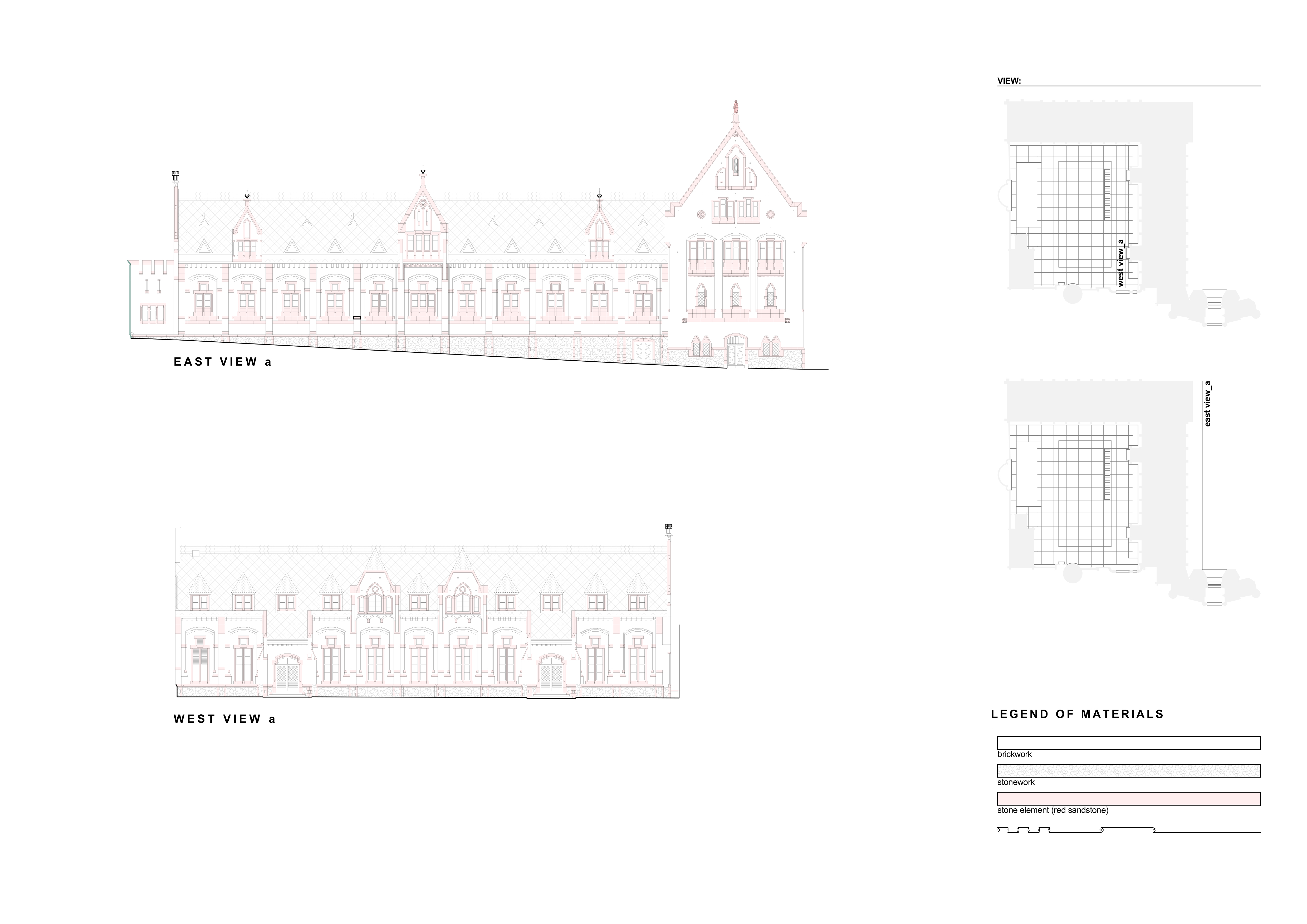 V rámci úprav krovov boli zrealizované valbové vikiere, ktoré zodpovedajú riešeniu z 50. rokov minulého storočia a vyhovujú potrebám ubytovania. Skladba strešnej krytiny, realizovanej zo štiepanej bridlice minimalizuje klampiarske prvky. Bridlica kryje tiež úžľabia, nárožia, hrebeň a odkvap.