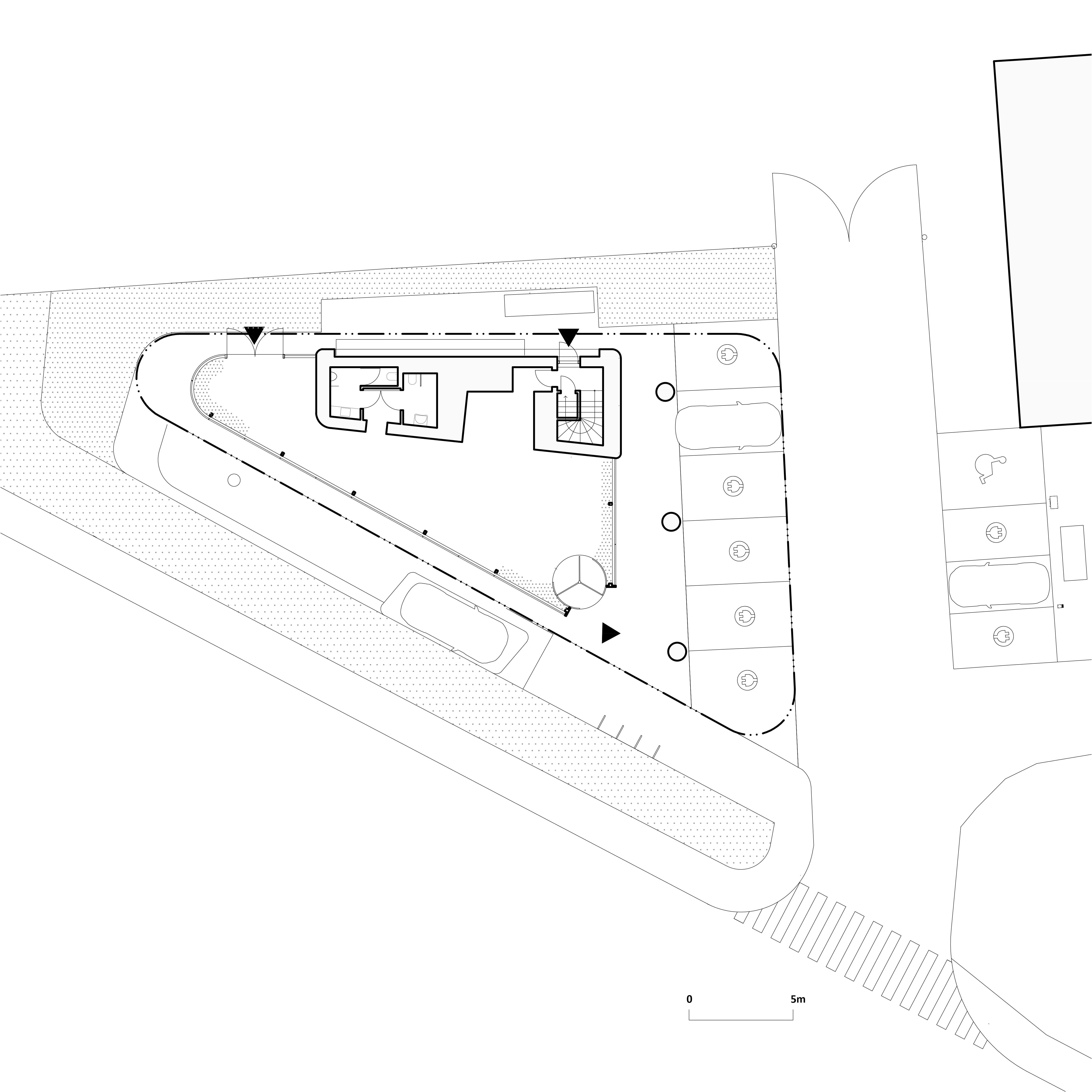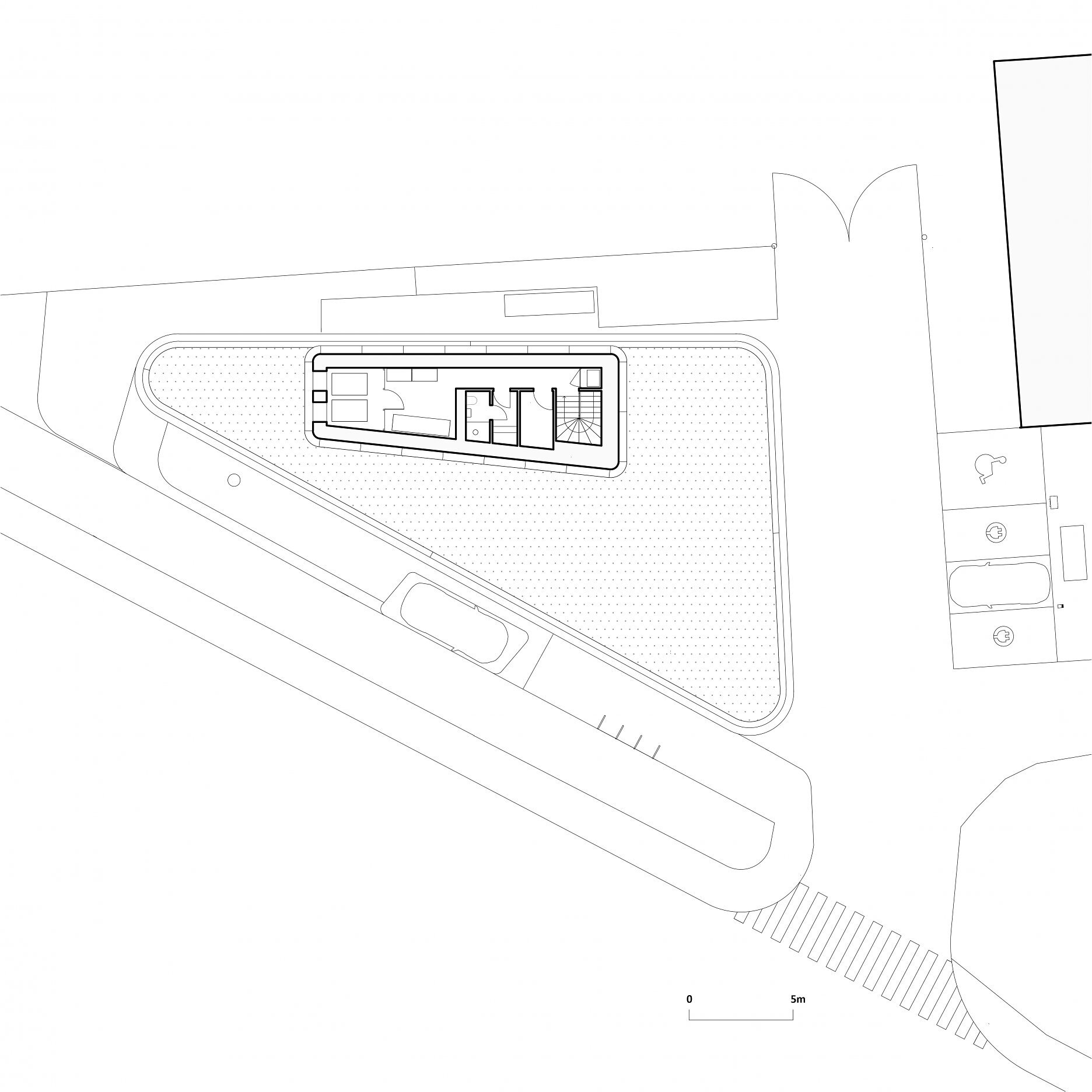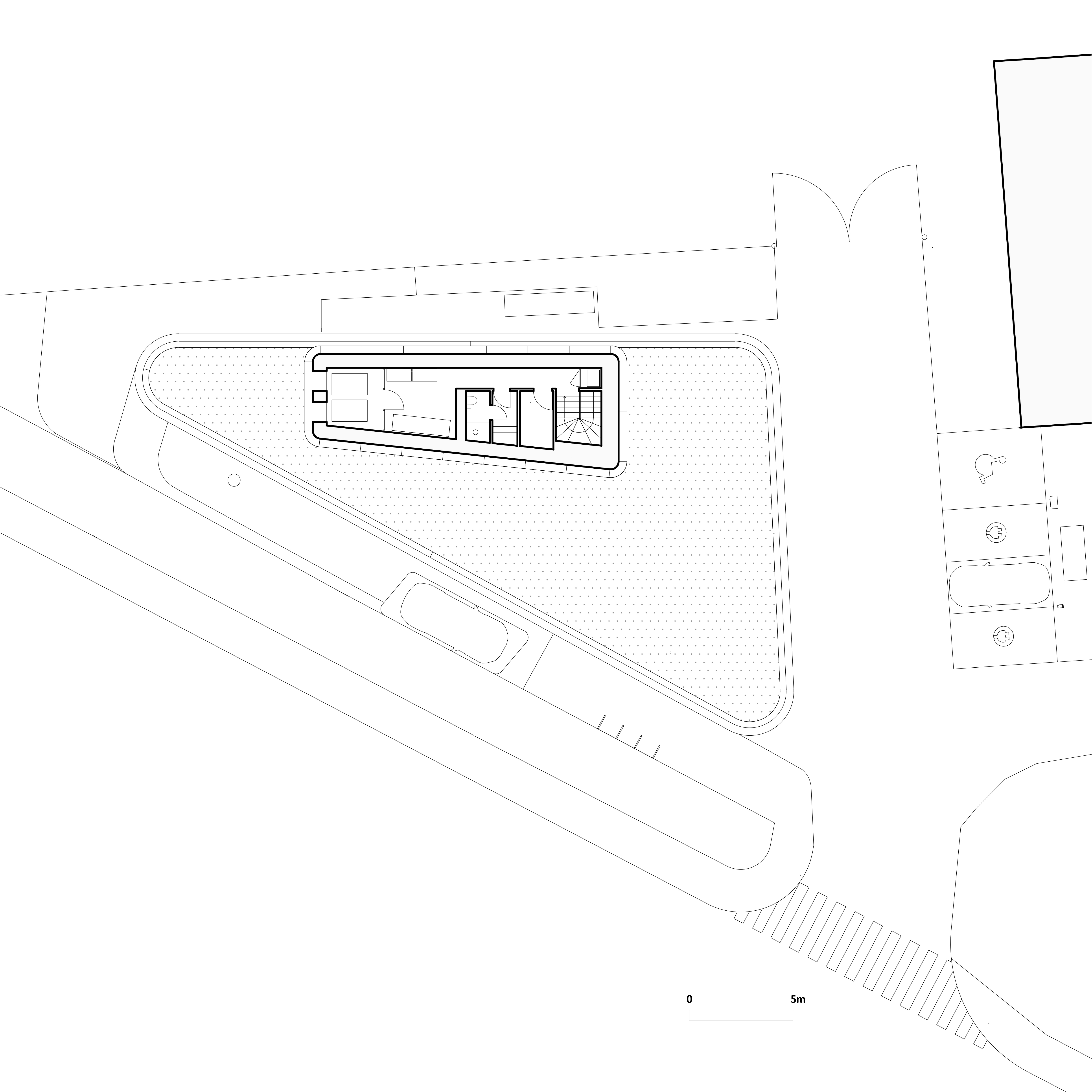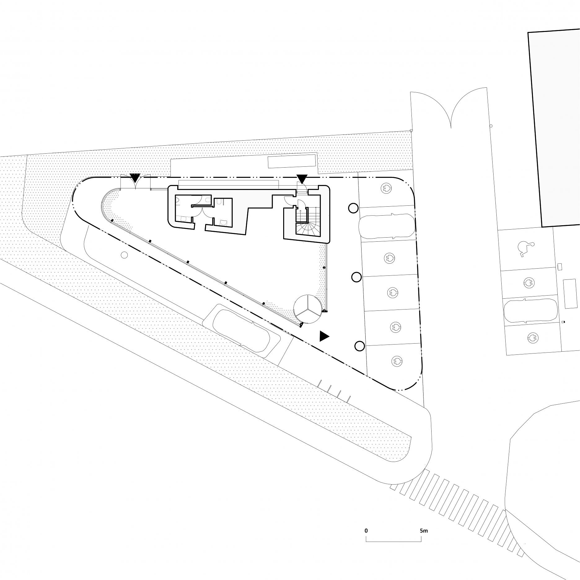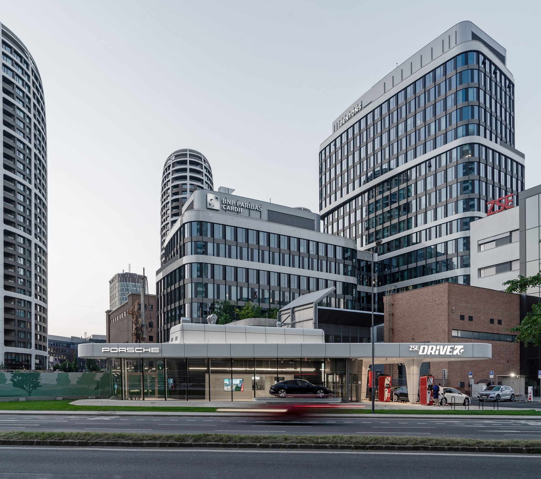 Zvolené tvarové riešenie svojou organickou formou reaguje na kontext susedného projektu SKY PARK-u, súčasne odkazuje na futuristickú architektúru čerpacích staníc z obdobia 1. ČSR. Urbanistické riešenie bolo determinované nepravidelným trojuholníkovým tvarom pozemku, vklineným medzi Landererovu ulicu a areály Sky Park-u a ZSE. Budova sa otvára smerom do Landererovej ulice.