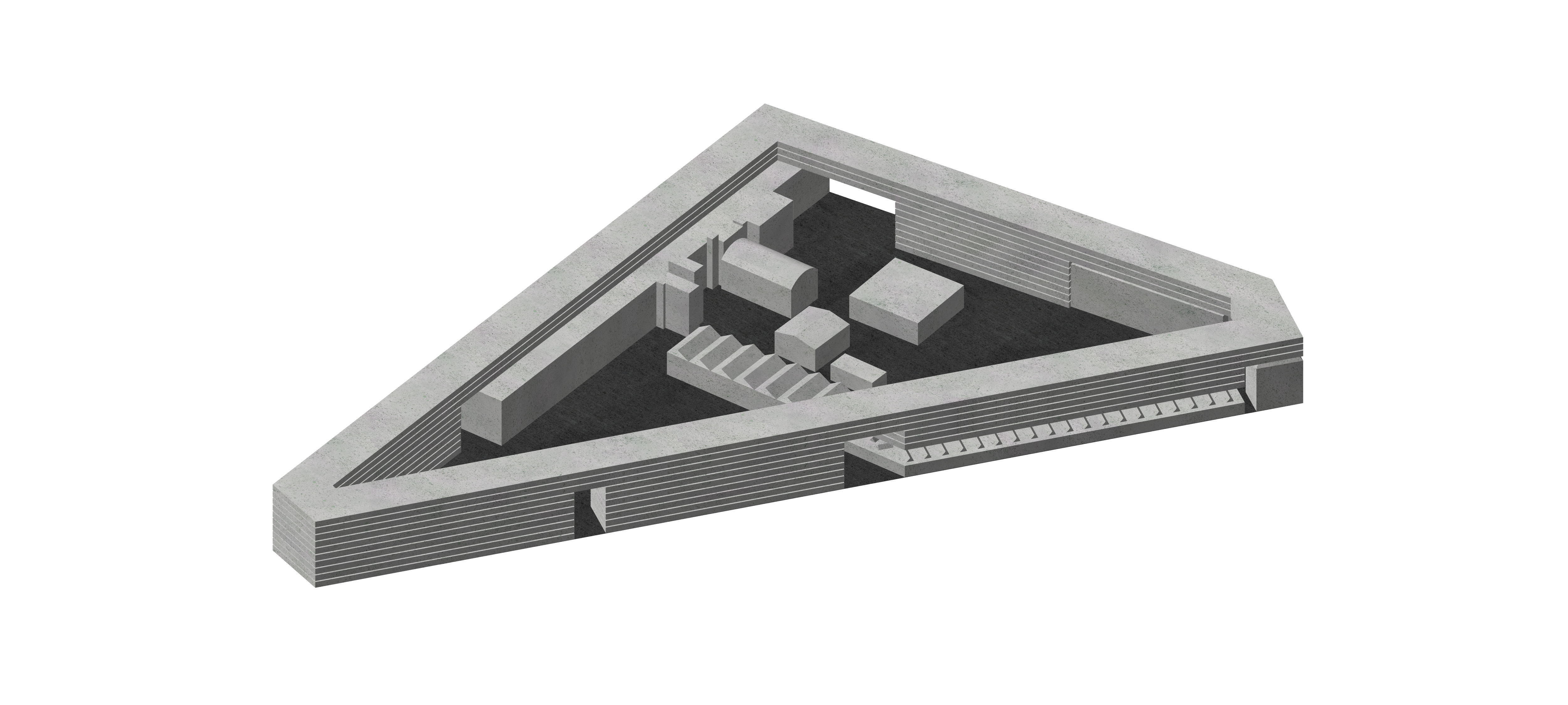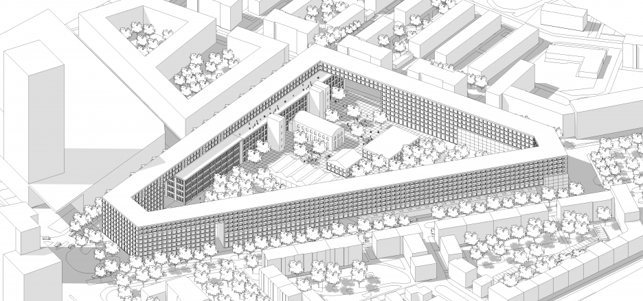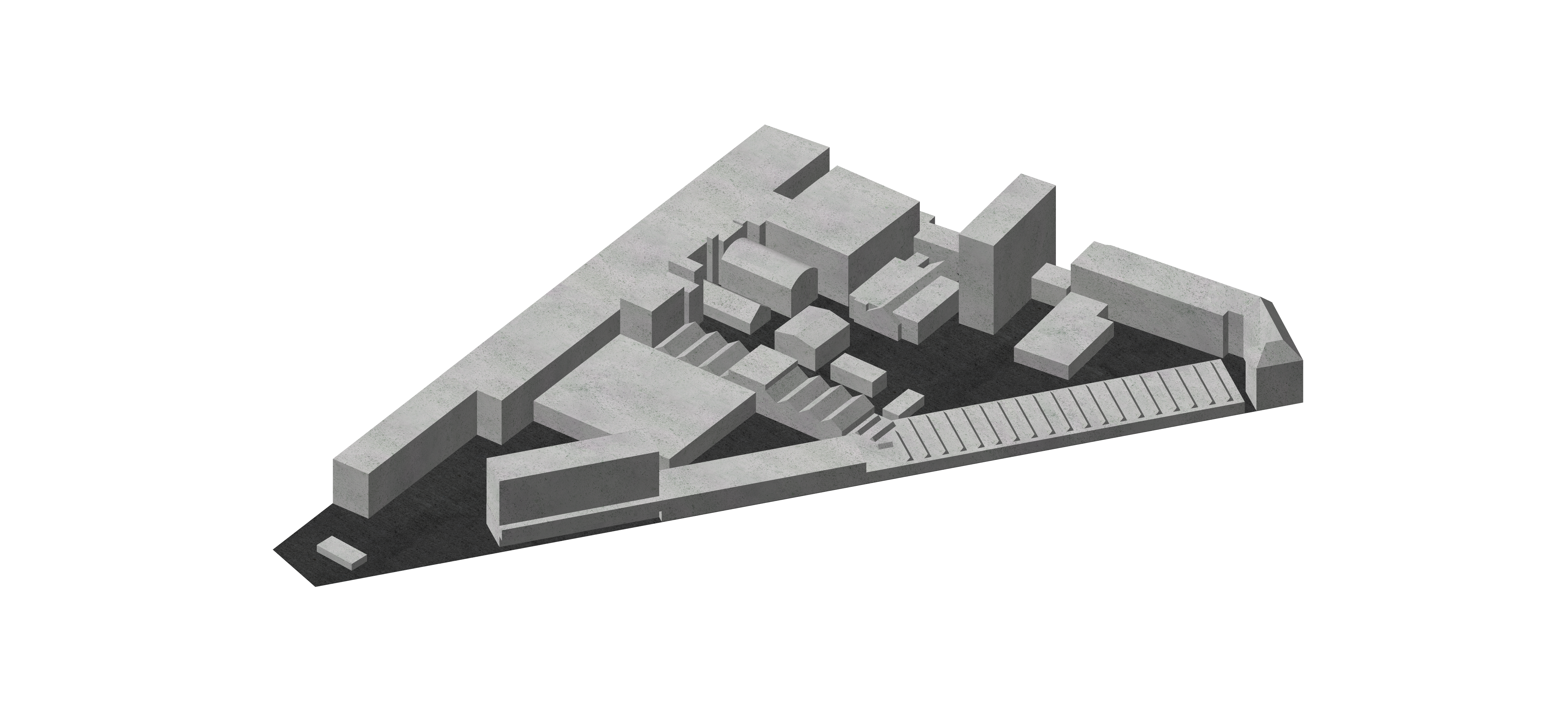 Pozemok je lemovaný dvoma frekventovanými ulicami, križovatka Košická - Prievozská je významným dopravným uzlom, v tesnej blízkosti sa nachádza Hlavná autobusová stanica. Ako reakcia na to sa blok uzatvára do seba, orientuje všetky funkcie do svojho vnútra a hmota bloku vystupuje ako bariéra medzi rušným okolím a introvertným vnútroblokom.