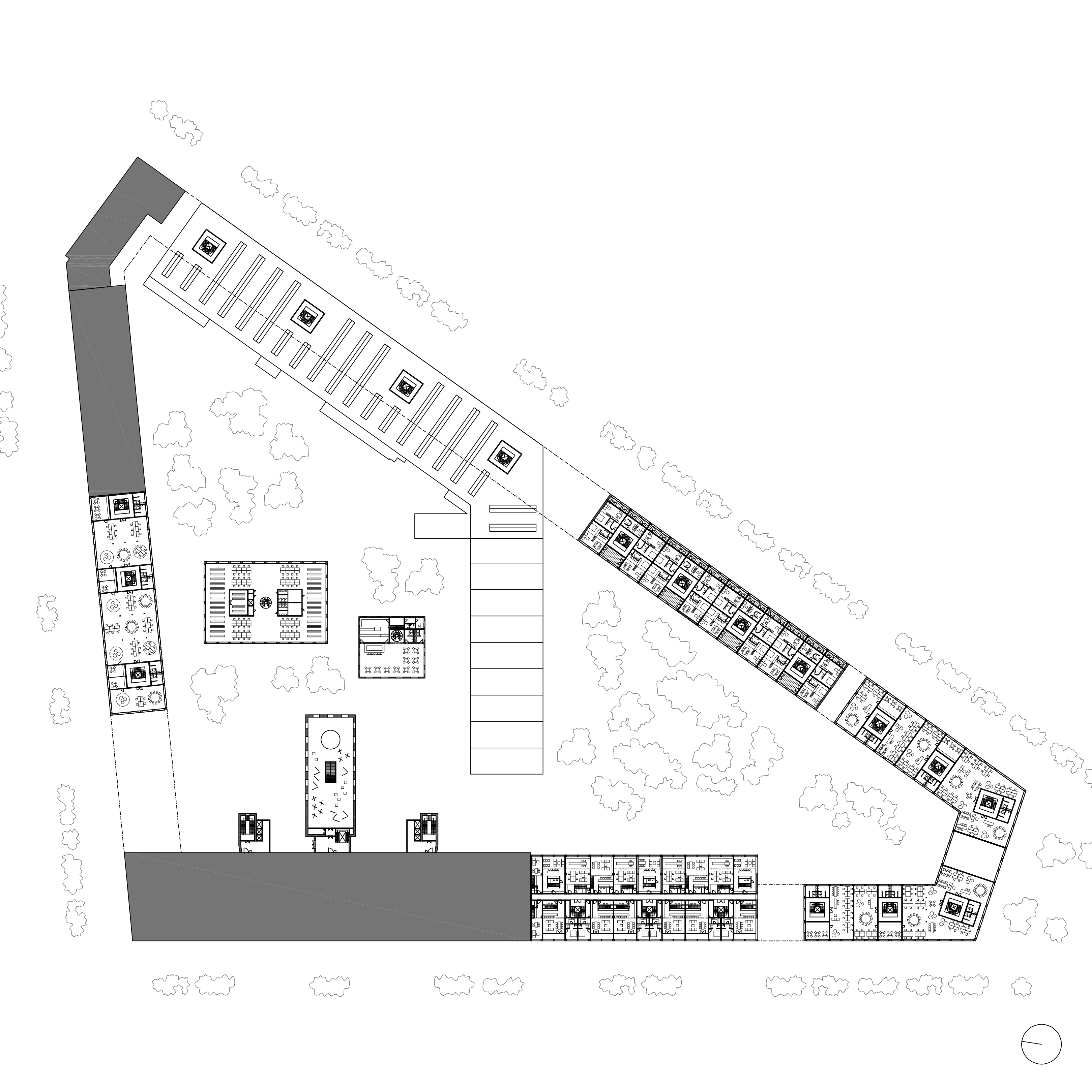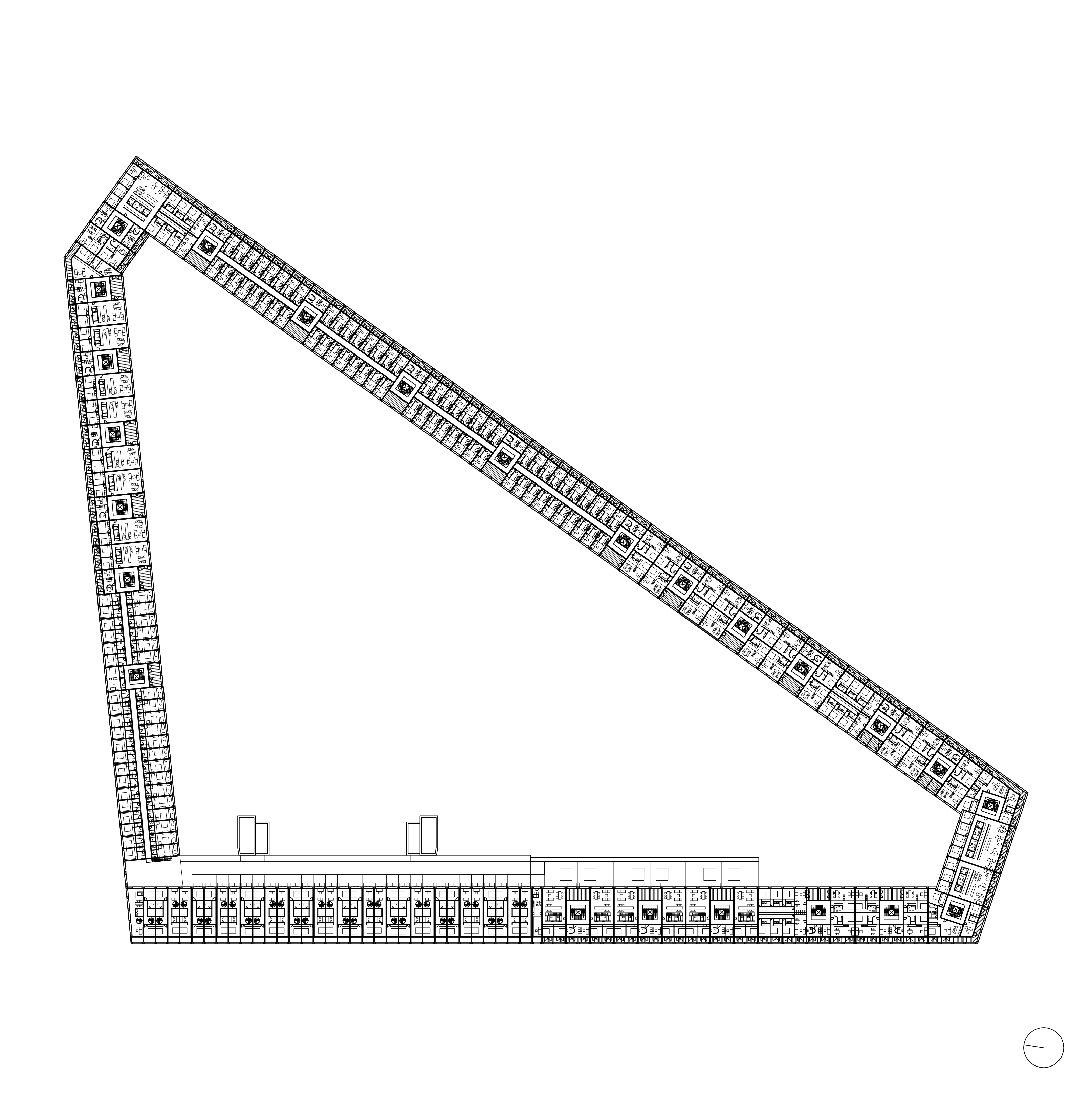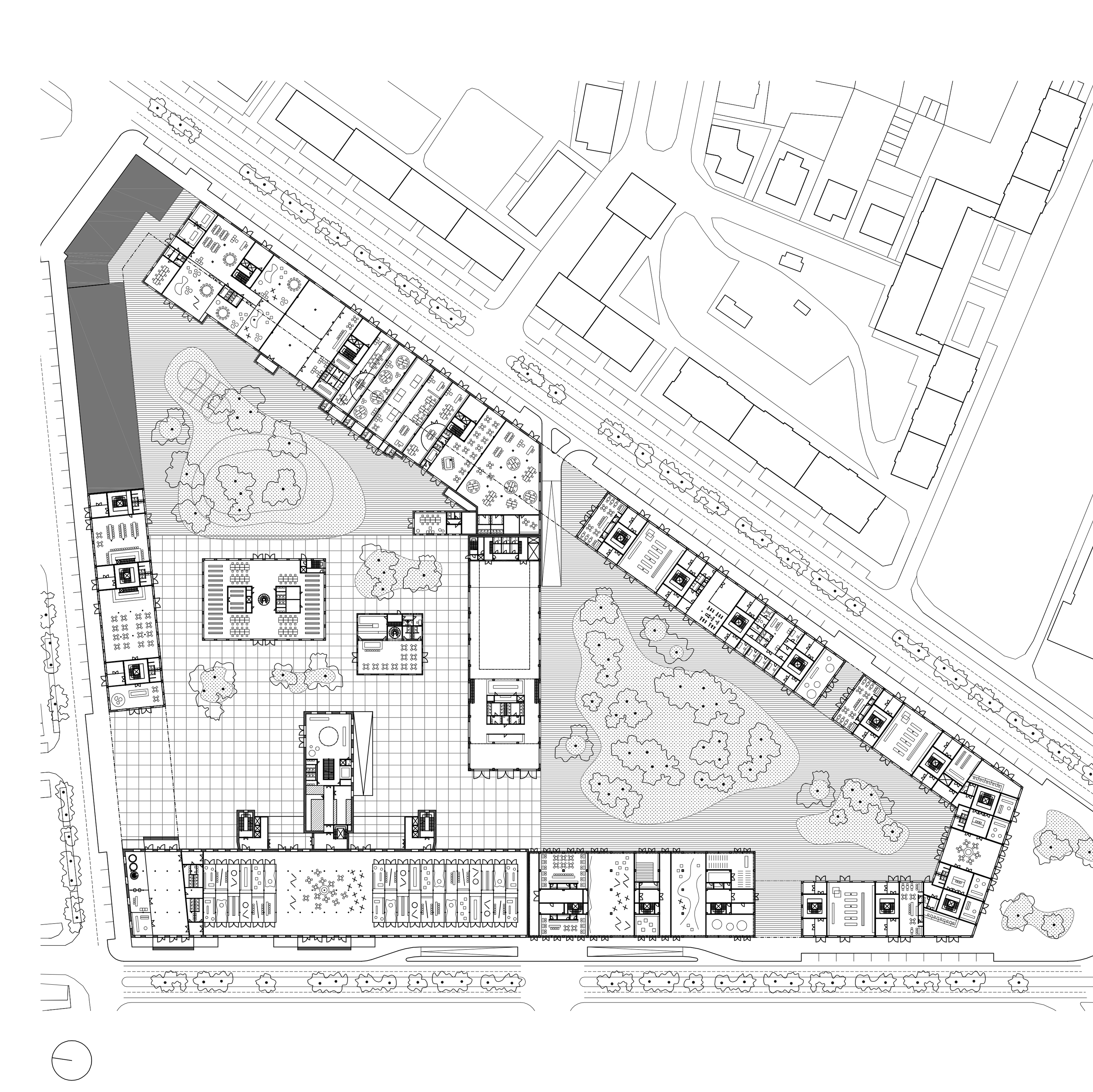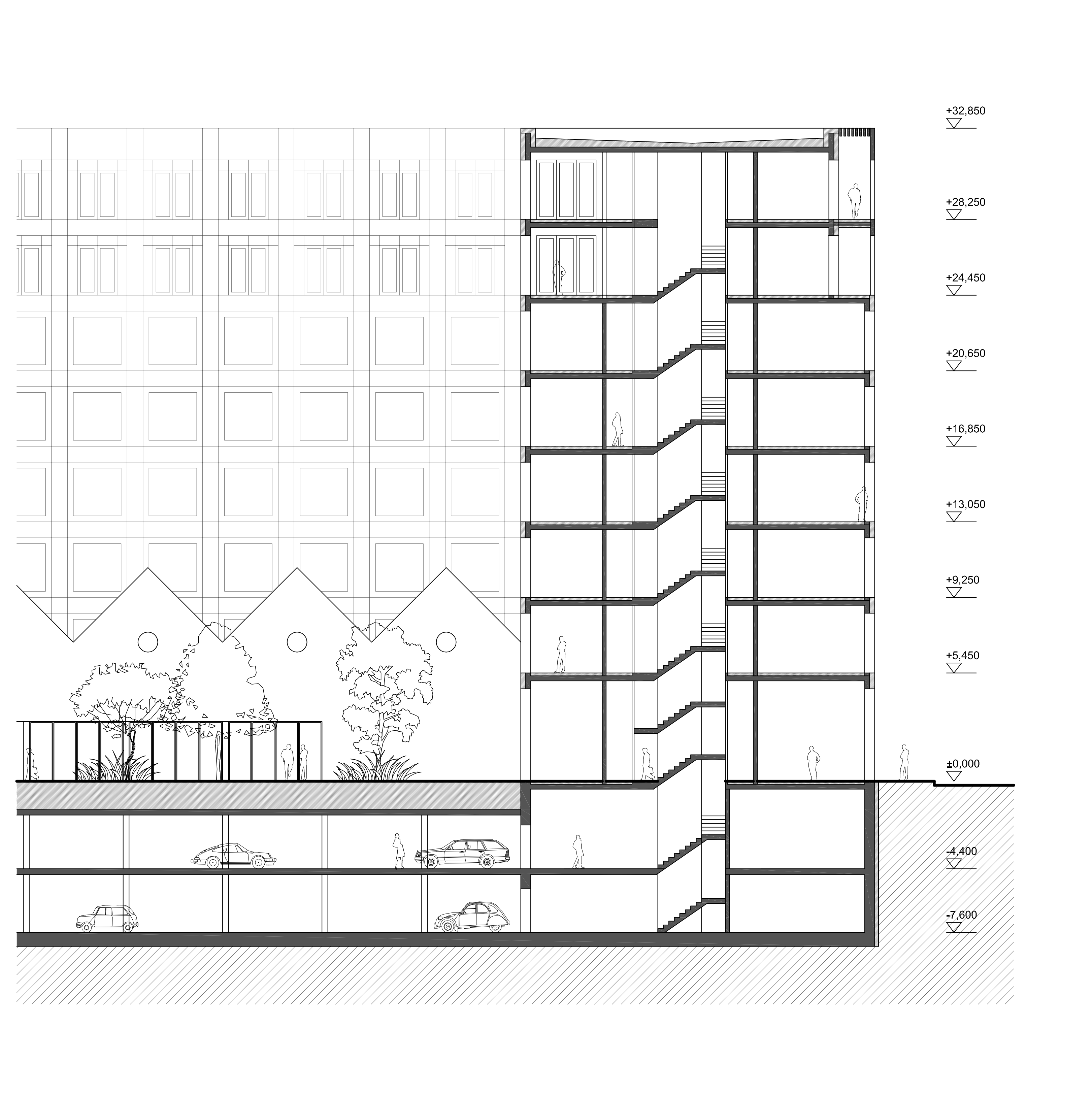 Blok povyšuje vrstvenie Cvernovky na princíp. Vrstvením vzniká hybrid kombinujúci funkcie bývania (62%), občianskej vybavenosti (20%) a administratívy (18%) do jedného polyfunkčného monobloku. Je to aj návrat k myšlienke “mesto v meste” prítomnej v 70-tych rokov v pôvodnom areály Cvernovky. S parterom občianskej vybavenosti zahŕňajúcim obchody, ateliéry, galérie, reštaurácie, bary, kaviarne, škôlku, múzeum, knižnicu alebo multifunkčnú sálu je záujem vytvoriť a dotovať verejný priestor, ktorý vzniká vo vnútrobloku novej Cvernovky.