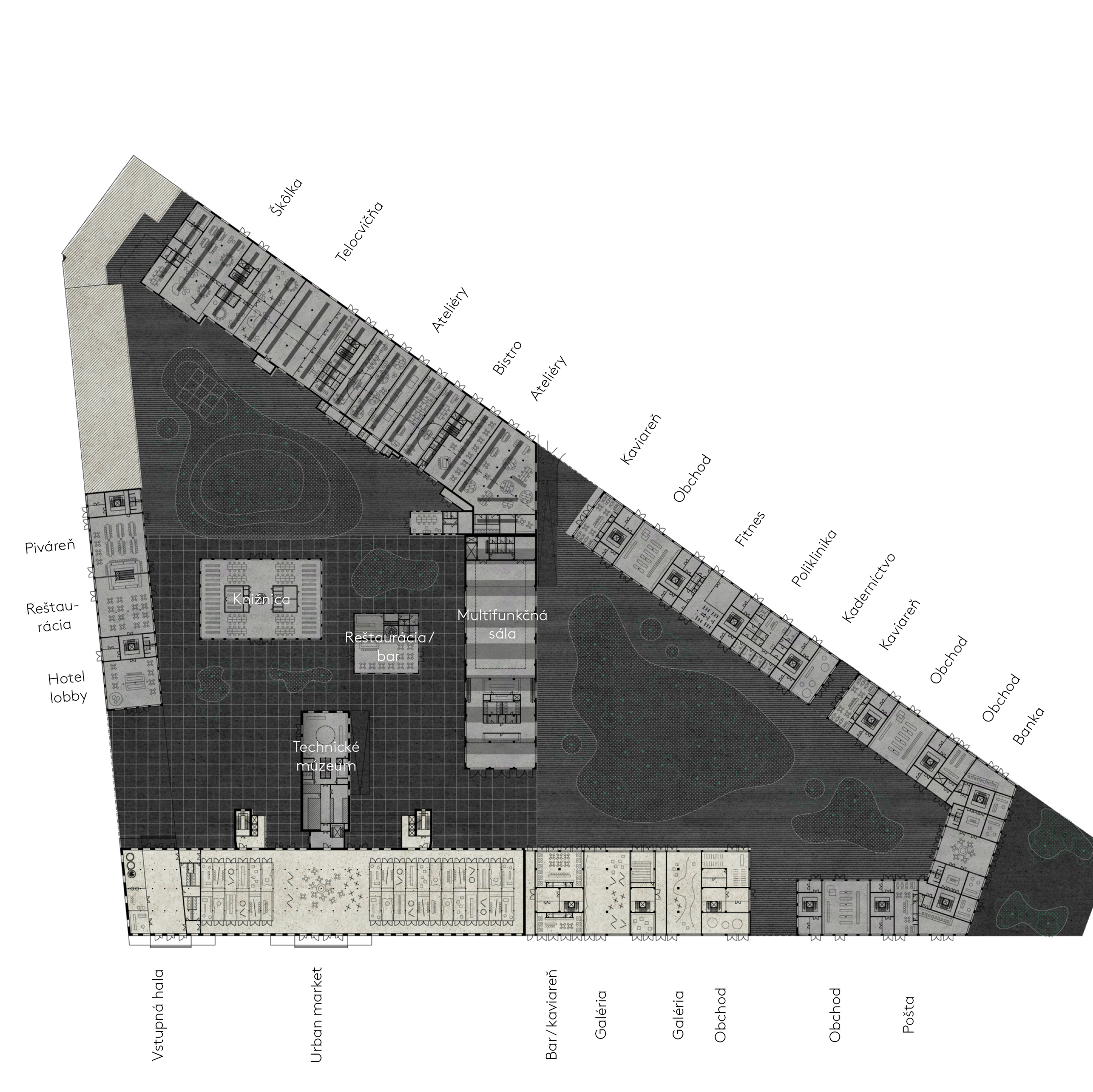 Návrh poukazuje na teoretickú možnosť, ako zakomponovať esenciu a hlavne prvky priemyselného areálu do nového funkčného mestského bloku. Pre návštevníka ponúka verejné priestory a občiansku vybavenosť, ktoré sú silne ovplyvnené existujúcimi priemyselnými budovami. Pre obyvateľa ponúka výhody hybridného mestkého bloku, lokality a pridanej hodnoty bývania v továrni.