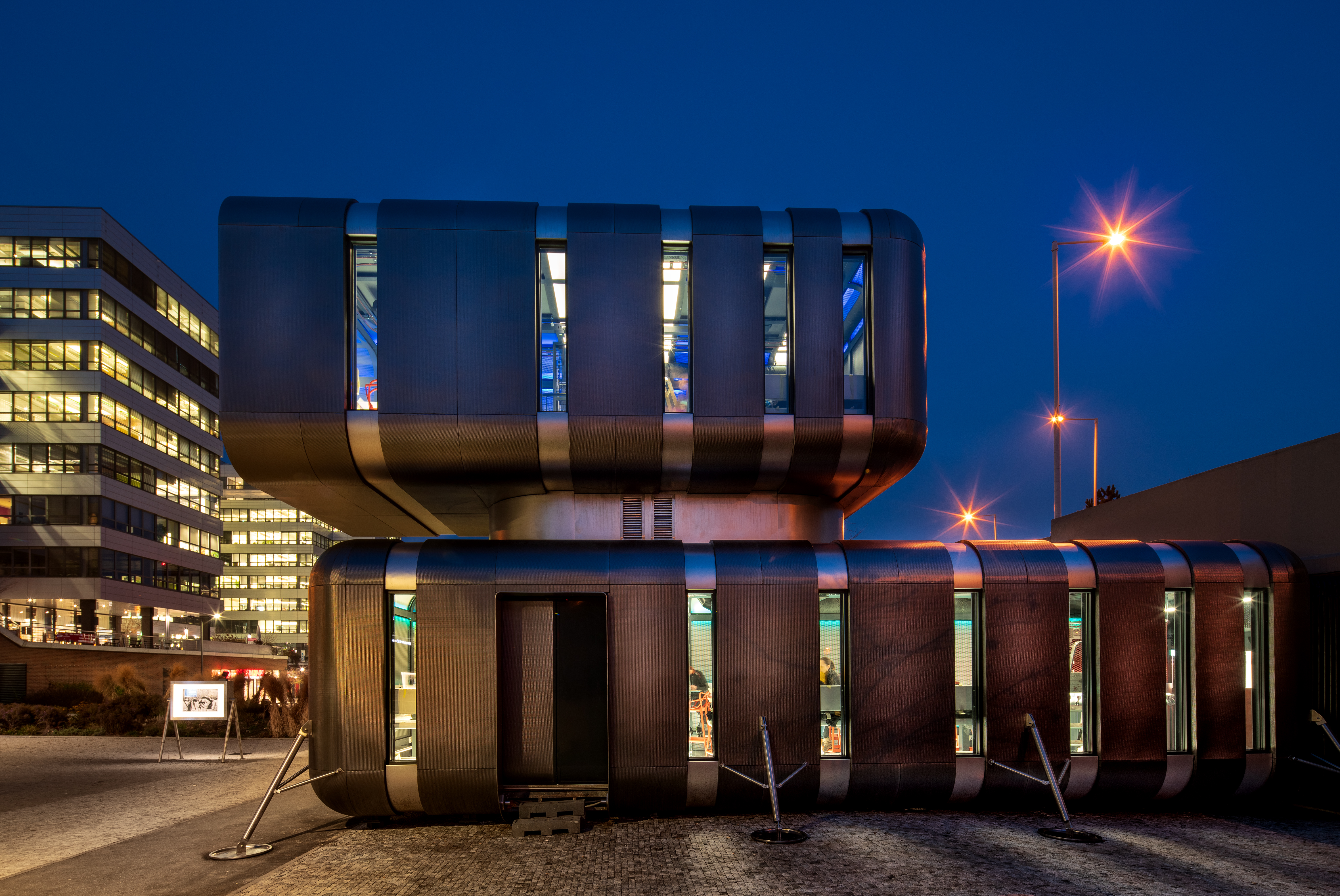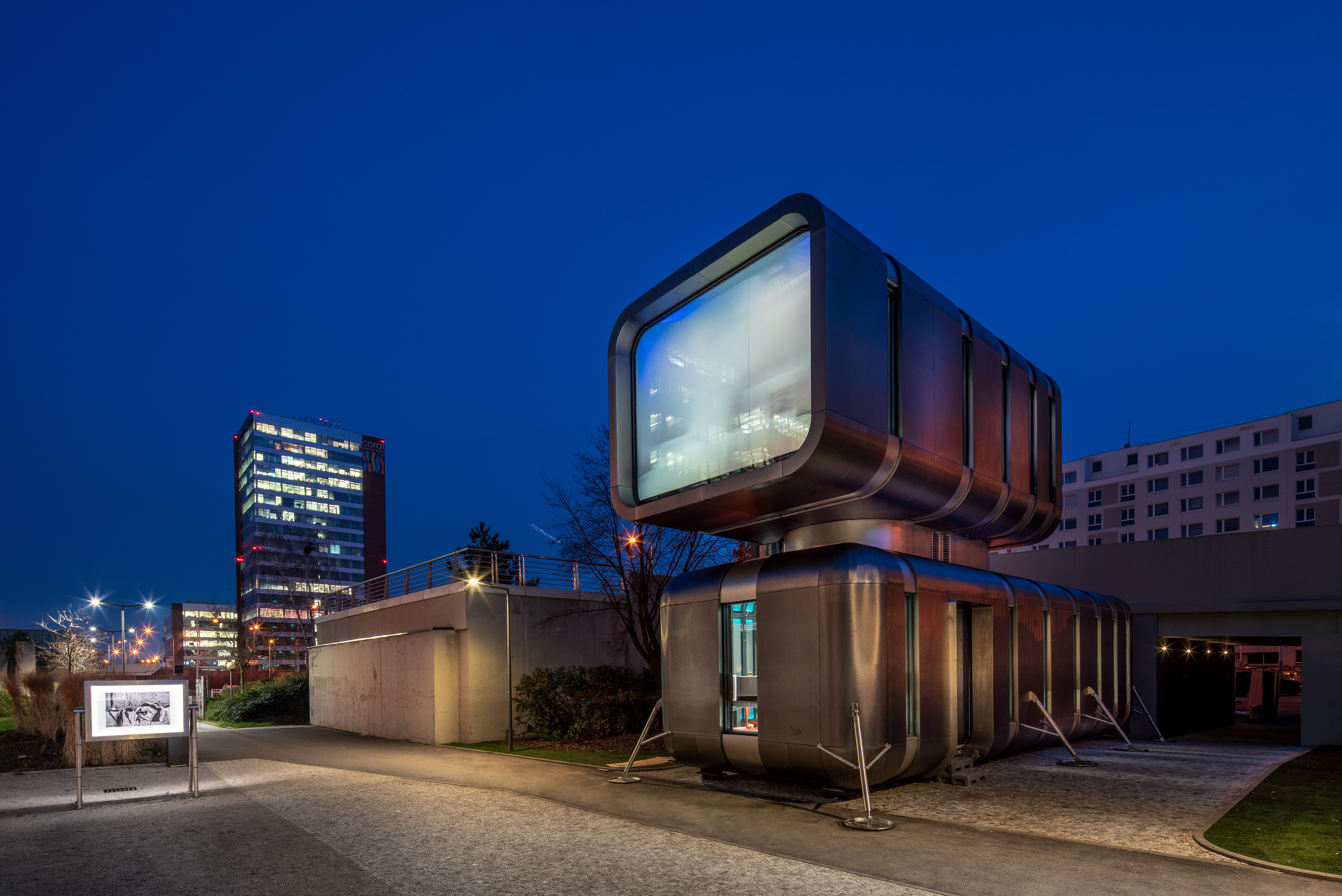 Pri stanici pražského metra Nové Butovice vyrástlo infocentrum a vináreň s robotickou obsluhou. Stavba je prvou realizáciou ateliéru Black n 'Arch, v ktorom pôsobí umelec David Černý známy predovšetkým svojimi provokatívnymi sochami a inštaláciam po boku architekta Tomáša Císařa. V súčasnosti Black n 'Arch pracuje už viac ako na desiatke projektov. Náklady na realizáciu objektu s oceľovou priestorovou konštrukciou sa vyšplhali na 21 miliónov Kč. Stavba vznikla podobne ako mnohé Černého sochy. Nosný skelet dvoch modulov bol v dielni precízne zvarený z ohýbaných “íčkových” profilov. Na nosníky bola následne navarená subtílnejšia podkonštrukcia. Oba moduly boli v celku dopravené na miesto, kde prebiehali dokončovacie práce a inštalácia fasádnych panelov z nehrdzavejúcej ocele. Proces výstavby bol zjednodušený absenciou pevných základov. Stavba je položená na pevnom povrchu, pričom dodatočnú oporu tvoria “nožičky” vybiehajúce do strán.