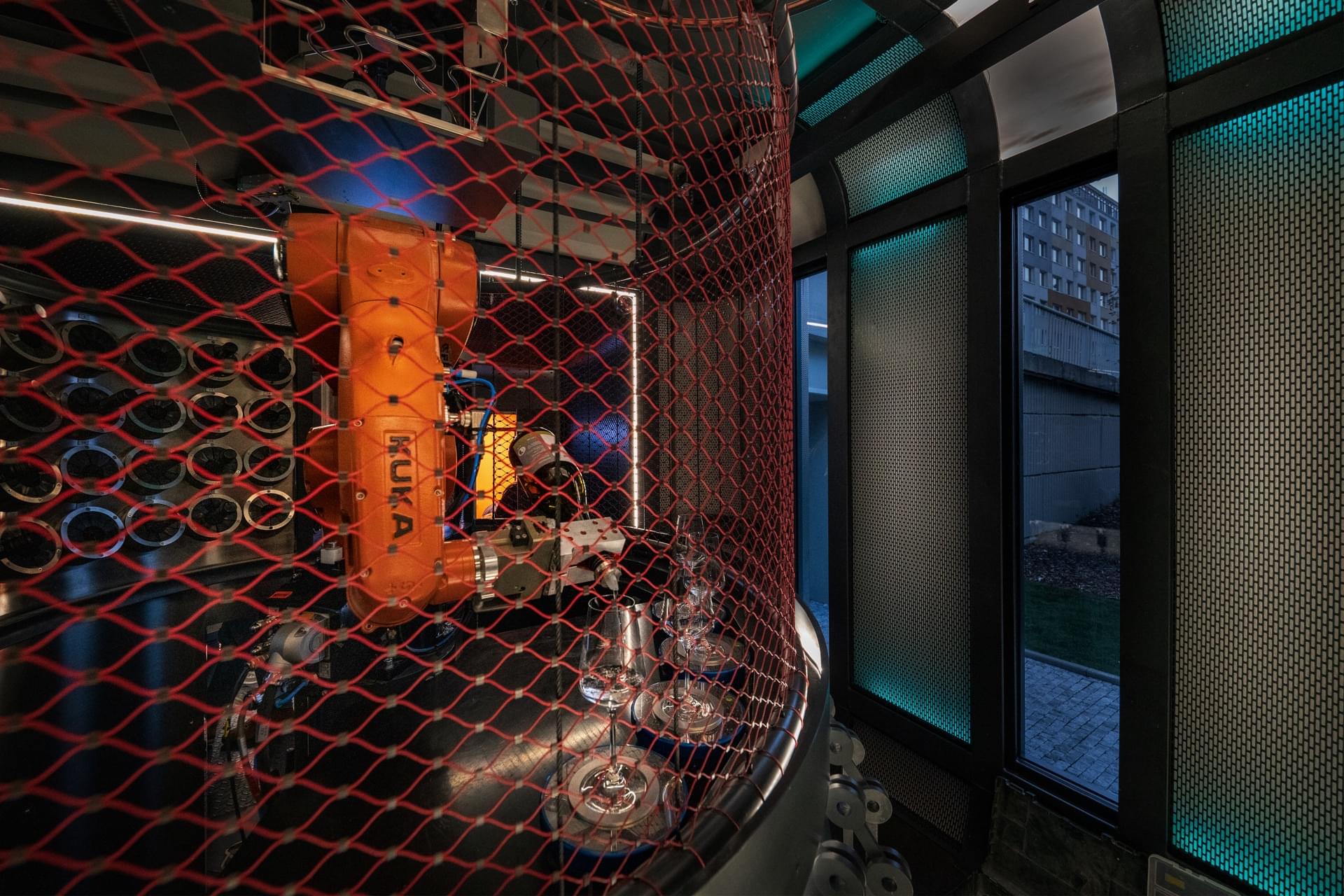 Objekt je rozdelený na robotické pracovisko, vozíkovú dráhu umiestnenú nad sedením pre návštevníkov a priestor s projekciou, kde sa premietajú ukážky zo sveta technológií.