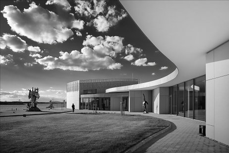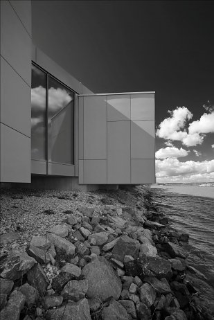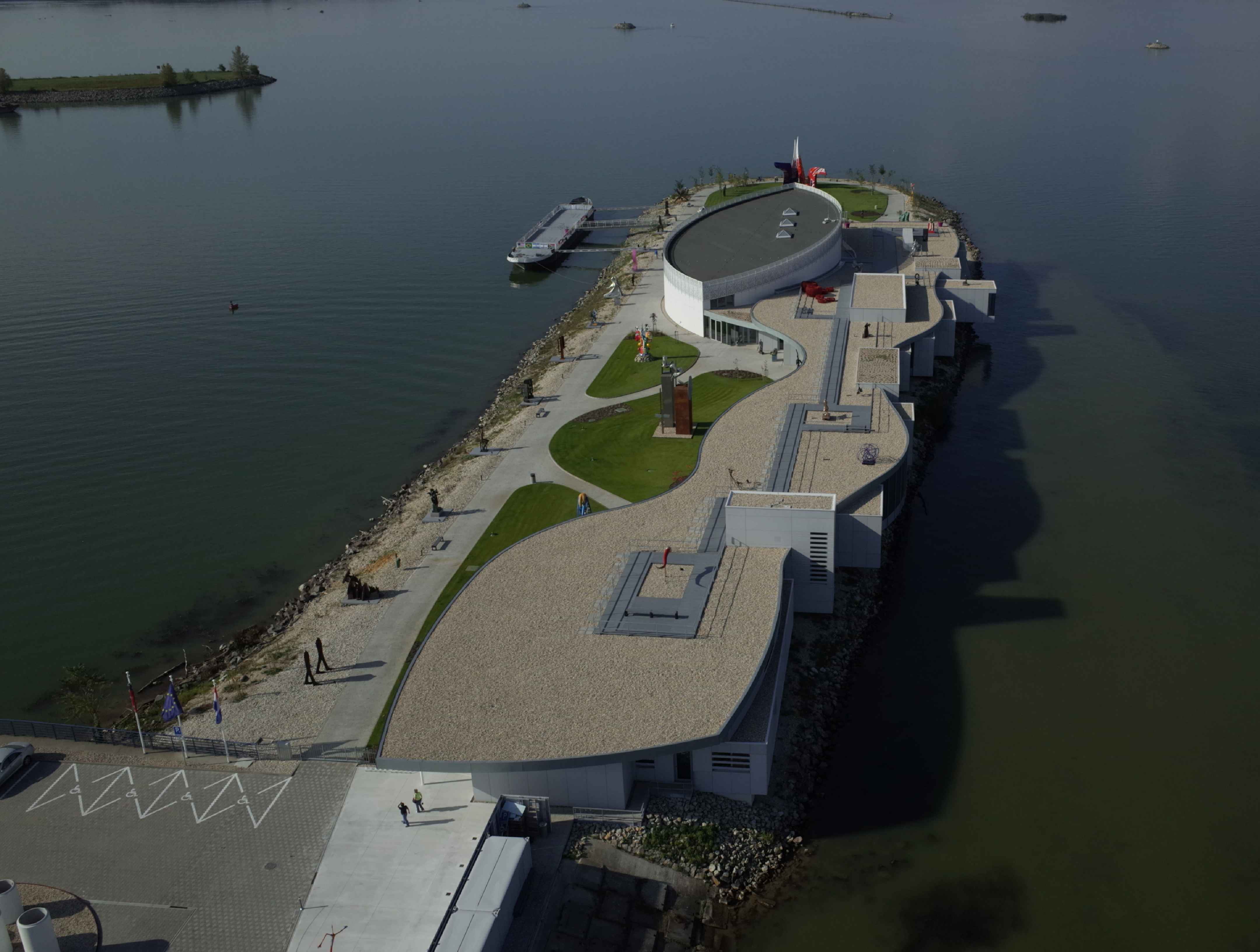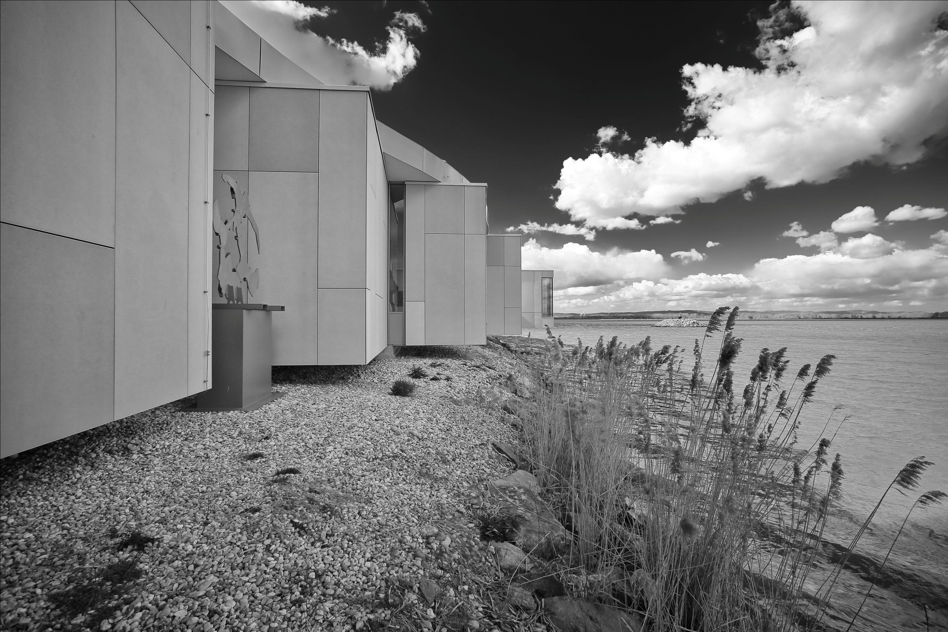 S ohľadom na minimálny záber zelených plôch a maximálny kontakt s vodou sa stavalo v brehovej zóne, nad brehmi, ba dokonca nad vodou. Krajina pochôdznej plochej strechy, ktorá je rozšírením sochárskeho parku, je založená na harmonickej kompozícii jednoduchých geometrických objemov schodiskovej veže a vysokých výstavných sál v kontraste s krivkou strechy. Jednoduchá, až asketická paleta materiálov a bezprostredný kontakt s majestátnou okolitou krajinou umocňujú zážitok z architektúry prepojenej s prírodou.