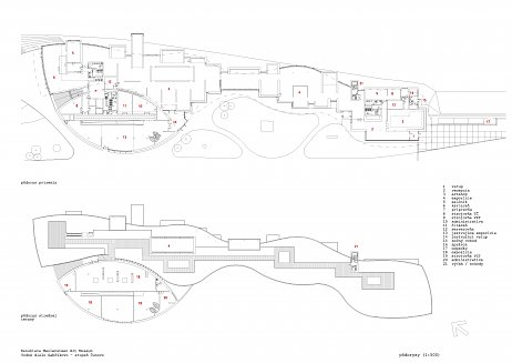Symbolom novej časti sa stala jemne sa vlniaca krivka novej strechy, pod ktorou voľne usporiadané výstavné pavilóny evokujú premenlivú krajinu riečneho dna; introspektívne intímne sály sa striedajú s otvorenými flexibilnými priestormi, presklené pásy medzi uzatvorenými priestormi otvárajú priehľady na vodnú hladinu alebo sochársky park. Symbolom novej časti sa stala jemne sa vlniaca krivka novej strechy, pod ktorou voľne usporiadané výstavné pavilóny evokujú premenlivú krajinu riečneho dna; introspektívne intímne sály sa striedajú s otvorenými flexibilnými priestormi, presklené pásy medzi uzatvorenými priestormi otvárajú priehľady na vodnú hladinu alebo sochársky park.