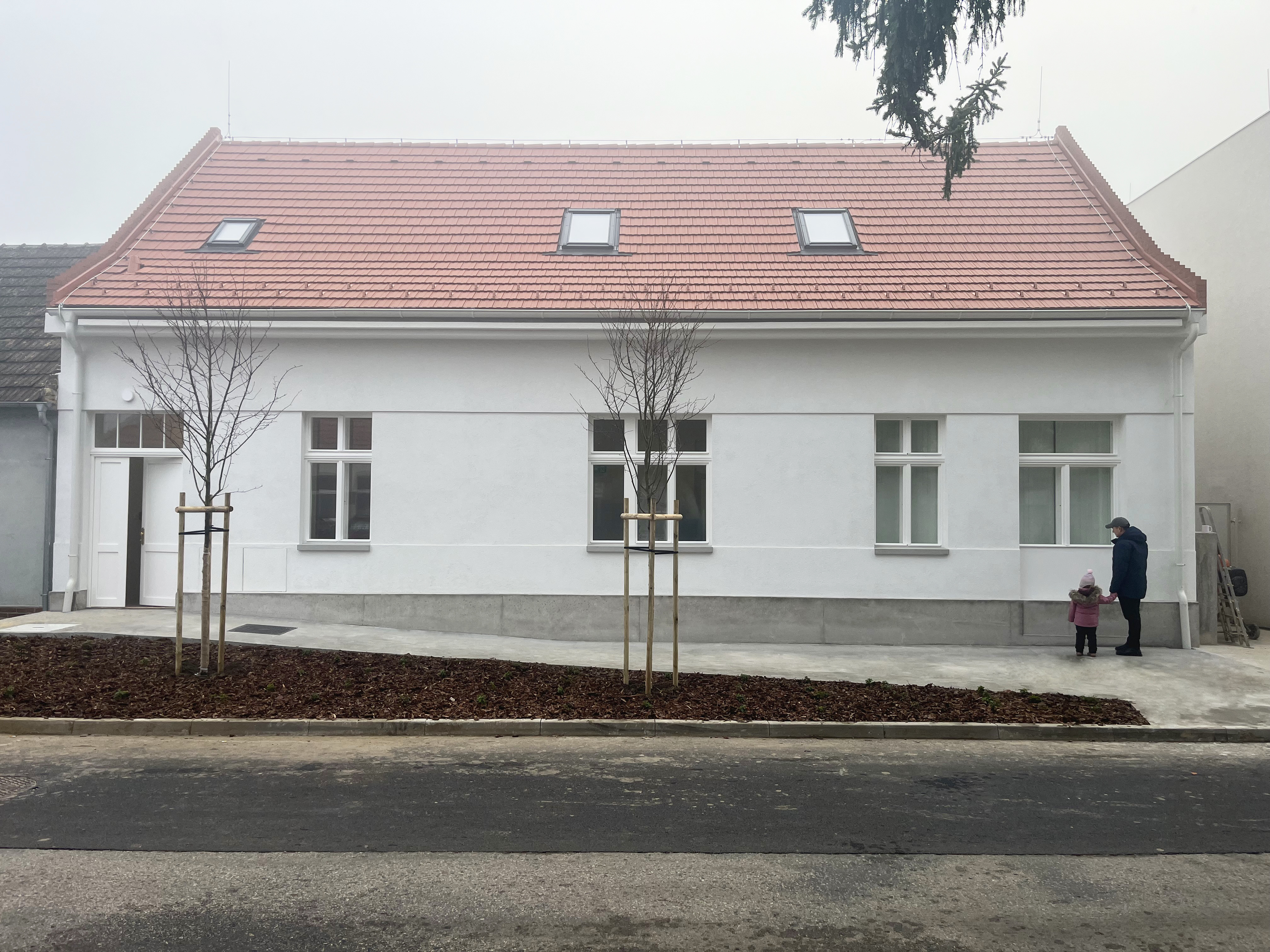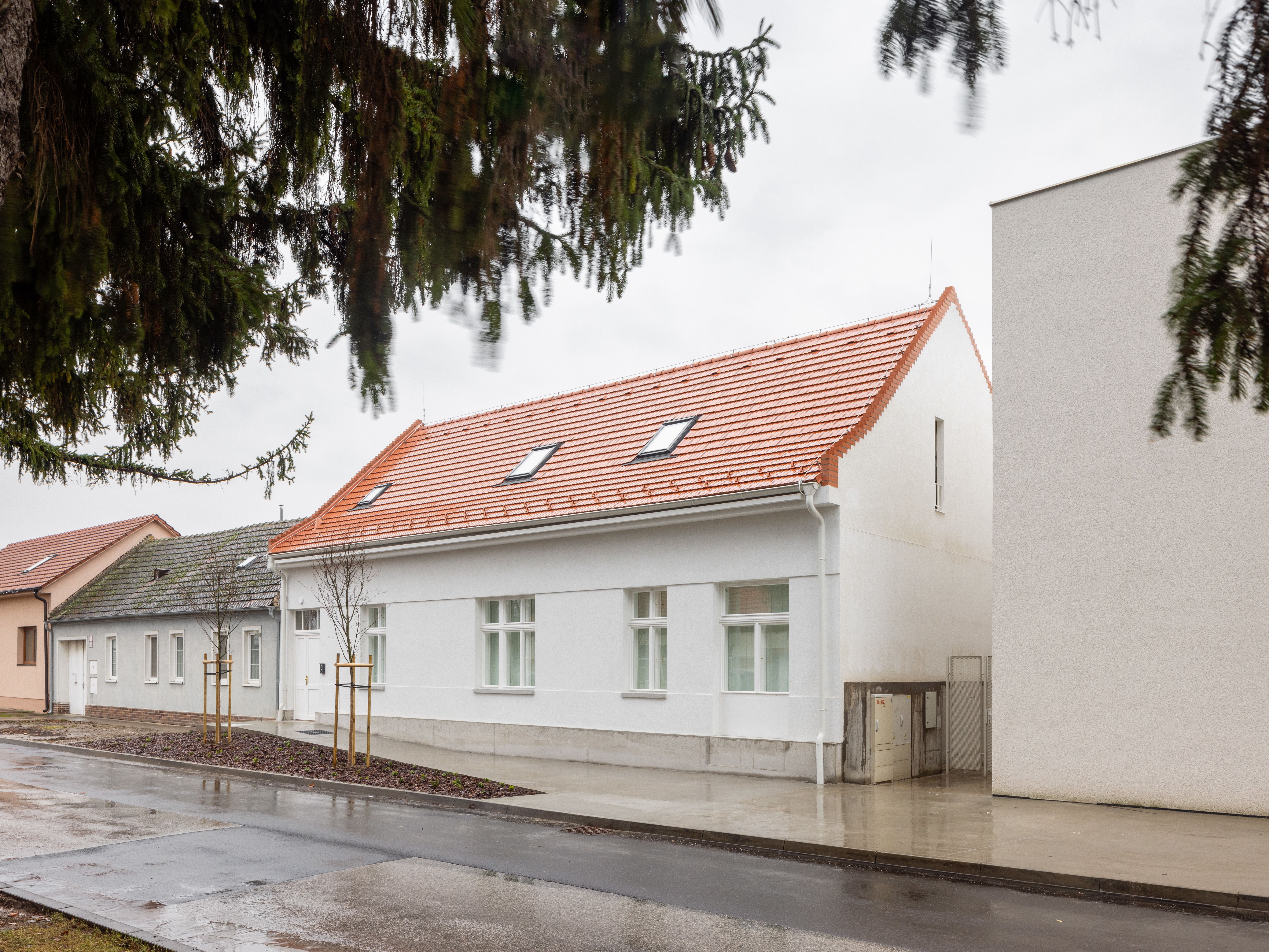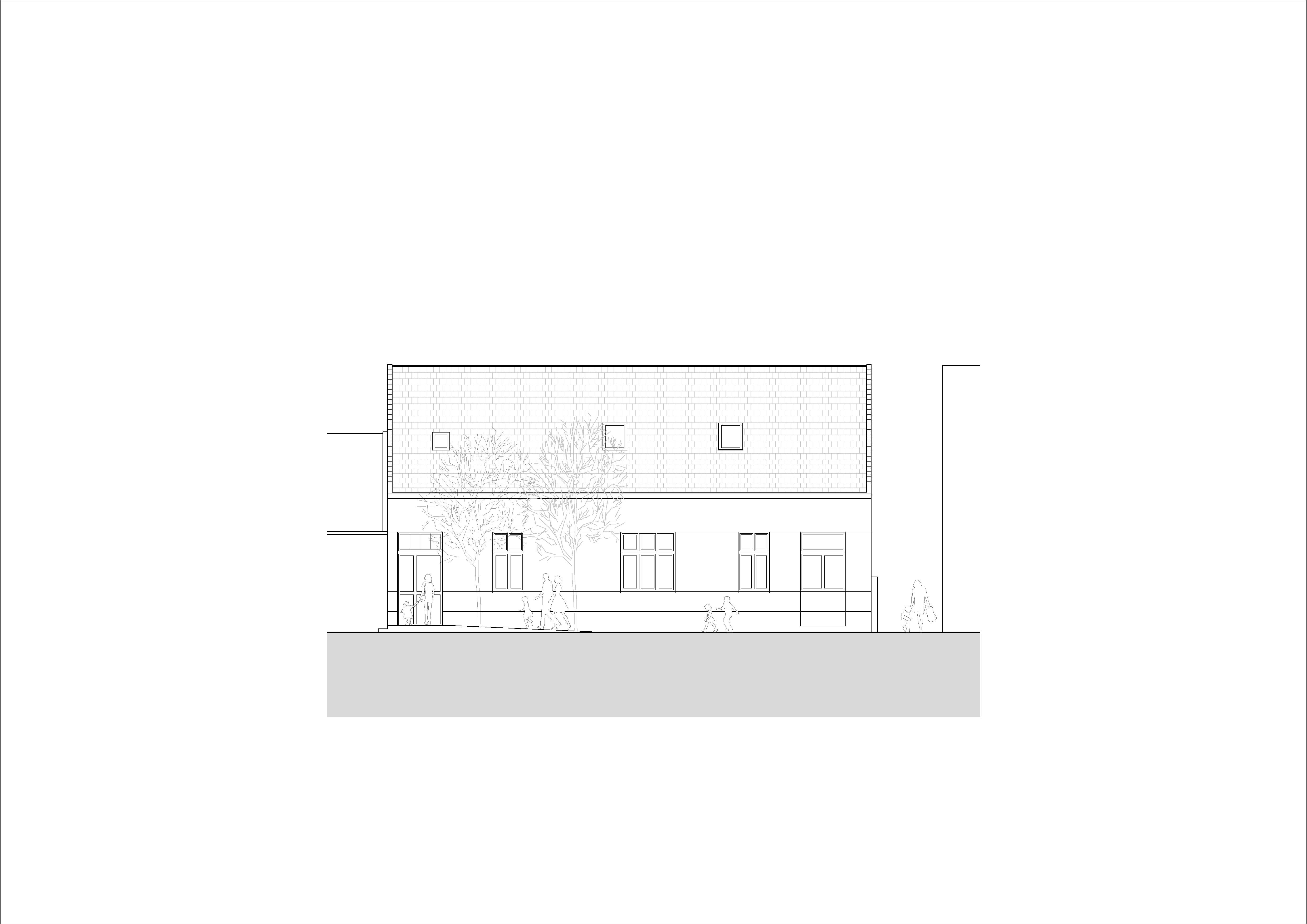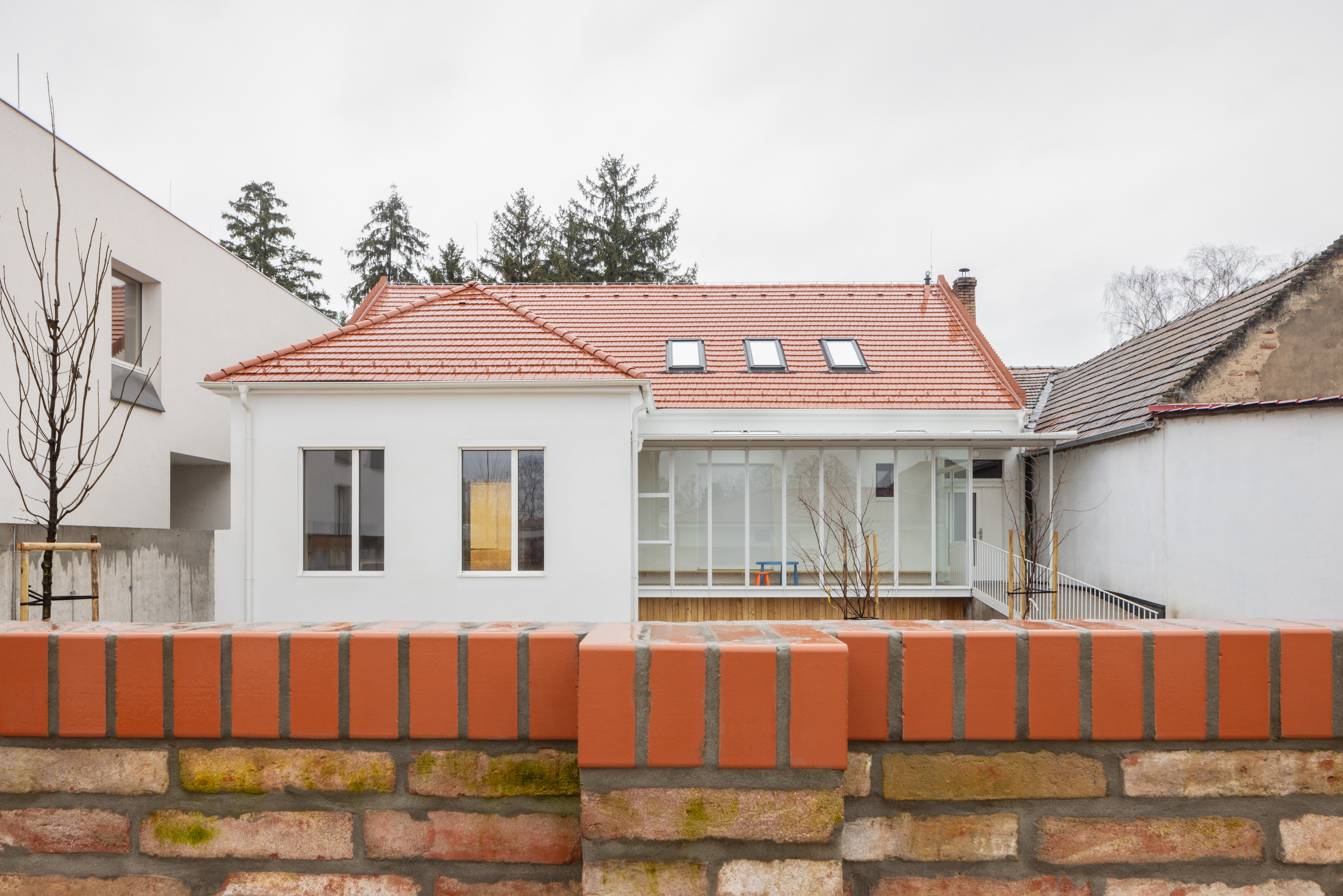 Rodinný dom, napriek úplnej zmene svojej funkcie, nezasiahli viac-menej žiadne radikálne stavebno-konštrukčné zásahy, ktoré by menili jeho charakteristické znaky. Architekti ho síce zbavili menšej prístavby smerom do záhrady a pribudla tam zasklená veranda, ale členenie priečelí a dokonca aj priestorový program zostali takmer v autentickom stave. Drevené okná sú presné repliky, vnútorné drevené okenice sú repasované, zachovaná zostala aj priechodnosť miestností, keďže tento dispozičný systém korešpondoval aj s prevádzkou jaslí. Na uličnej fasáde ubudli dvere do obchodu a nahradilo ich okno, ale ich miesto pripomína jemný vlys v betónovom sokli. Detail, ktorý si okoloidúci sotva všimne, a ak predsa, tak isto nabáda k zvedavosti. Nečakaná drobnosť ako pridaná hodnota.