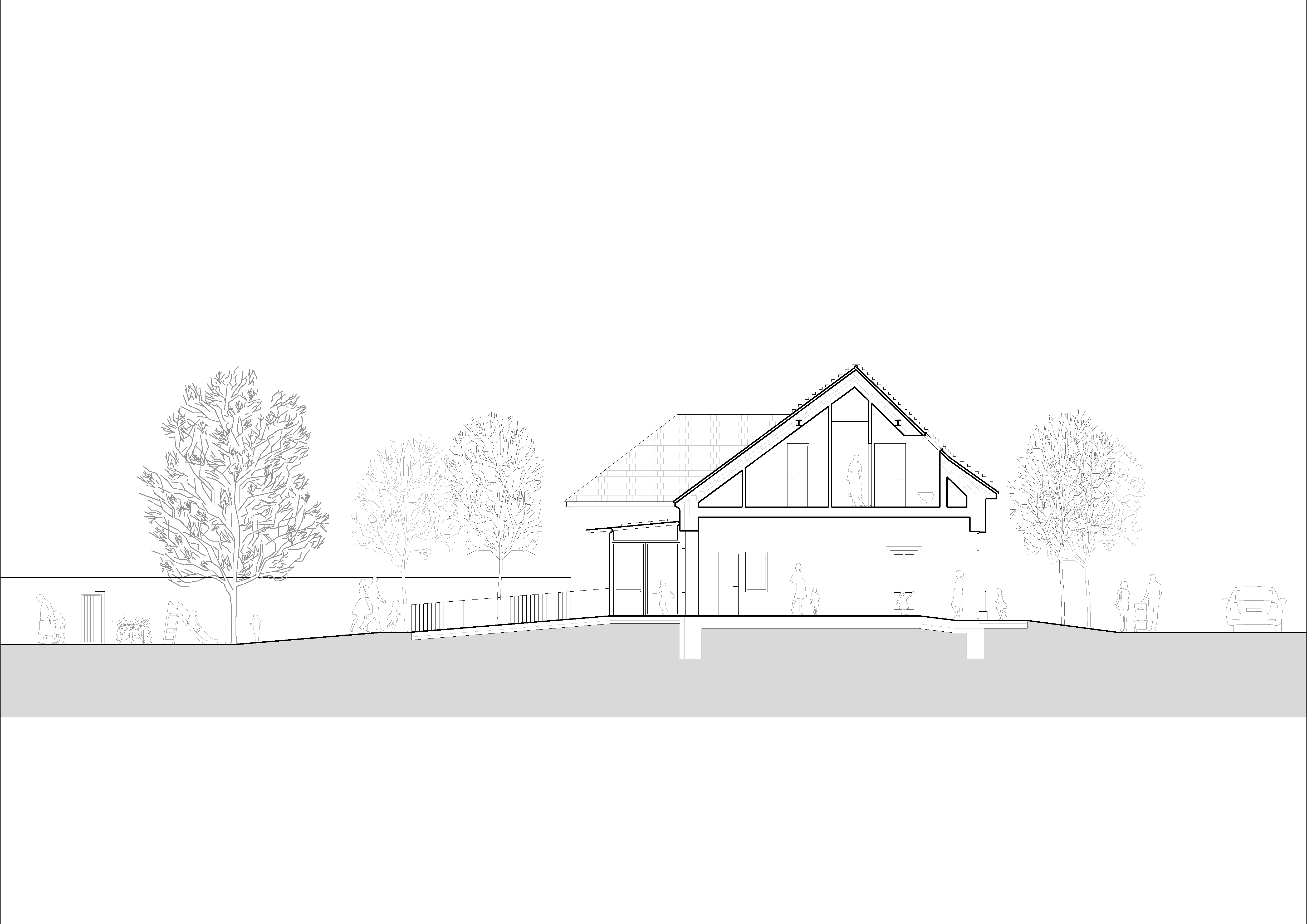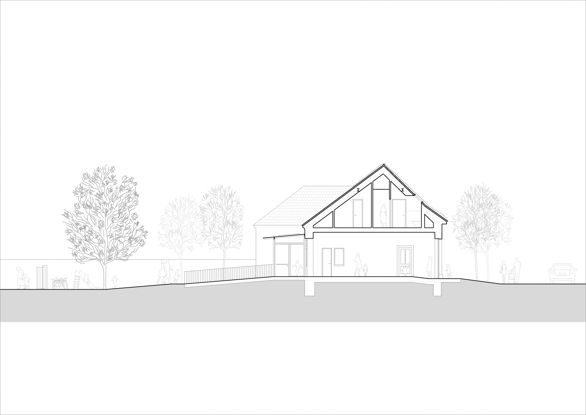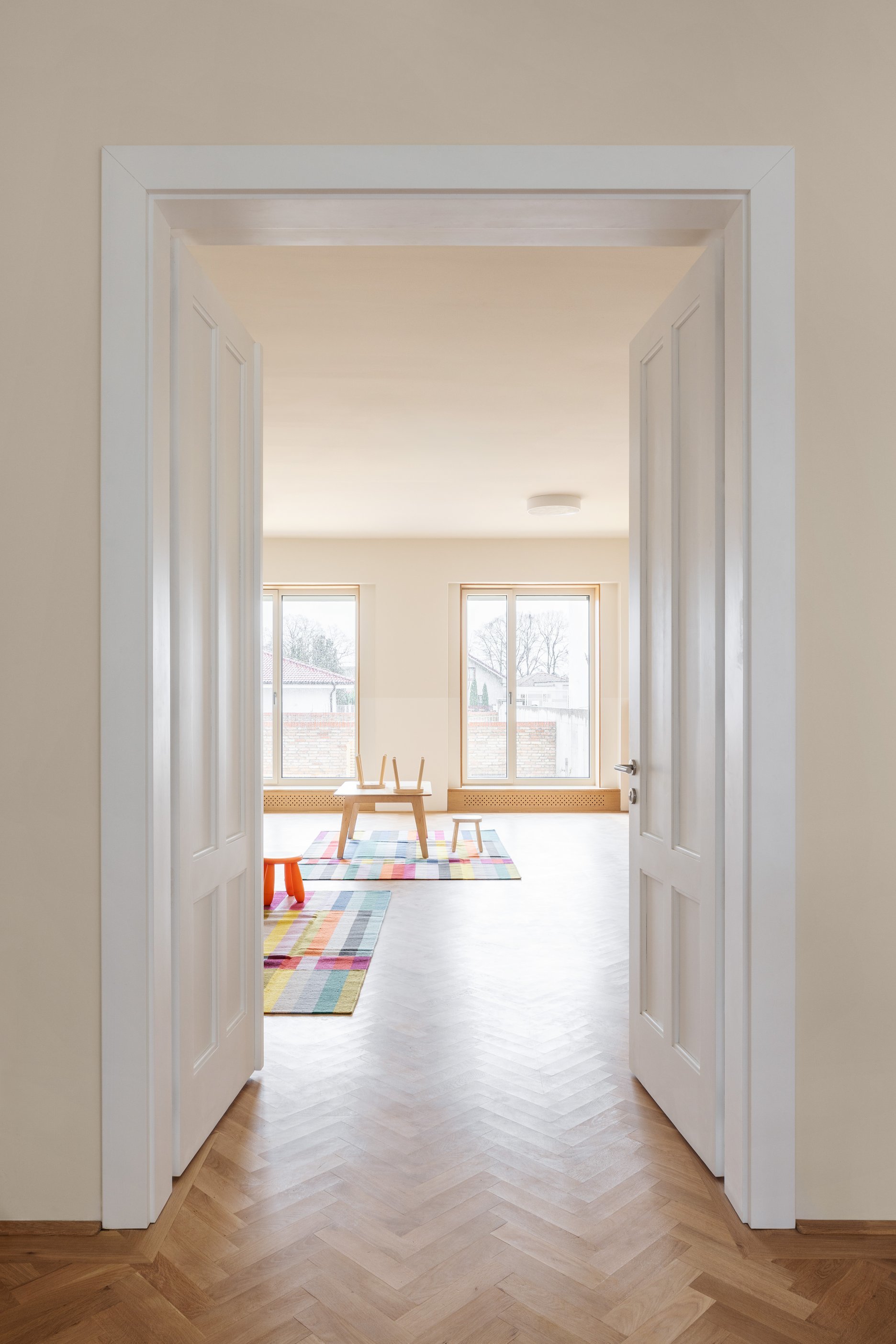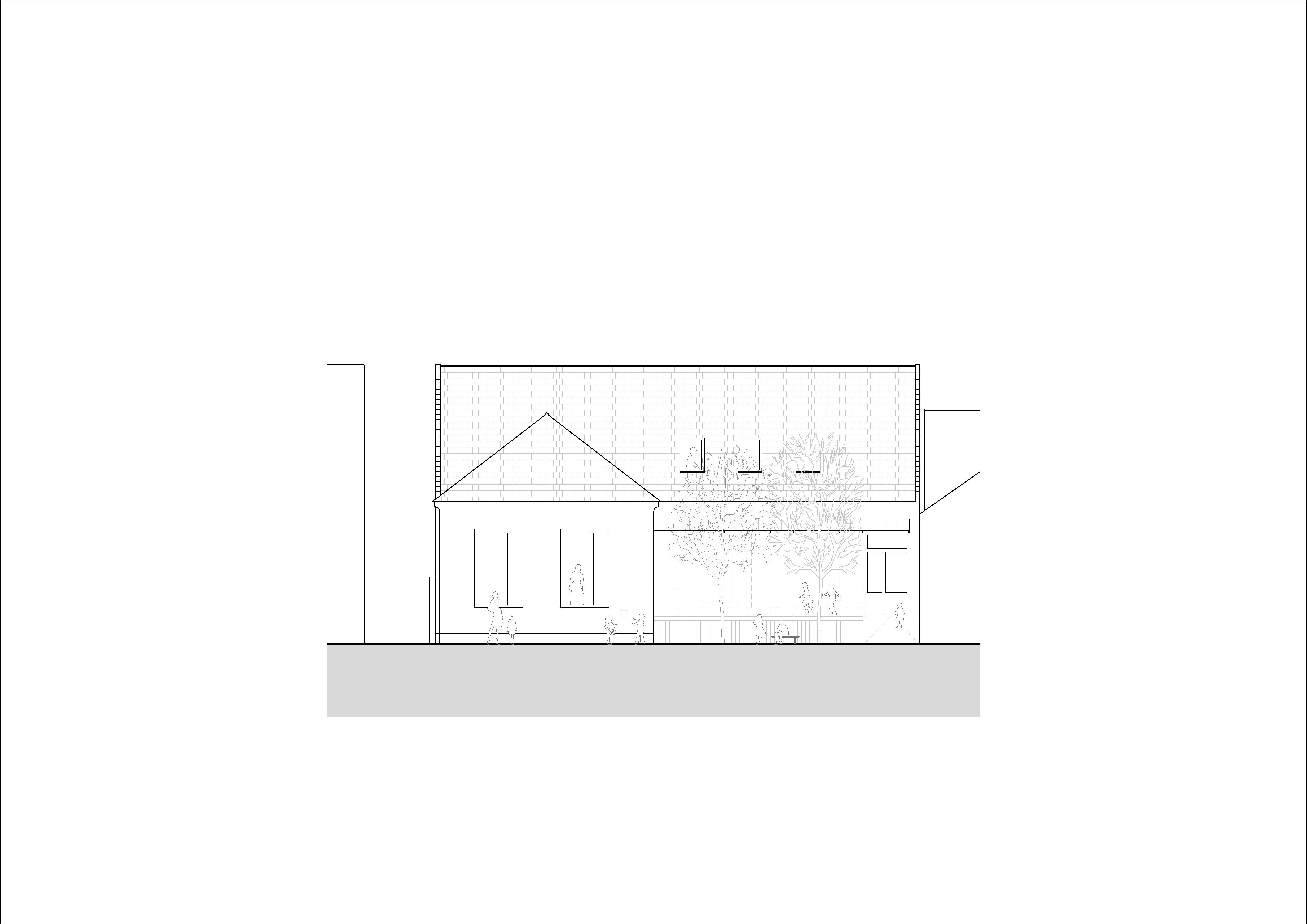 Rodinný dom, napriek úplnej zmene svojej funkcie, nezasiahli viac-menej žiadne radikálne stavebno-konštrukčné zásahy, ktoré by menili jeho charakteristické znaky. Architekti ho síce zbavili menšej prístavby smerom do záhrady a pribudla tam zasklená veranda, ale členenie priečelí a dokonca aj priestorový program zostali takmer v autentickom stave. Drevené okná sú presné repliky, vnútorné drevené okenice sú repasované, zachovaná zostala aj priechodnosť miestností, keďže tento dispozičný systém korešpondoval aj s prevádzkou jaslí. Na uličnej fasáde ubudli dvere do obchodu a nahradilo ich okno, ale ich miesto pripomína jemný vlys v betónovom sokli. Detail, ktorý si okoloidúci sotva všimne, a ak predsa, tak isto nabáda k zvedavosti. Nečakaná drobnosť ako pridaná hodnota.