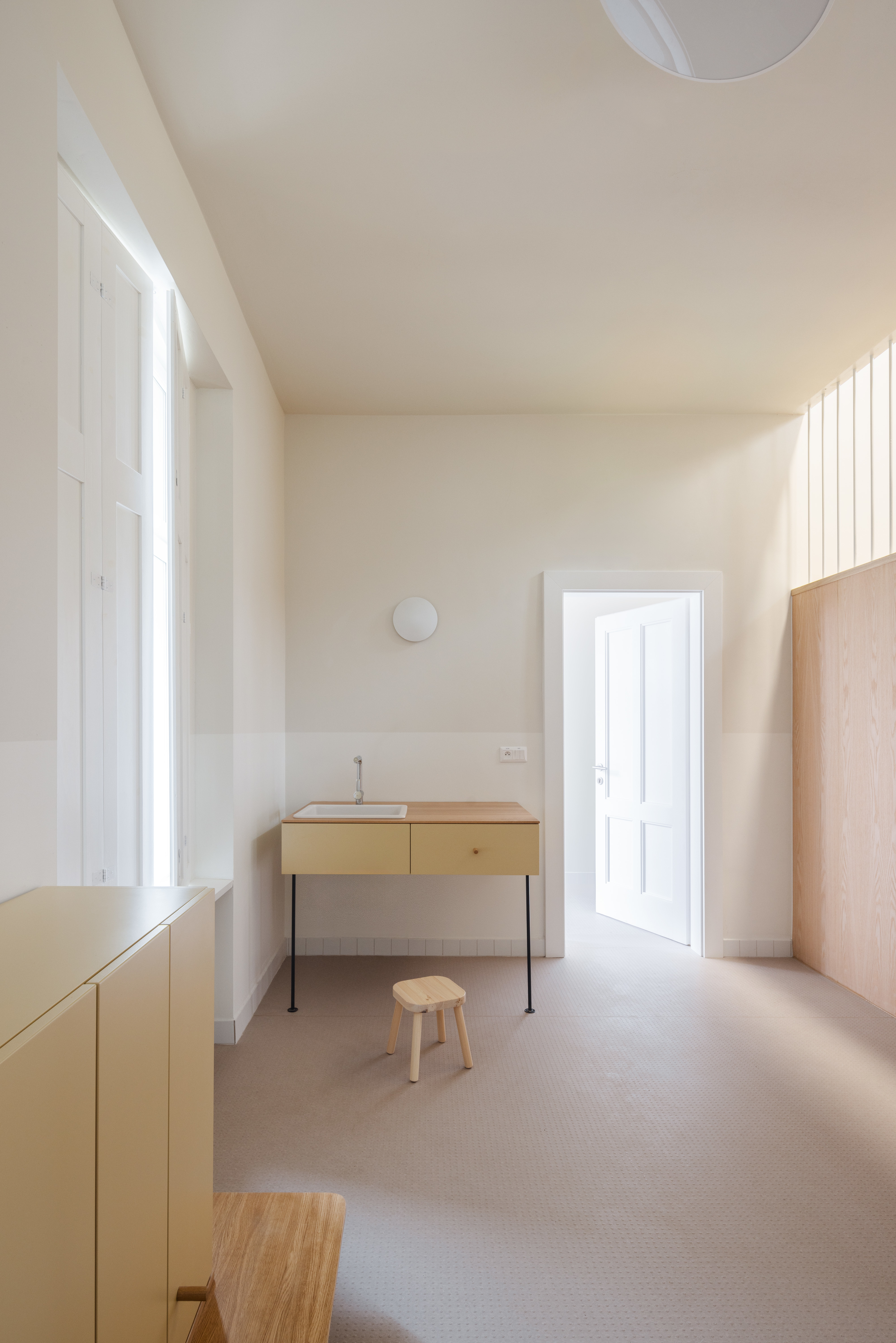 Jasle v Leopoldove sú rozhodne miestom, ktoré sa oplatí dôkladne preskúmať. Stačí vojsť a každá matka zaplesá, takto má vyzerať kvalitné predškolské zariadenie. Ale čo je azda ešte dôležitejšie než úhľadné povrchy a materiály, starostlivo zvolené farebné odtiene a logická prevádzková schéma, je to, čo sa týmto stavebným zásahom udialo v úplnom centre Leopoldova, a tiež, do akého objektu sa vlastne jasle dostali a akou metódou sa pristupovalo k jeho adaptácii. A nesmieme zabudnúť na ďalšiu zásadnú záležitosť - rozhodnutie, ktoré viedlo k zriadeniu jaslí práve v tomto dome a čo mu predchádzalo.