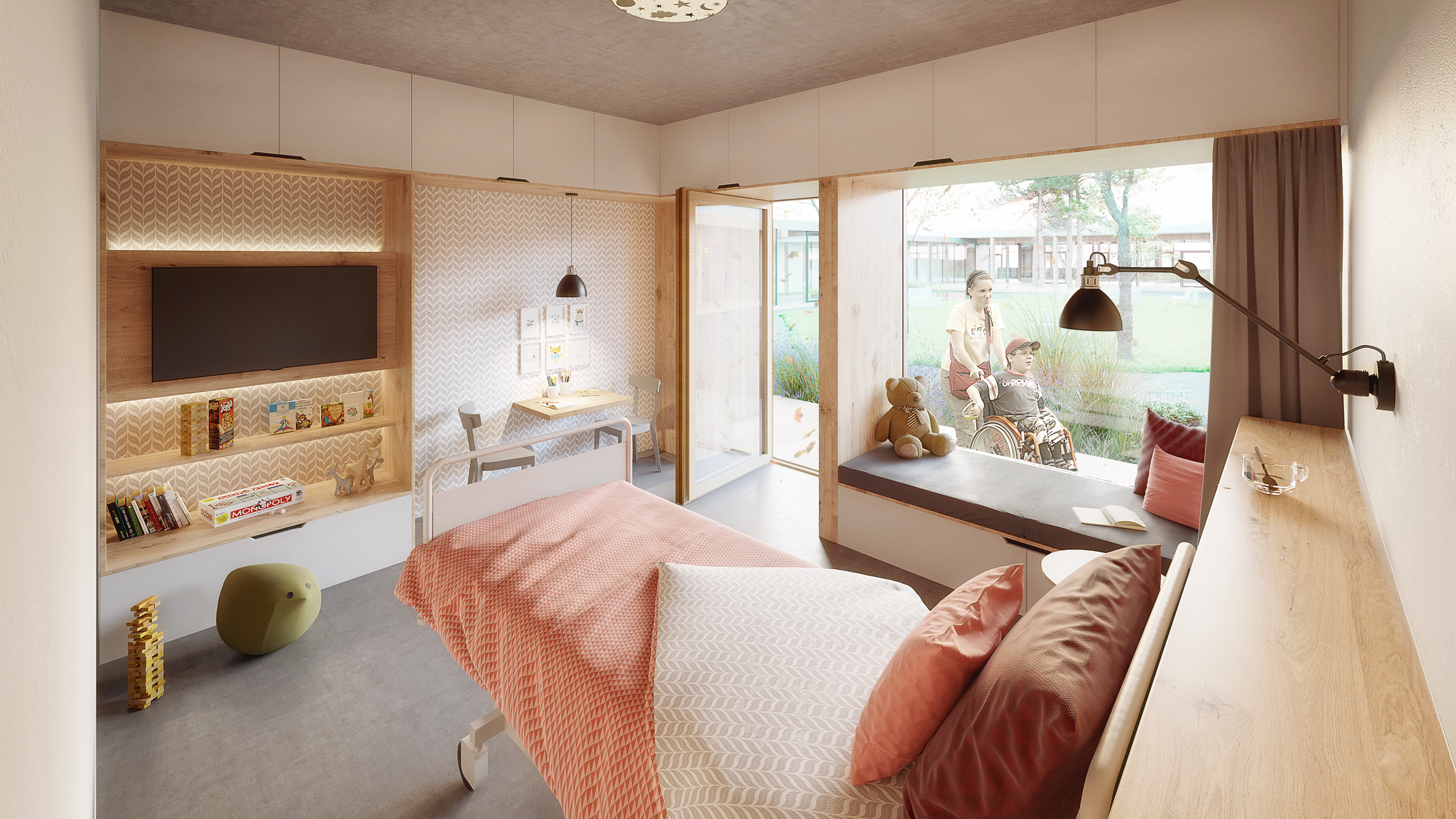 3/ Vybudování pobytového křídla s pěti pokoji pro děti a pěti pokoji pro rodiče umožní