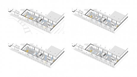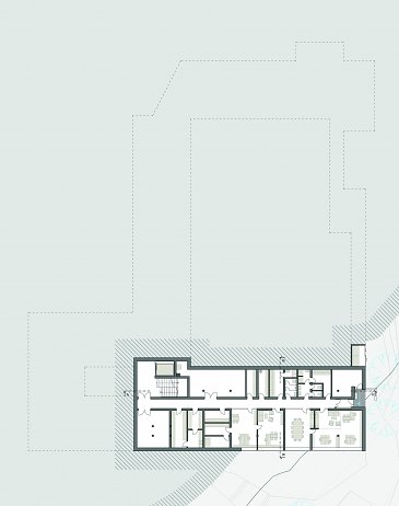 - Administrativa na nároží, které je nad terénem, budou umístěny kanceláře a provozní
