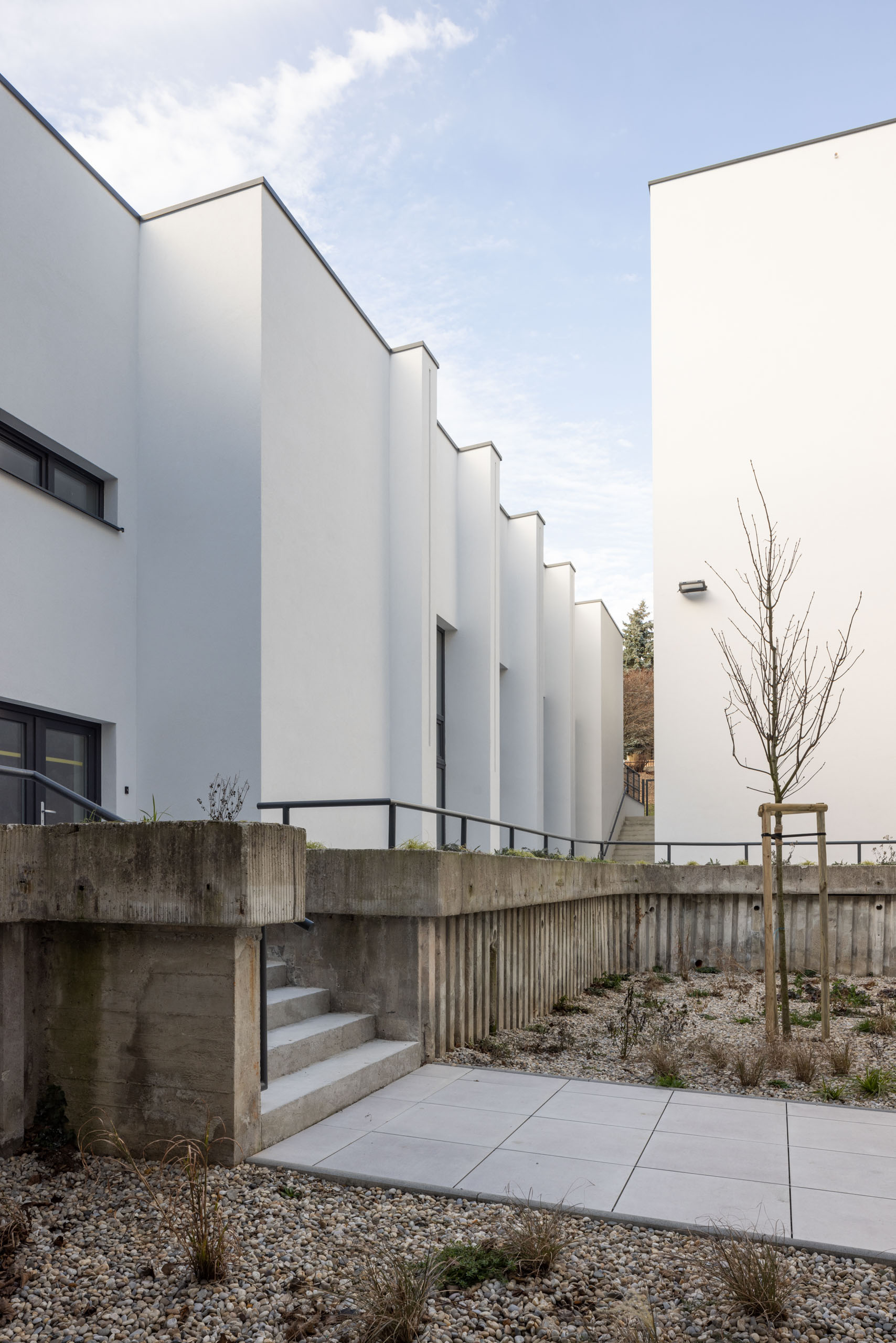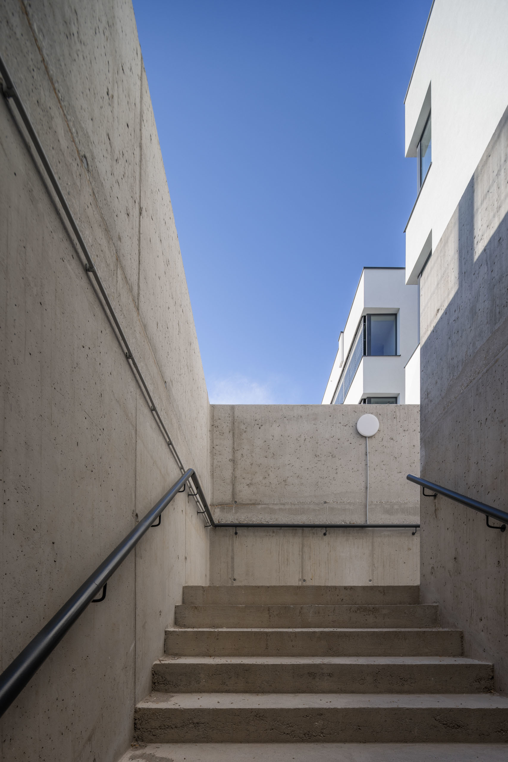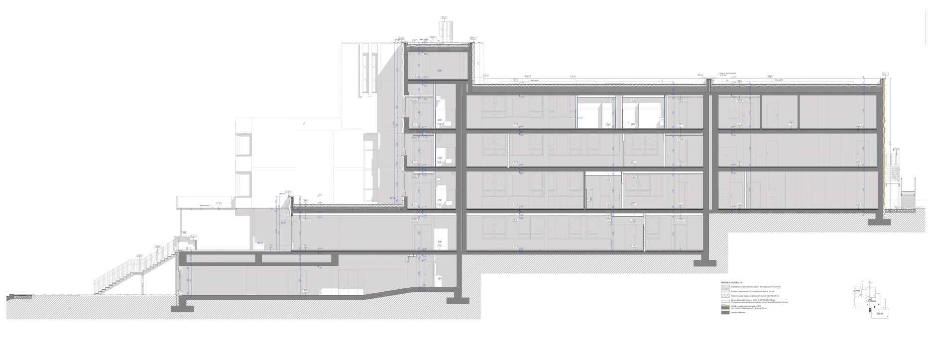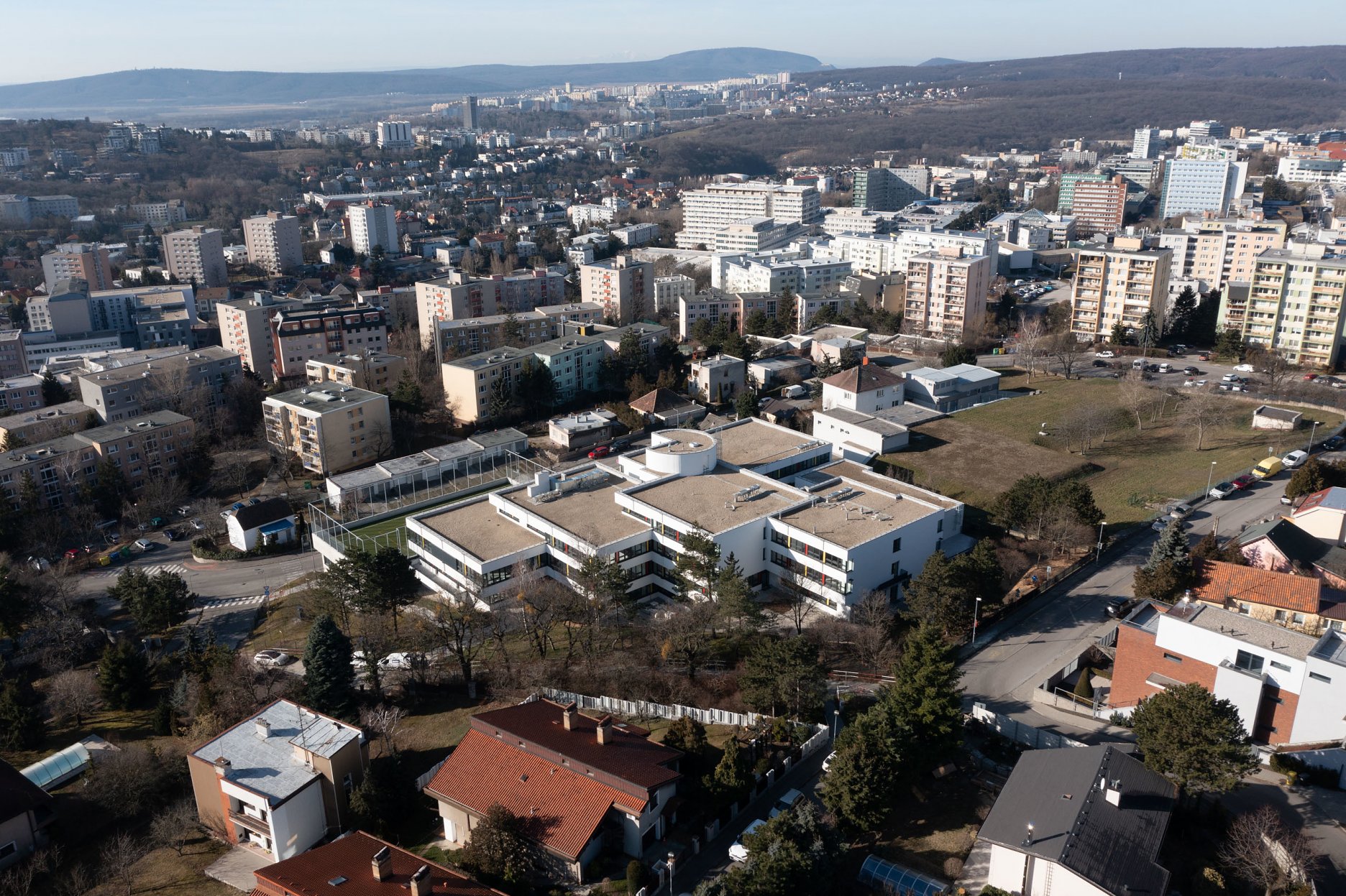 Architekti zachovali pôvodnú skladbu blokov, stupňovito osadených v stúpajúcom teréne. Jasne čitateľný novotvar tvorí telocvična zapustená do terénu, vysunutá až na hranu ulice.