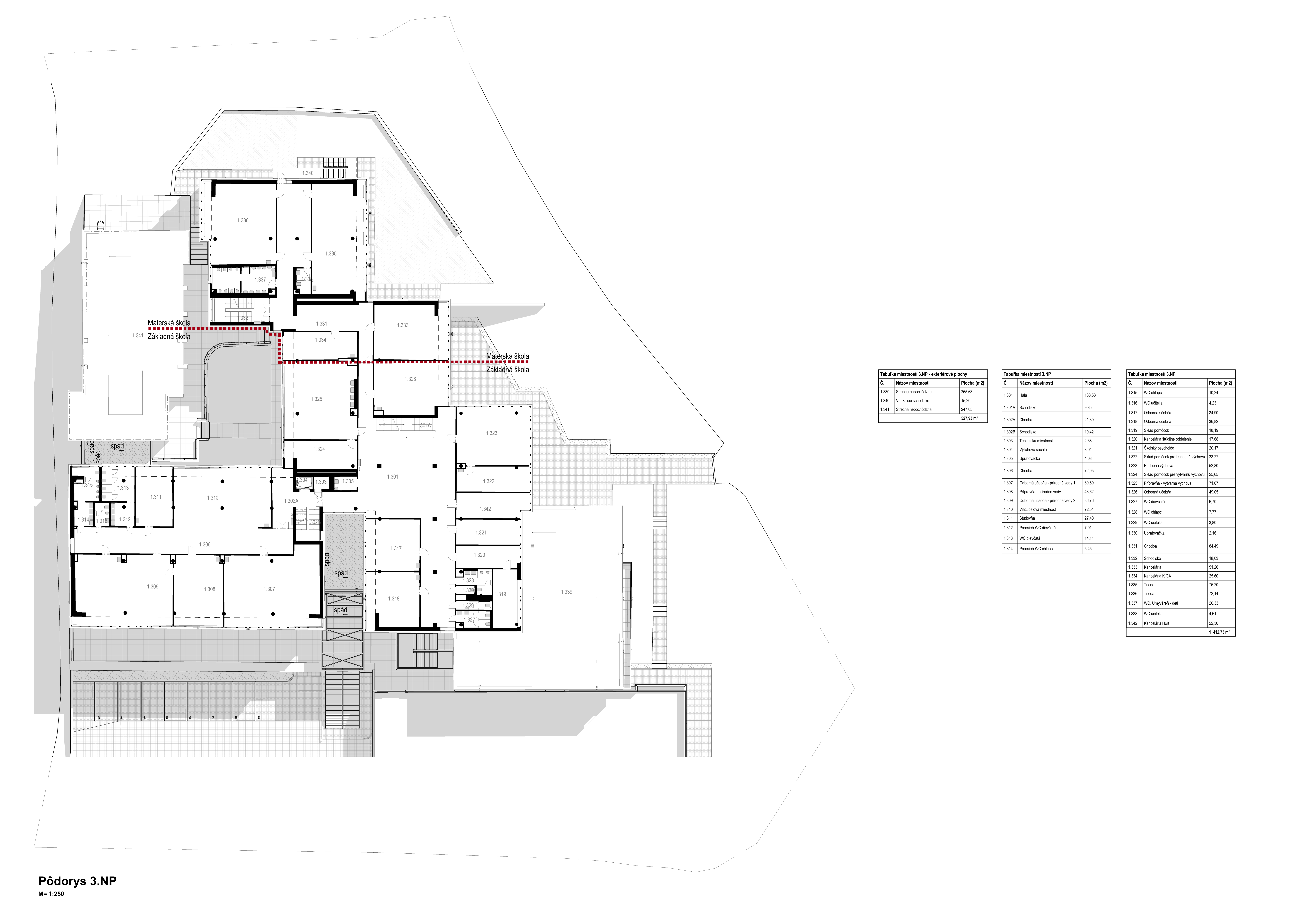 Na 3. NP sú v bloku A, B a C triedy odborného vyučovania a prislúchajúce zázemie. V bloku D a v časti bloku C sú umiestnené triedy pre staršie deti materskej školy.