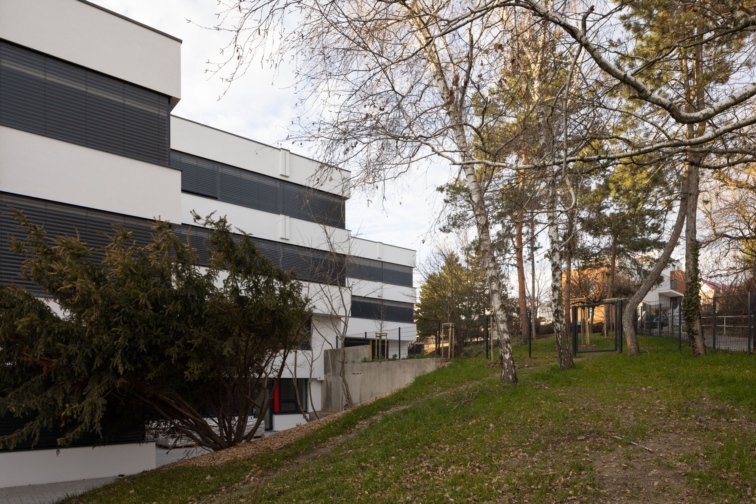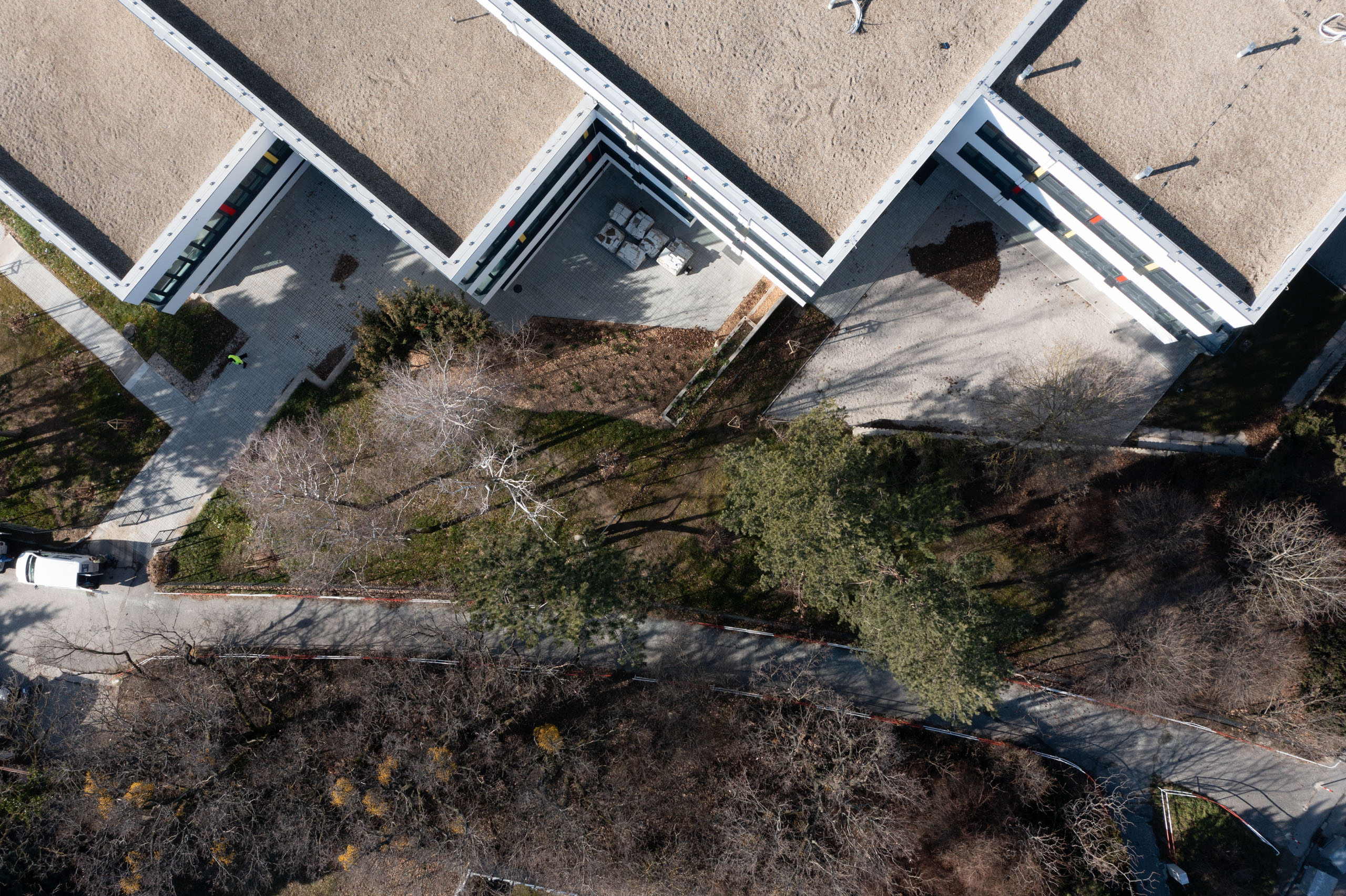 Pôvodne zamýšľanú realizáciu a využitie zelených strešných terás, ktoré mali zároveň slúžiť ako retenčné plochy, bohužiaľ rozpočet projektu nedovolil.