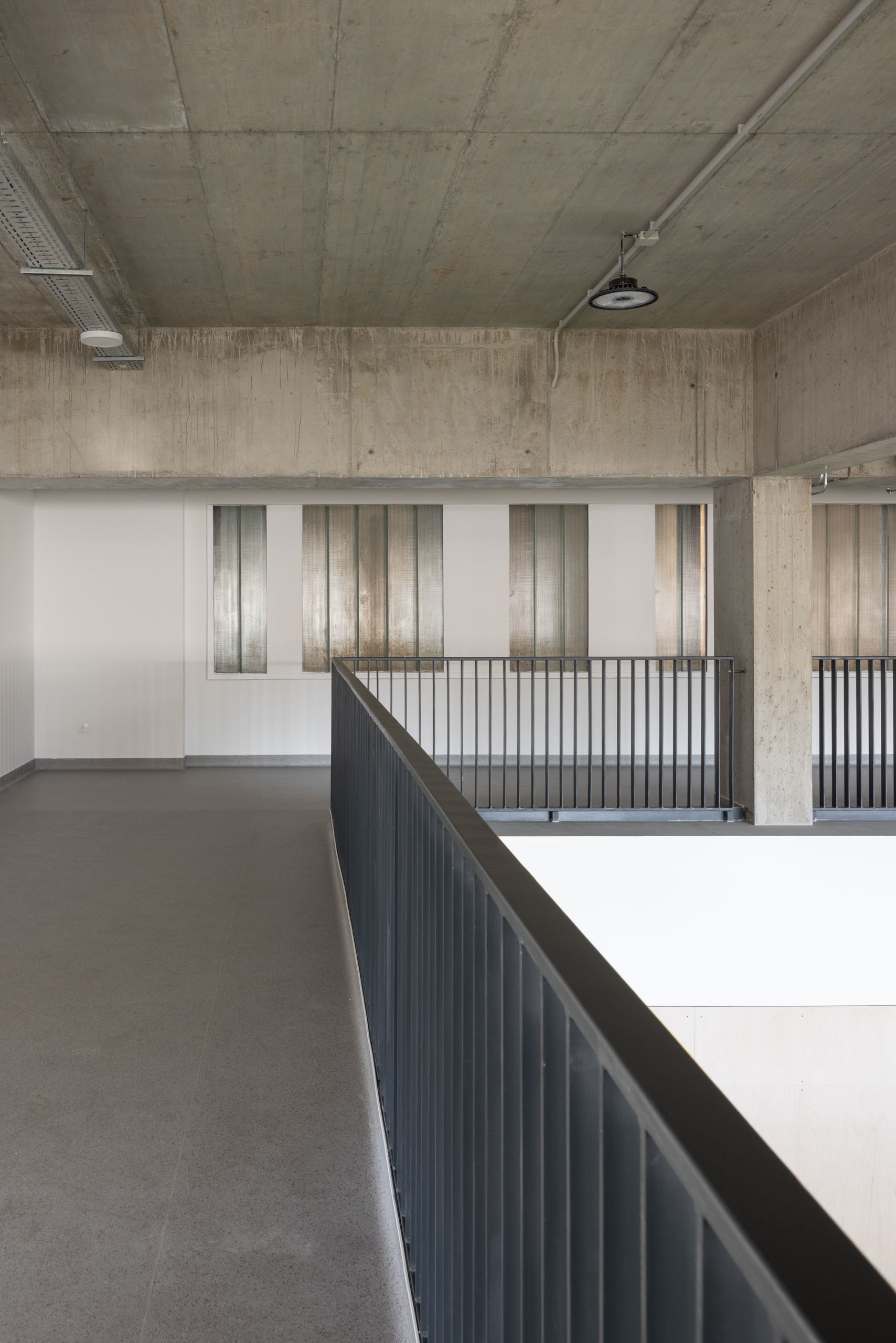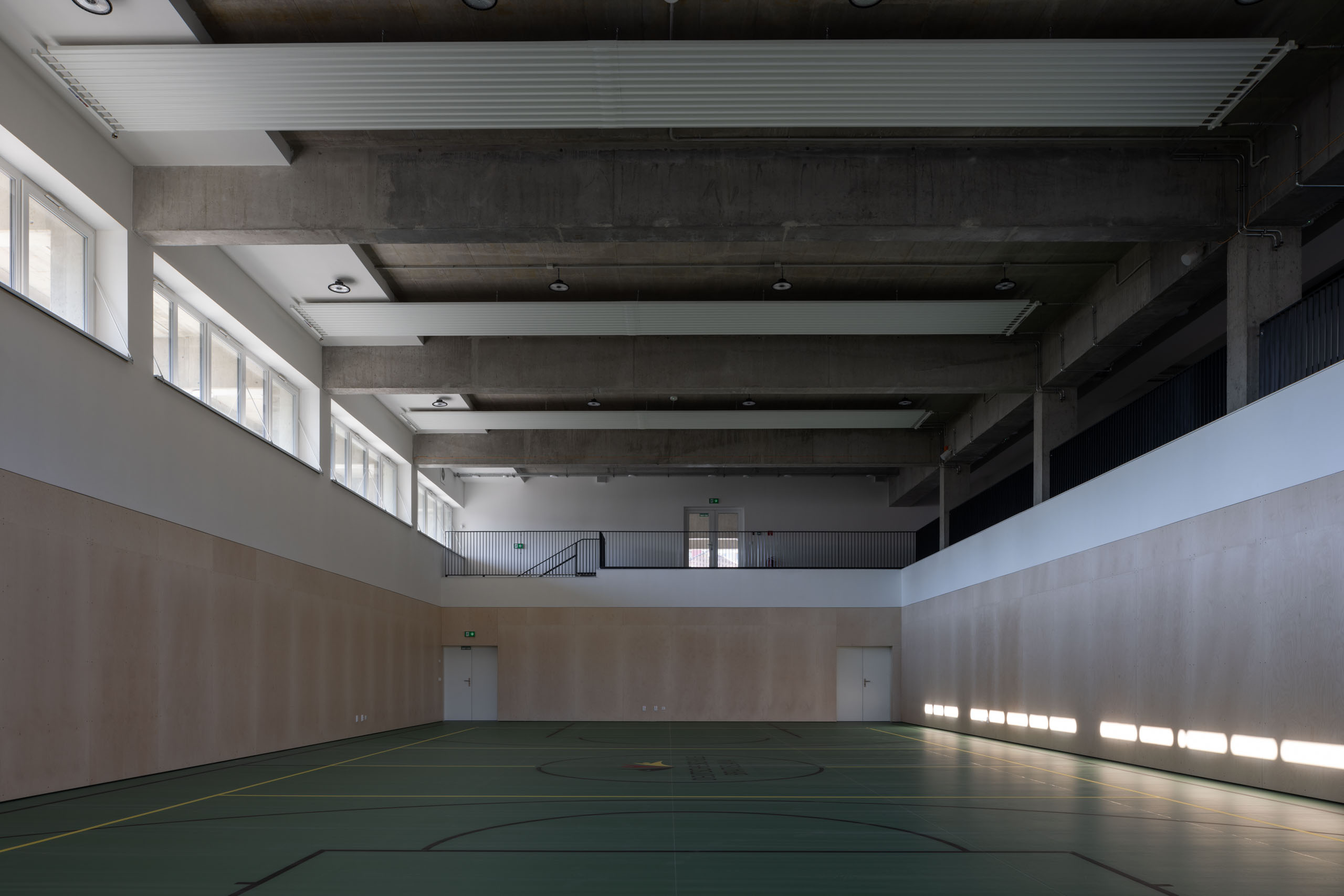 Tam, kde to bolo možné sa architekti snažili eliminovať klasické chodby. Štandardné uzavreté triedy dopĺňajú flexibilné učebne, spoločenské priestory a pobytové zóny, ktoré zodpovedajú systému vzdelávania s dôrazom na vzájomnú interakciu študentov. Zachované dobové materiály ako mramorové obklady dopĺňajú vo vnútorných priestoroch farebne neutrálne povrchy. Pekným detailom je delenie funkčných zón škôlky, školy a gymnázia prostredníctvom rôznych odtieňov sivého linolea. Dôležitým kritériom pri výbere materiálov bola ich trvácnosť a jednoduchá údržba.