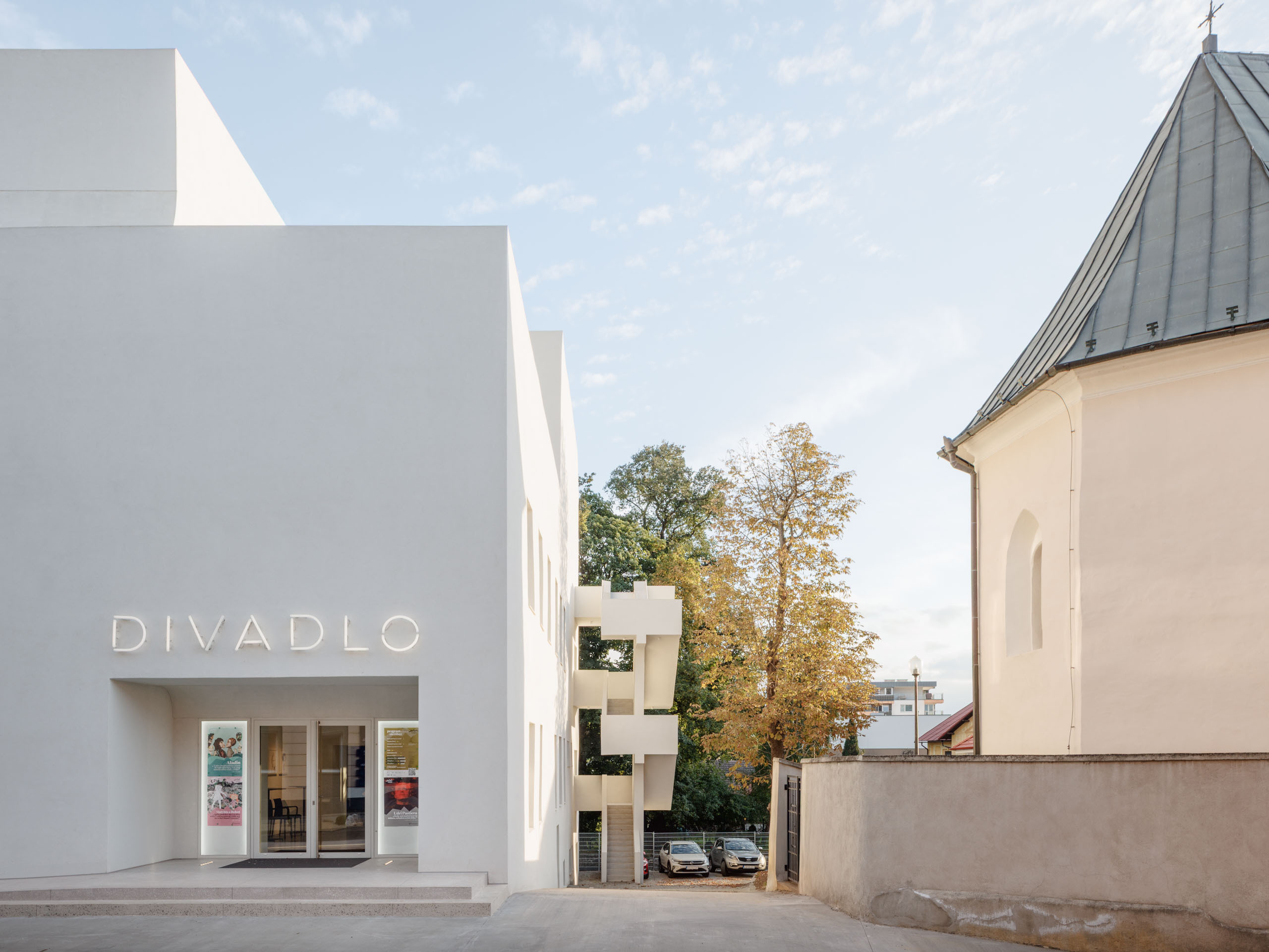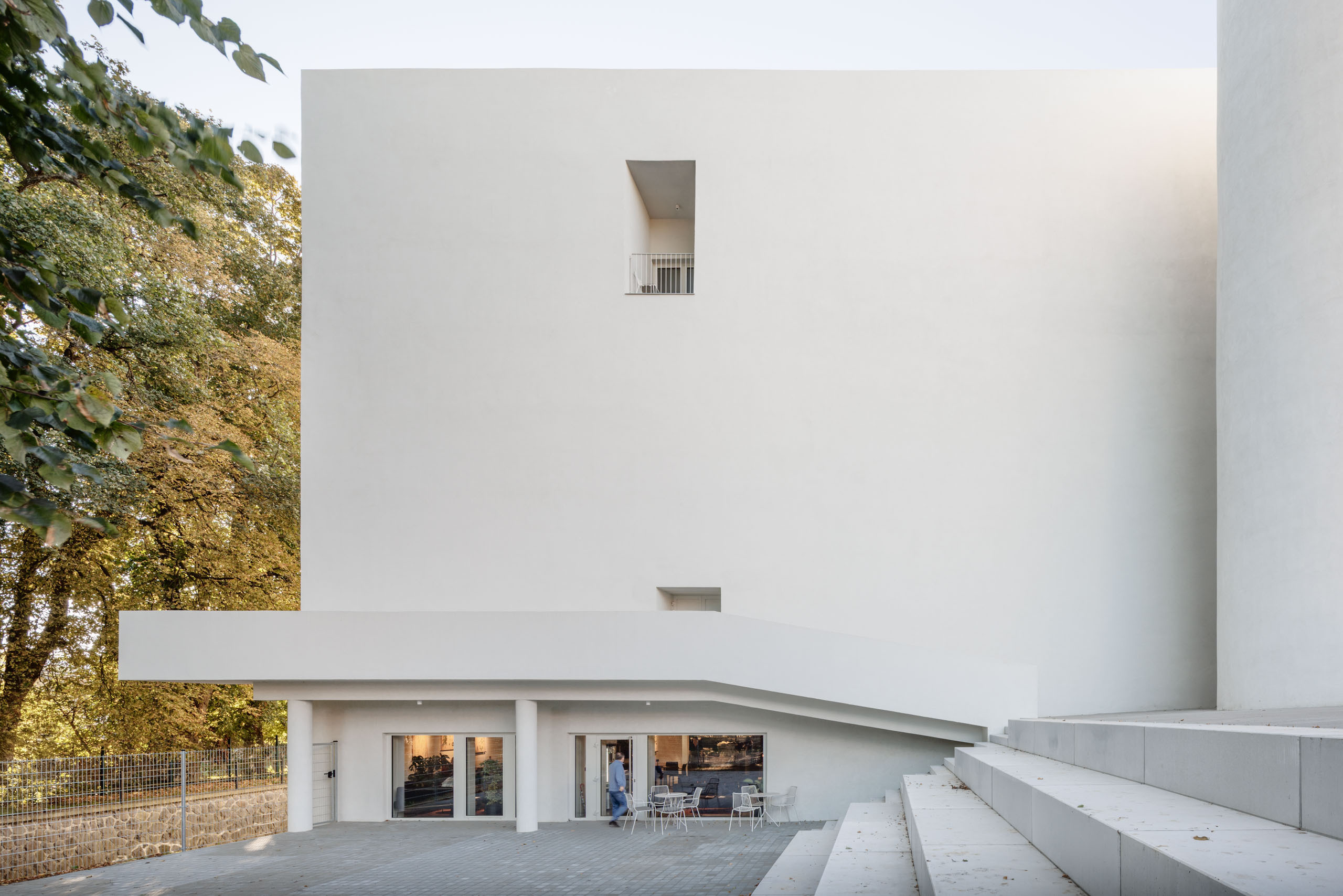 Existujúci objekt svojou mierkou a formou výrazne ovplyvňoval priestorové vzťahy v území. Jednou zo základných stratégií architektonického riešenia bola redukcia jeho objemu s cieľom zmierniť dopad na uličnú zástavbu a na priľahlý kostol.