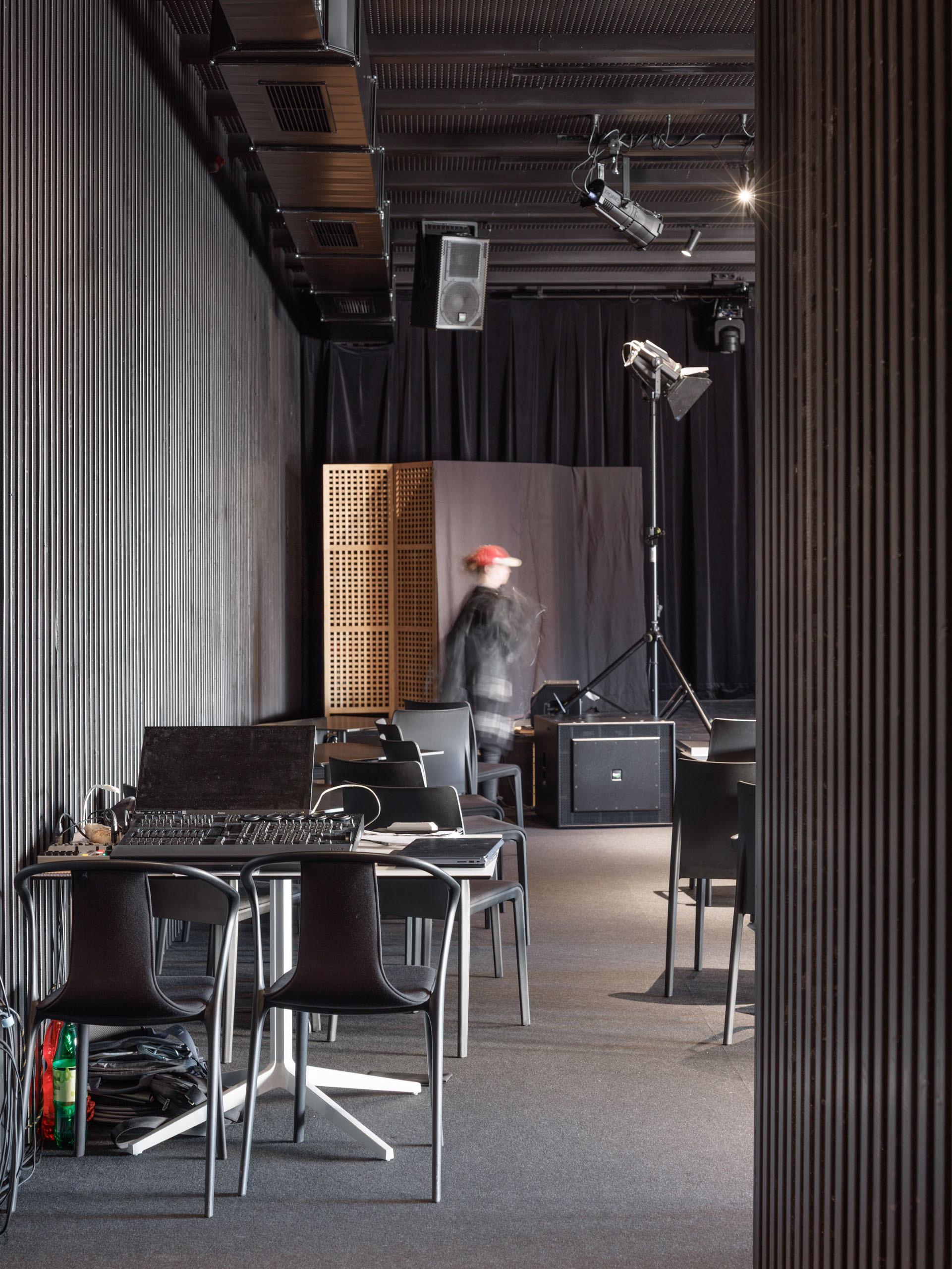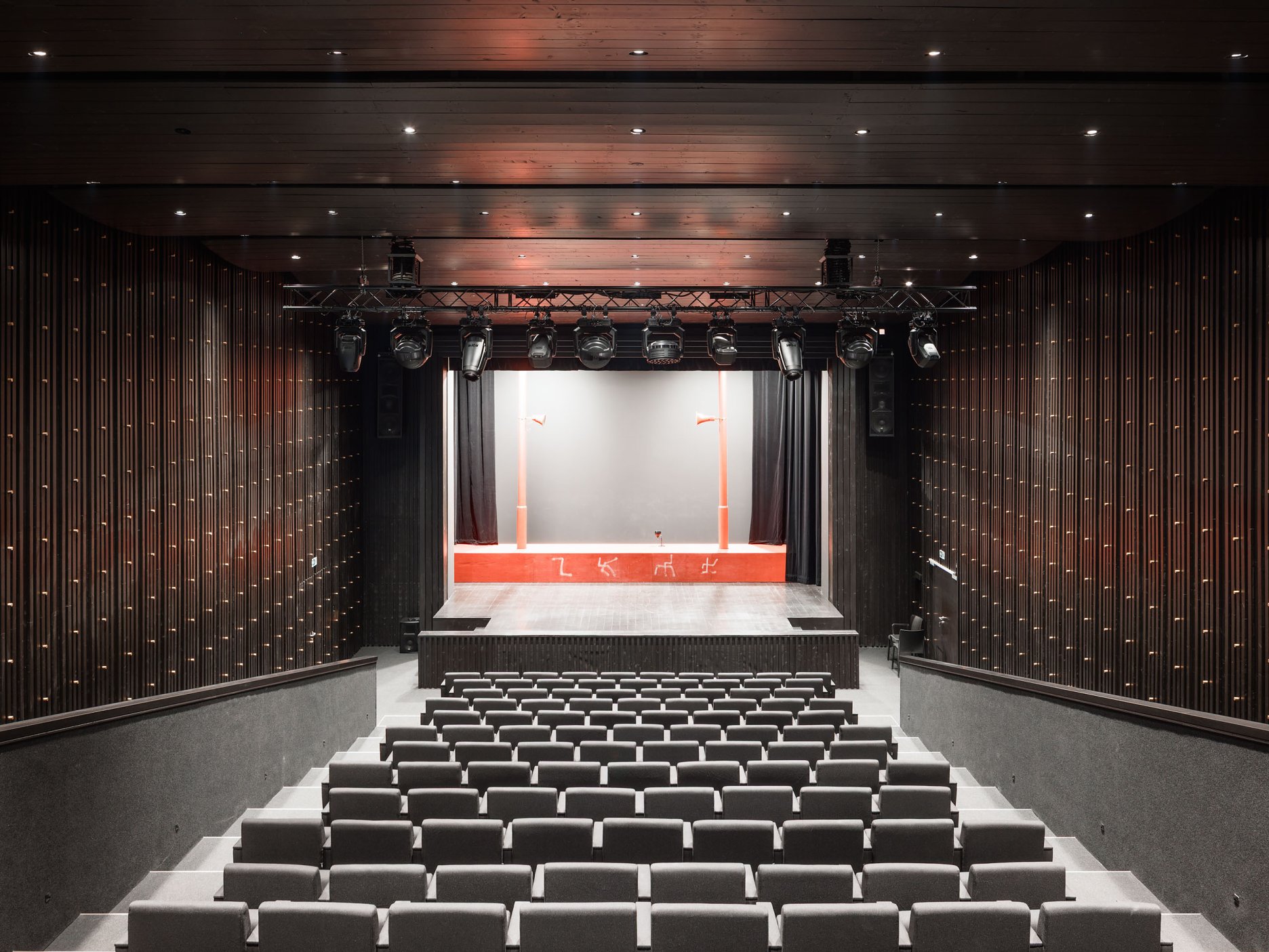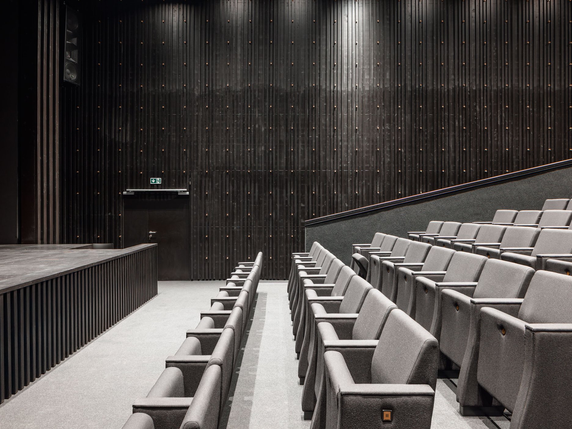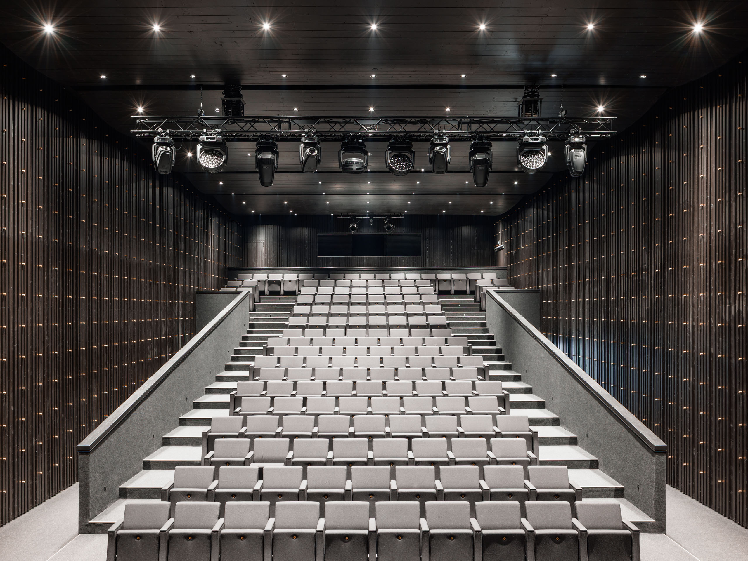 Nové vertikálne konštrukcie sú z monolitického železobetónu a keramickej pálenej tehly. Nové stropy sú železobetónové; nad malou sálou sú oceľové uzavreté nosníky s trapézovými plechmi. Objekt je zateplený kontaktným zatepľovacím systémom s ušľachtilou omietkou. Strechy sú ploché jednoplášťové a dažďová voda je odvádzaná do vsaku systémom skrytým v zateplení. Okná sú hliníkové s izolačným trojsklom. Interiéry kombinujú pohľadový betón, hladké omietky a brúsený betón. Obe sály sú riešené v kontrastnej materialite: drevený akustický obklad a podhľad v čiernej farbe dopĺňa „pattern“ mosadzných prvkov, ktoré dodávajú priestoru noblesu. Objekt je vykurovaný kaskádou tepelných čerpadiel vzduch/ voda, hlavné priestory sú vybavené vzduchotechnikou a javiskovou technikou na súčasnej úrovni. Interiéry sú zariadené striedmym, kvalitným mobiliárom.