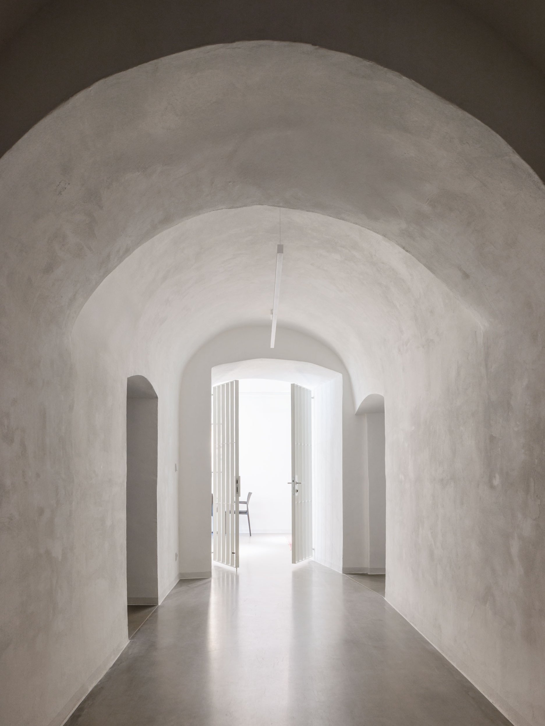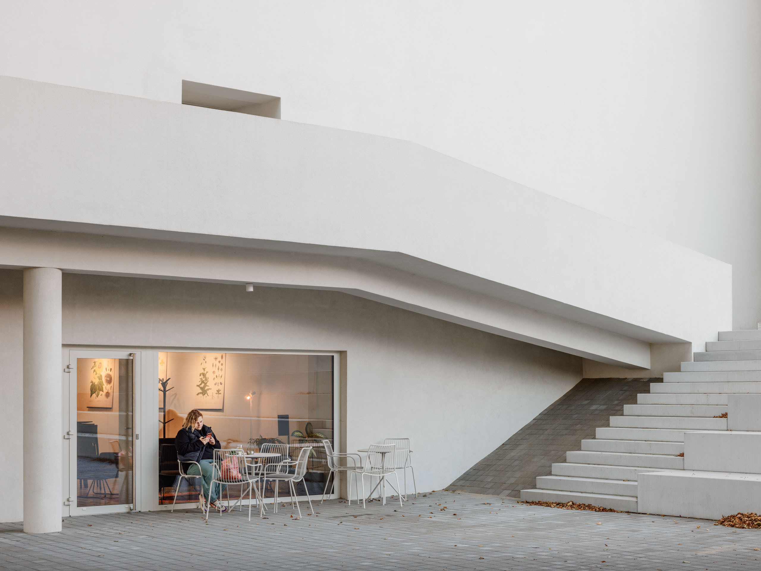Architektonický koncept pracuje s výraznými hmotami strešnej krajiny a so zaoblenými formami, ktoré vstupujú do dialógu s historickou parceláciou a gotickými klenbami zachovanými v podzemí.