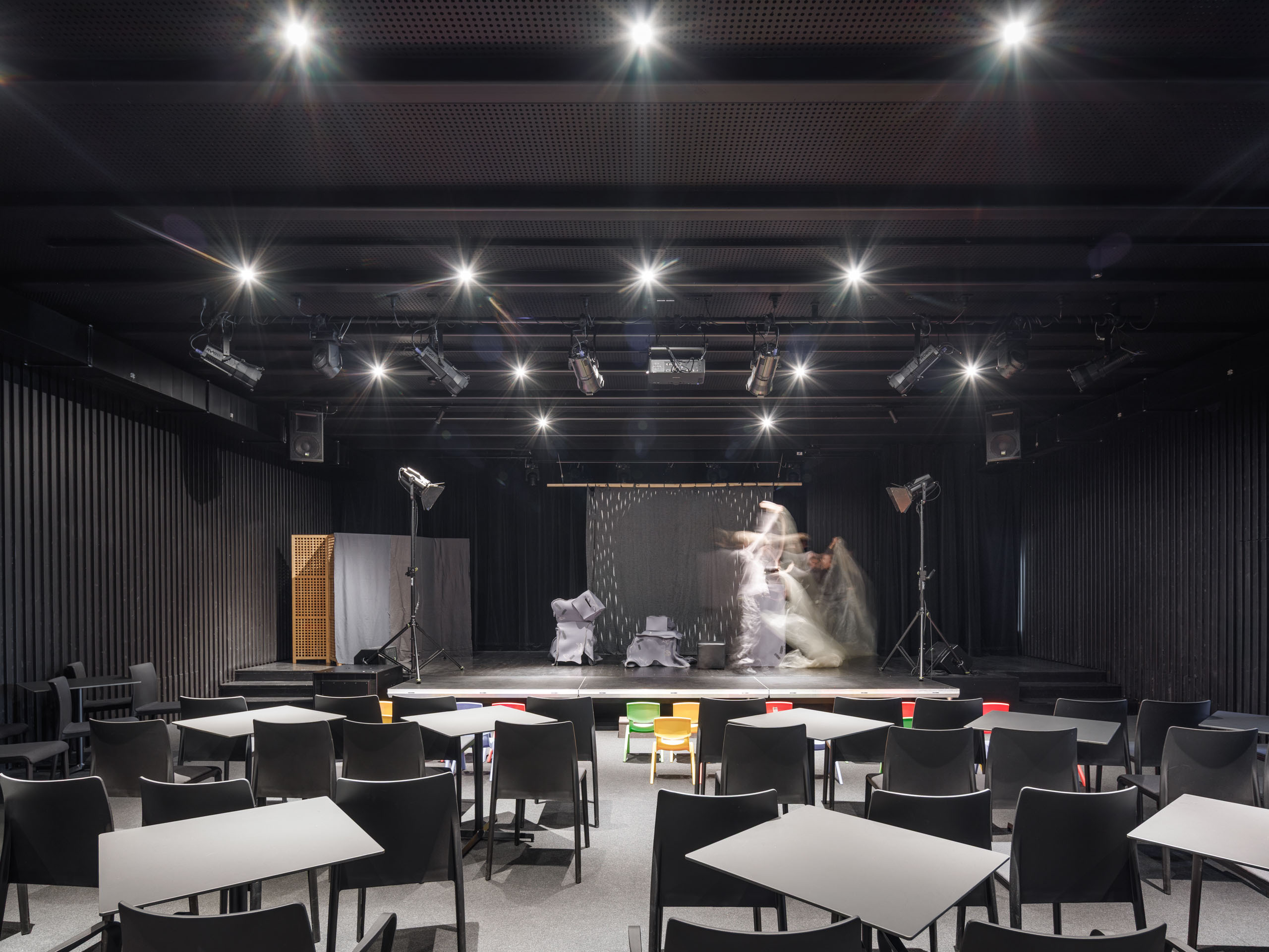 Architektonický návrh rešpektuje pôvodnú priestorovú skladbu, ale zároveň definuje nové prevádzkové väzby potrebné pre plnohodnotné fungovanie divadla. Dominantným priestorom je hlavná sála s pevnou eleváciou hľadiska. Na 3. nadzemnom podlaží sa nachádza malá sála situovaná v strešnej nadstavbe, doplnená priestormi zázemia účinkujúcich orientovanými k potoku. Podzemné podlažie obsahuje hygienické zázemie návštevníkov, technické priestory a kaviareň Záhrada s priamym kontaktom na „letnú scénu“ na východnej časti parcely. Architektonický výraz objektu je civilný, no modelácia hmoty odzrkadľuje jeho verejnú a kultúrnu funkciu.