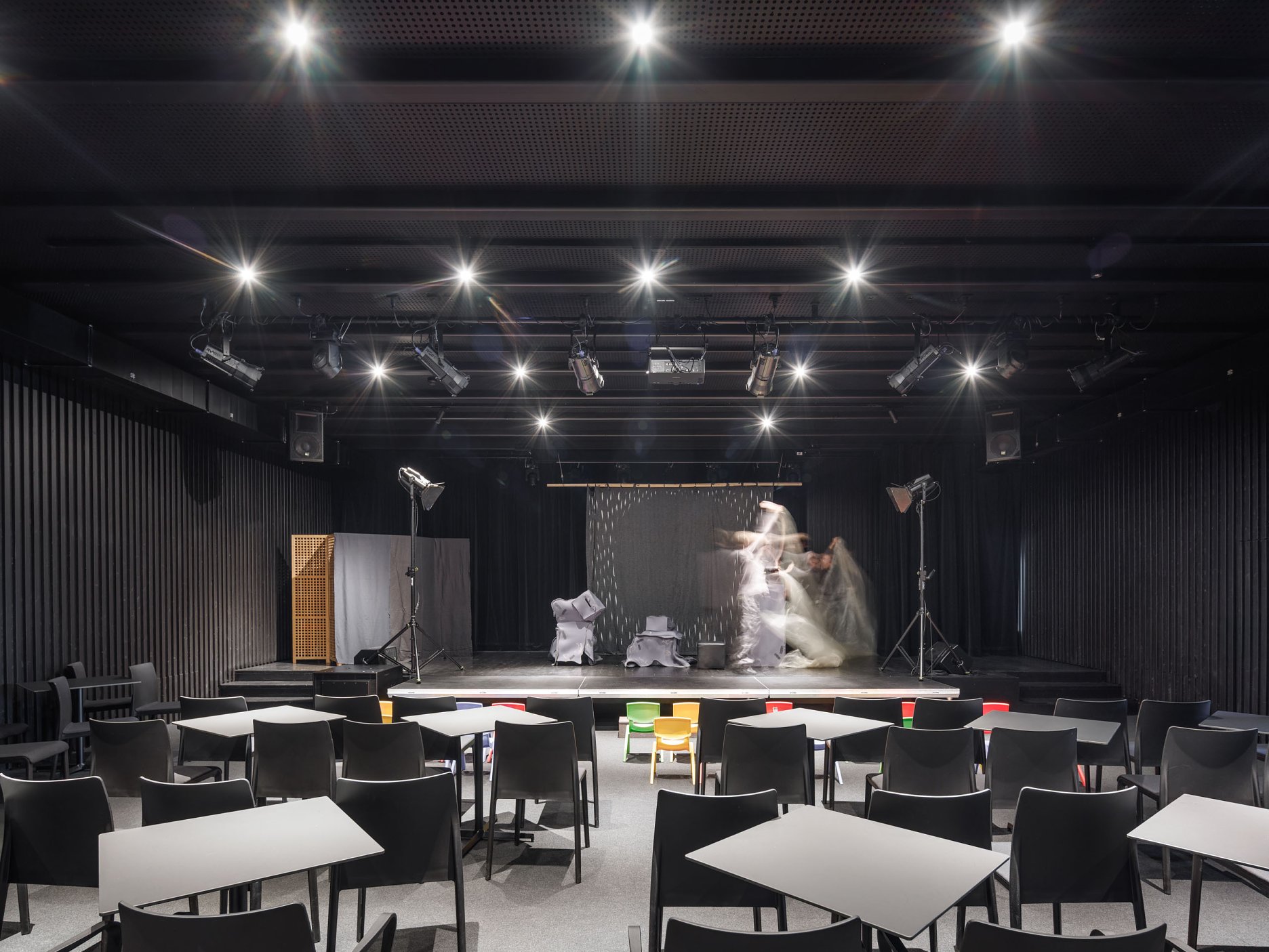 Dispozícia prirodzene nadväzuje na pôvodný nosný systém, no zároveň vytvára plnohodnotný priestor pre súčasné divadelné umenie. Dôležitú súčasť projektu tvorí kaviareň "Záhrada", letná scéna pri Velickom potoku a terasa orientovaná na panorámu Tatier.