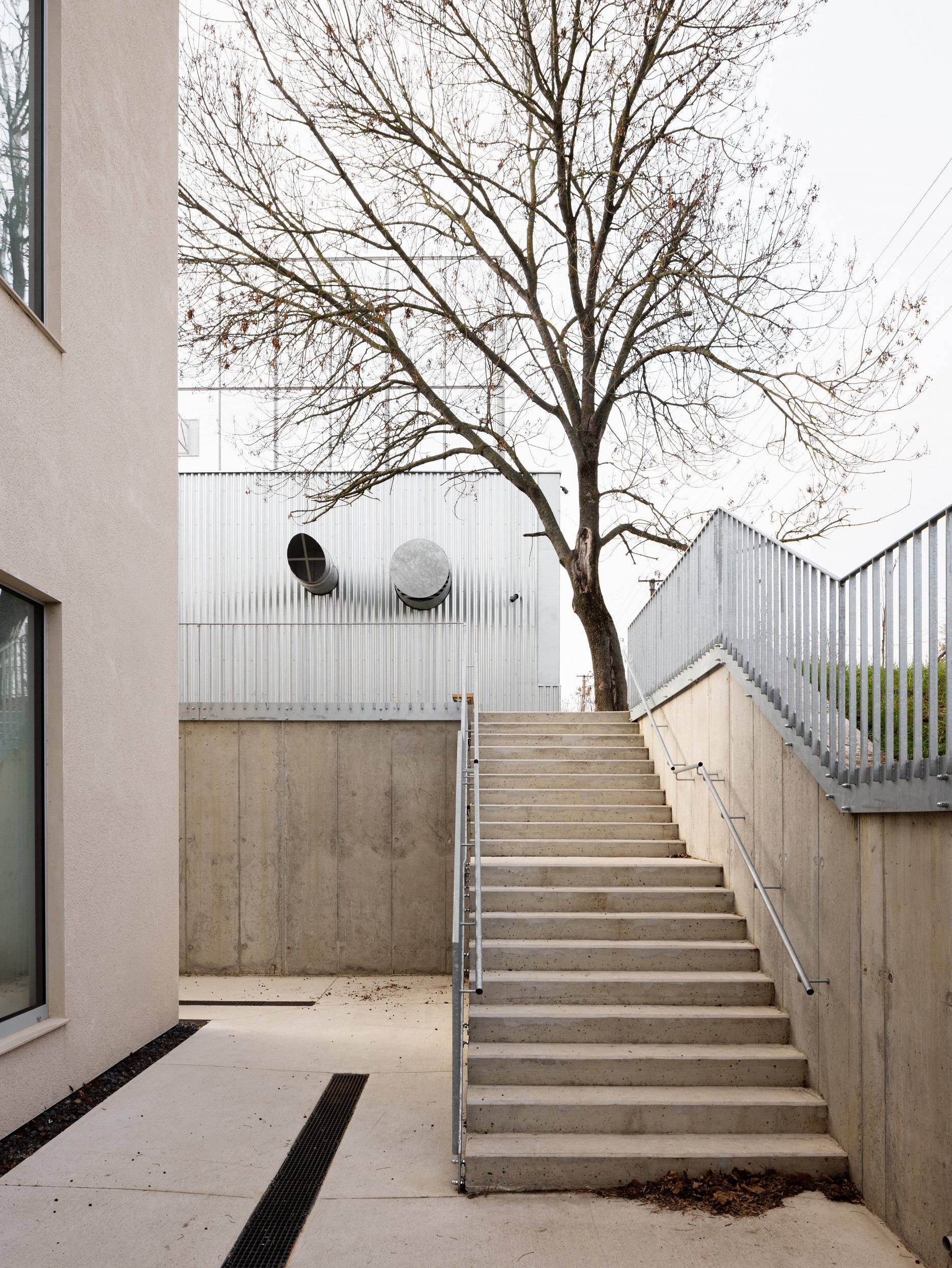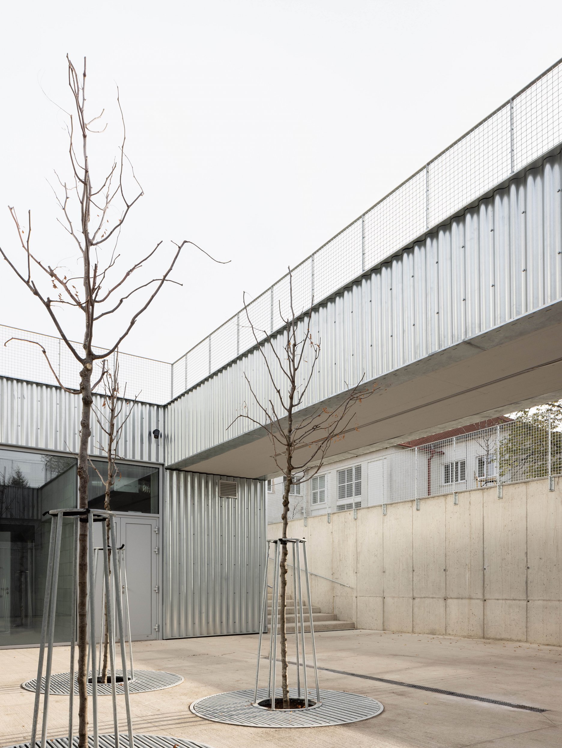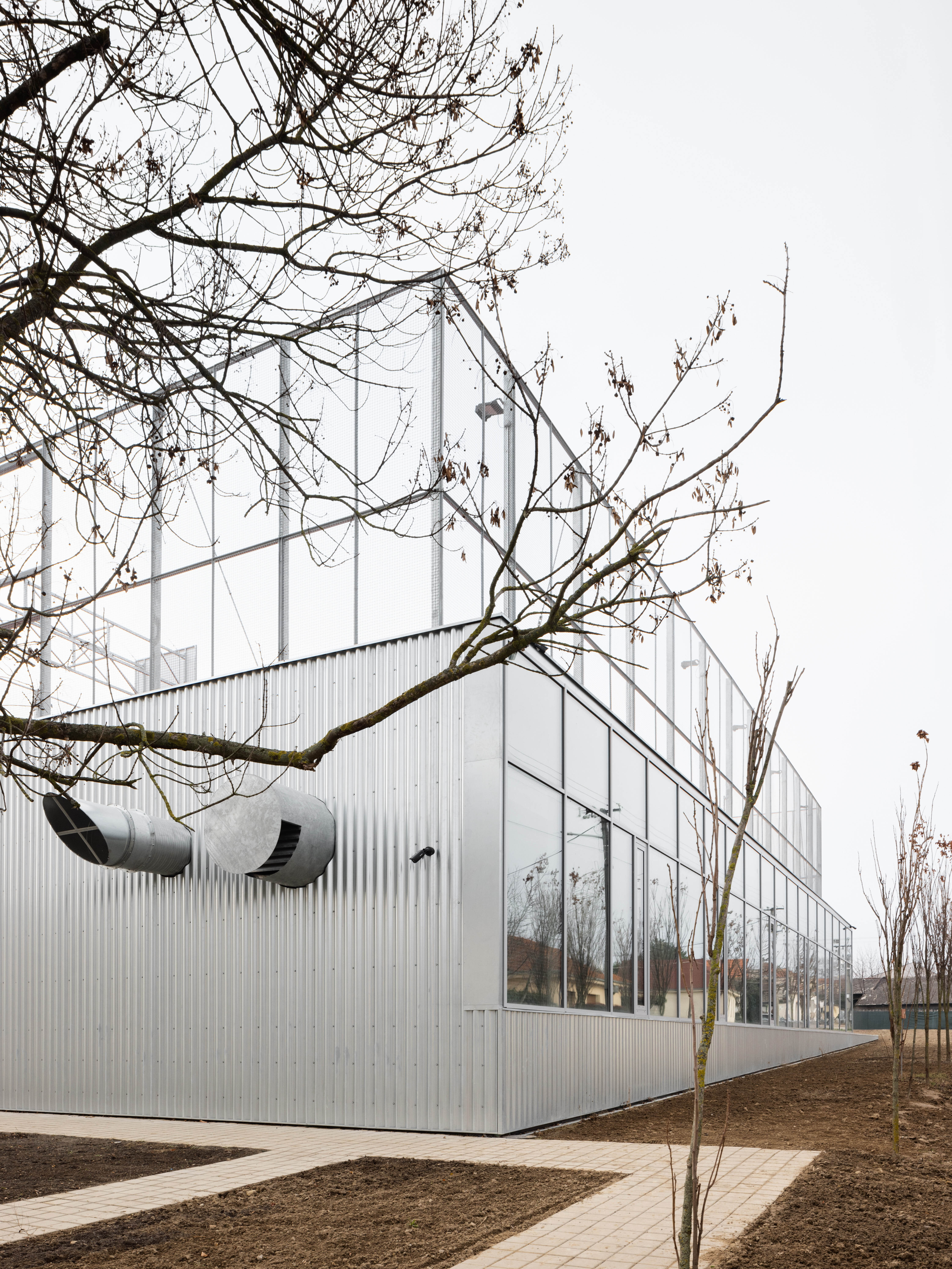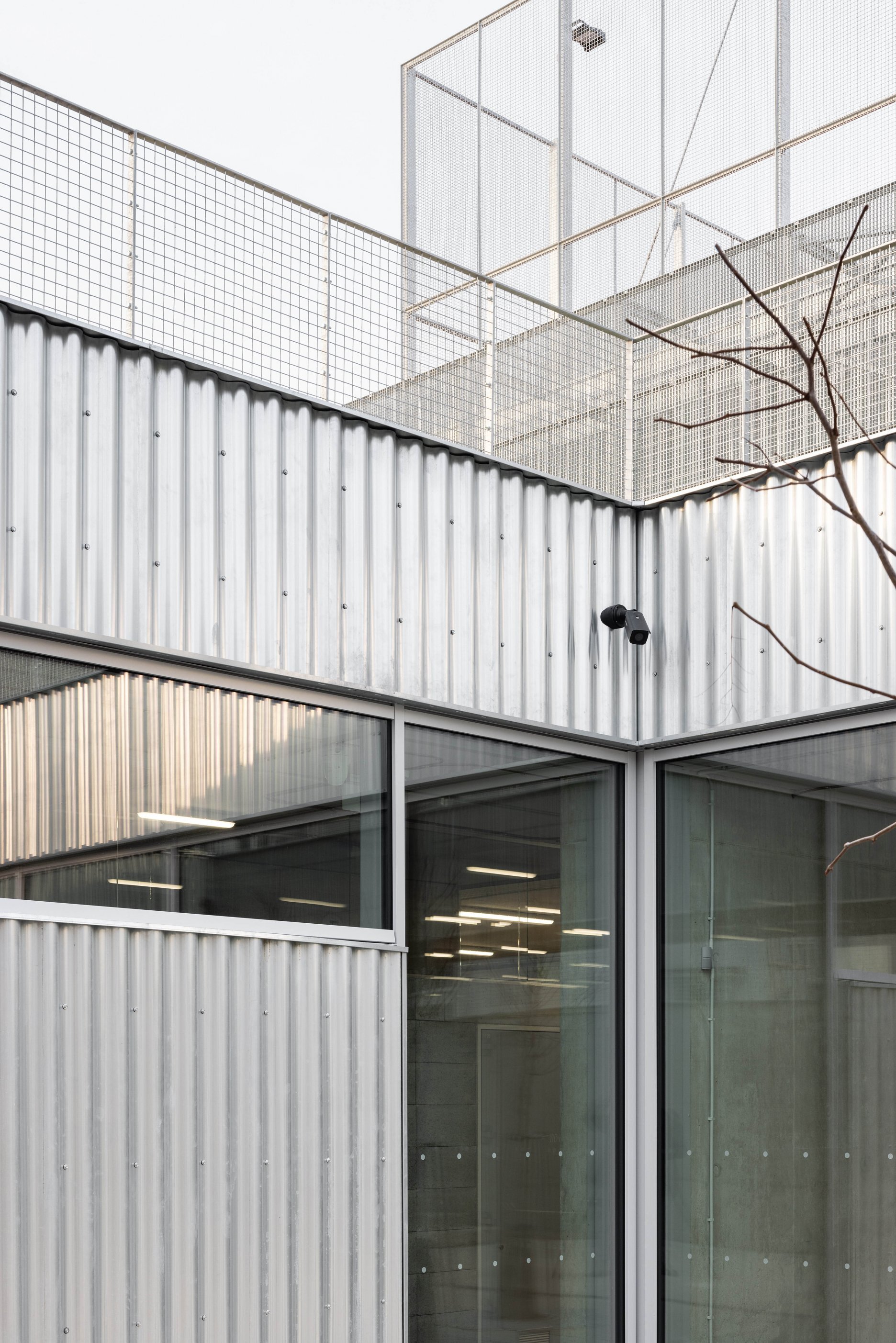 Práca architektov s dôrazom na efektívne a funkčné riešenie zadania sa odzkadľuje aj v technicistickom zovňajšku v podobe predsadenej fasády z vlnitého plechu.