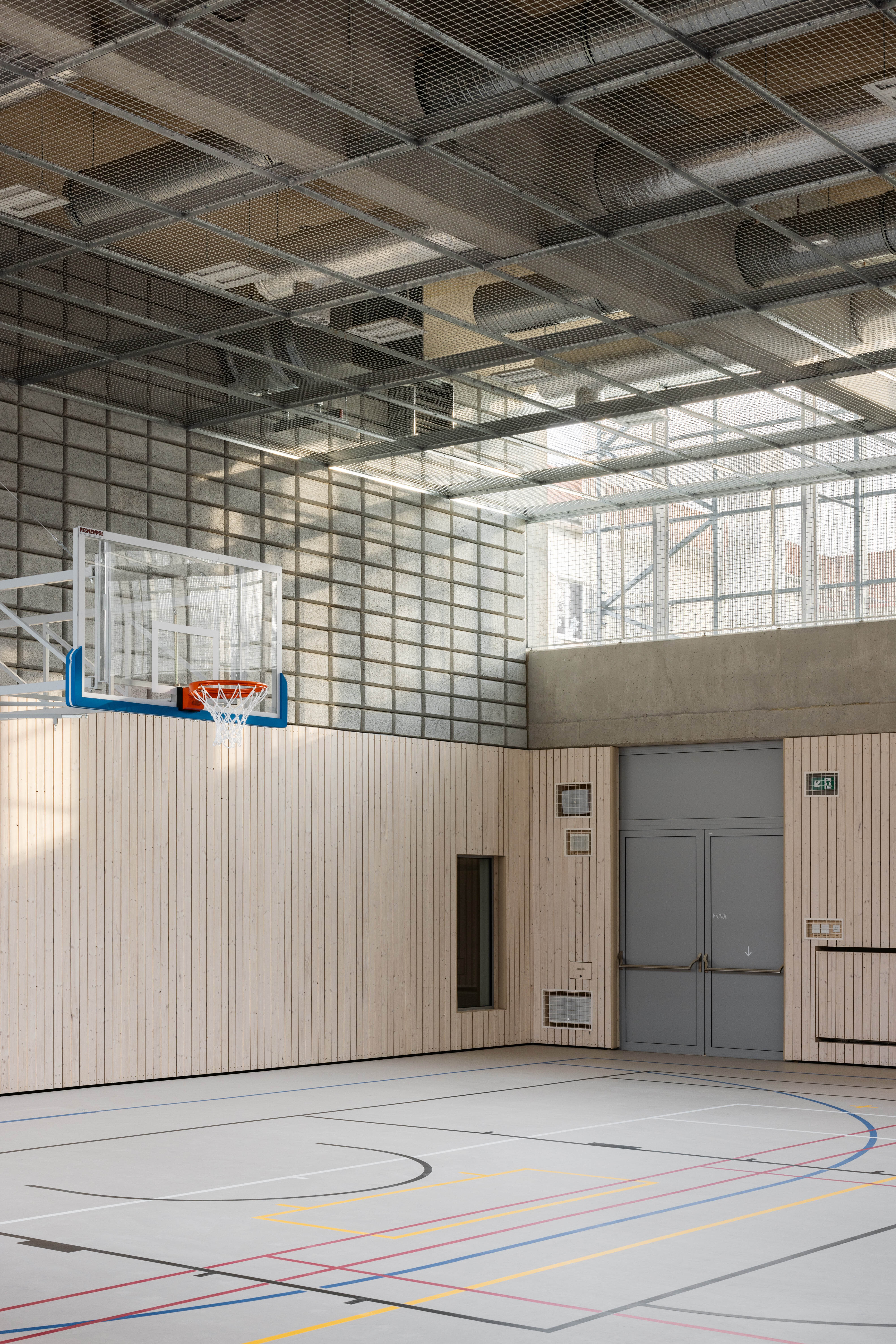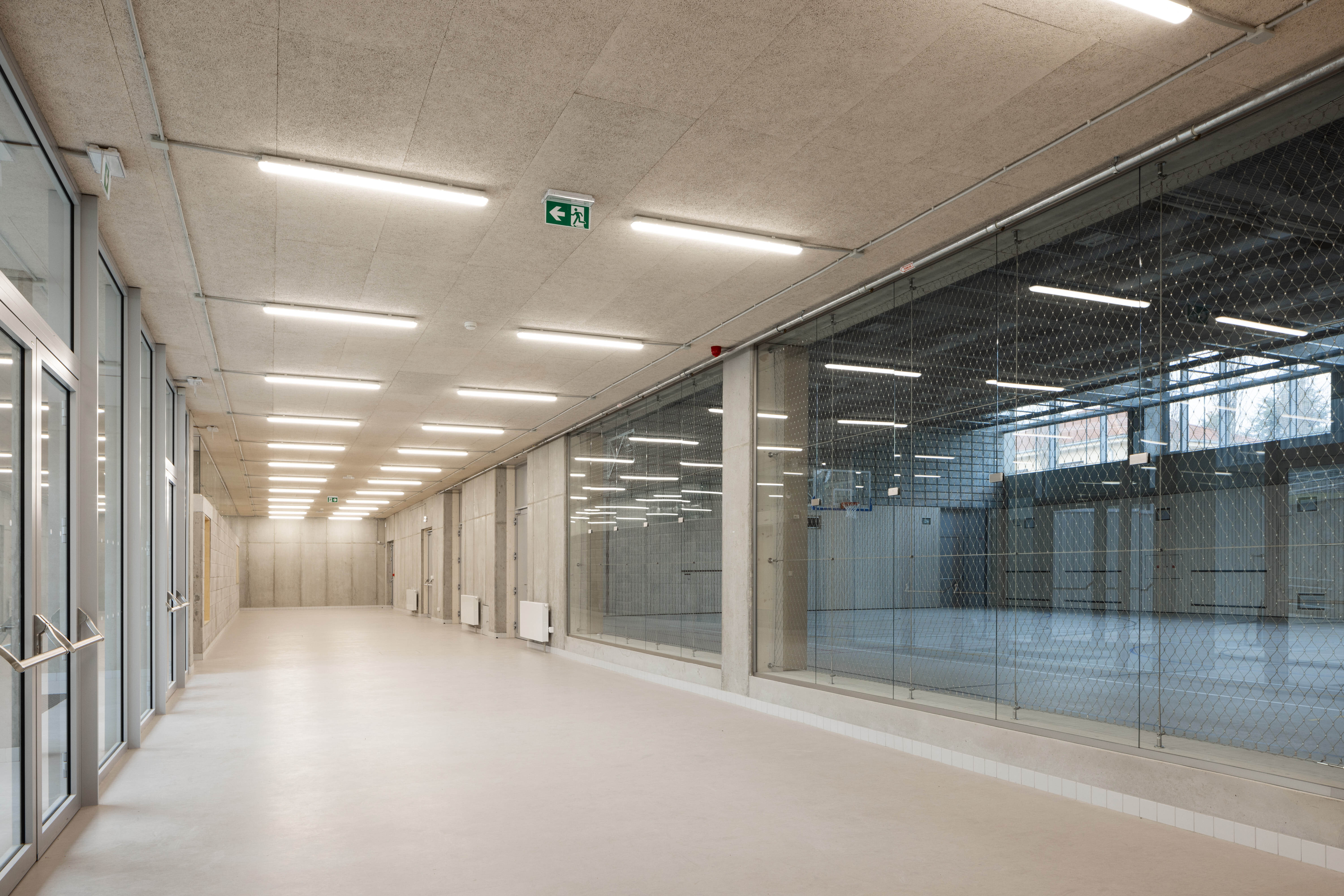Do foyer ústi aj podzemná spojovacia chodba prepájajúca školu s halou.