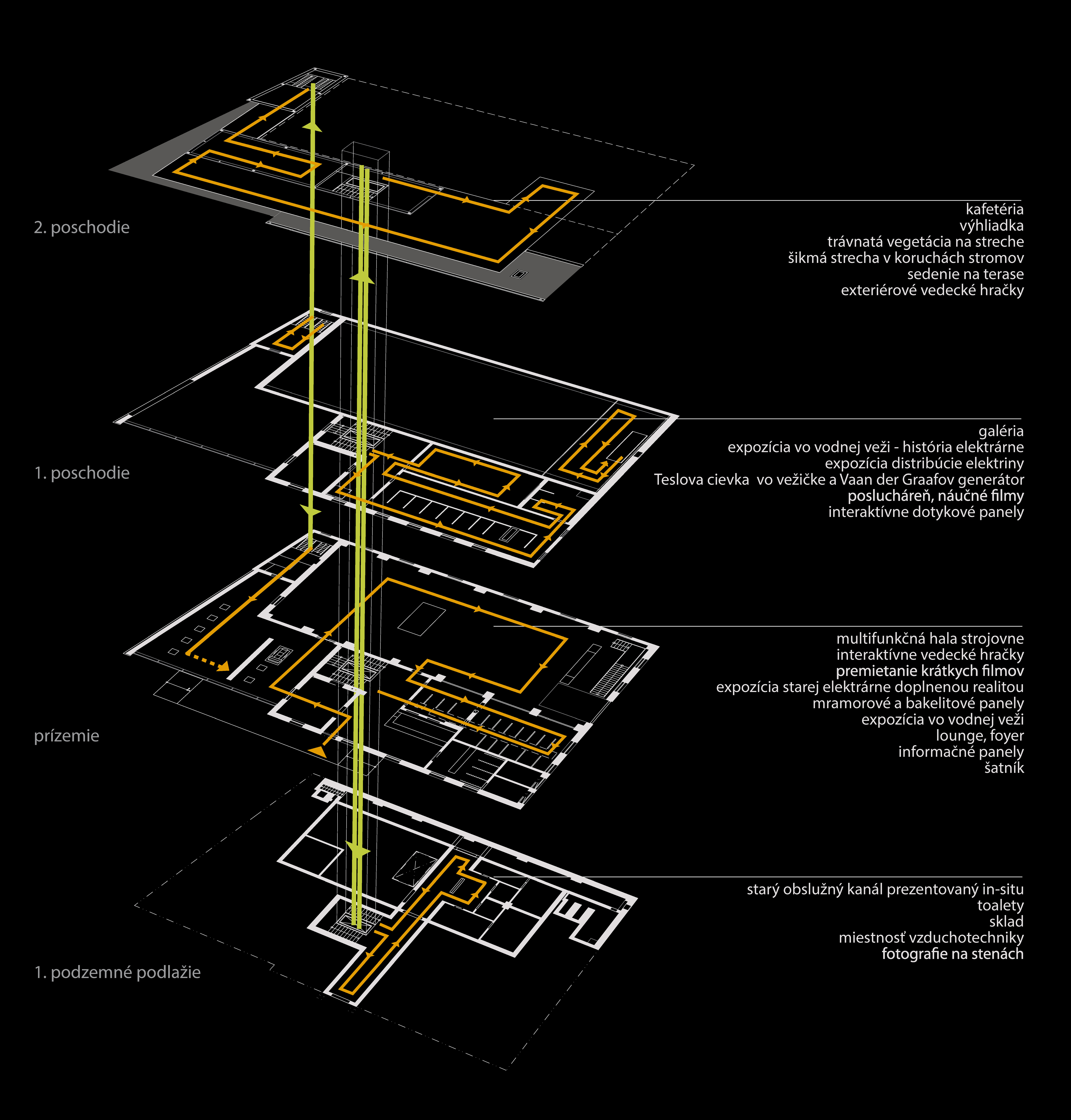 Dispozičná skladba objektu priznáva prevádzkovú schému výroby, je jasná a čitateľná. Budova starej elektrárne je konzervovaná a čiastočne adaptovaná pre širšie spoločenské využitie s cieľom podporiť predovšetkým rozvoj vedecko-technického poznávania detí a mládeže.