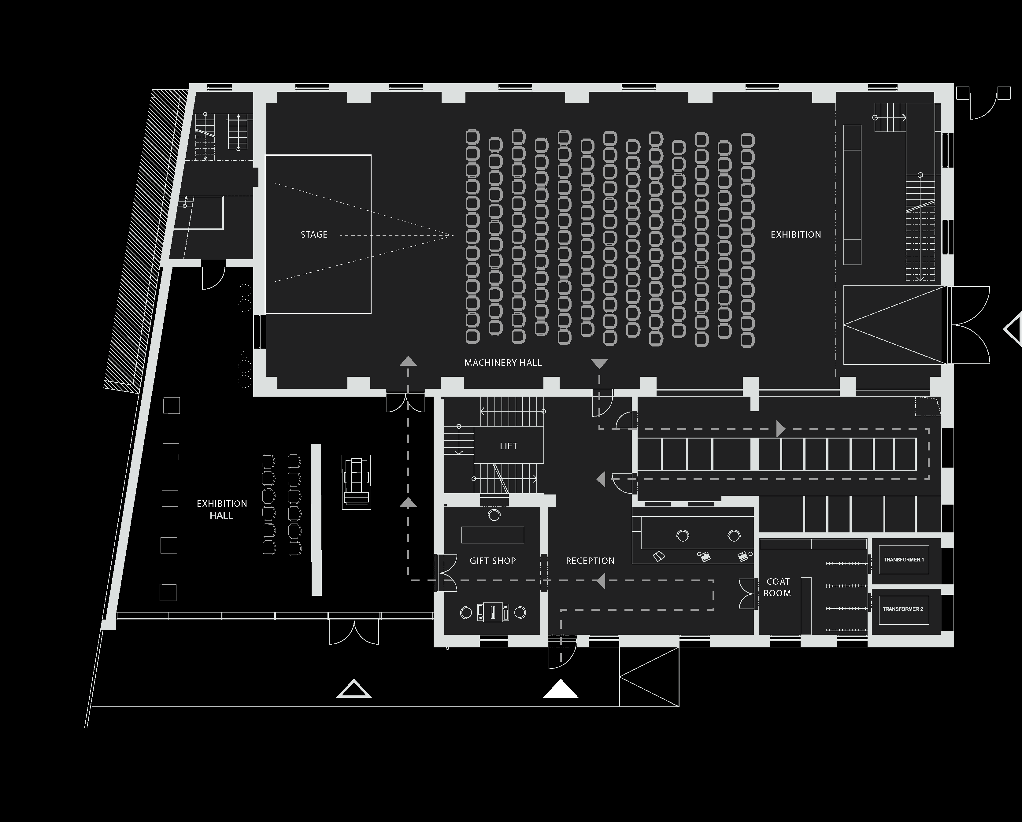 Hlavným a najdôležitejším princípom navrhovaného zásahu sú minimálne zmeny do pôvodnej konštrukcie, zachovanie všetkých pôvodných charakteristických znakov, štruktúry a interiérových technických prvkov a citlivá adaptácia na novú prevádzku. Doplnené nové konštrukcie sú neinvazívne a reverzibilné. Odstraňujú sa len niektoré časti priečok a múrov pre potreby prepojenia priestorov, ktoré však nenarúšajú pôvodný charakter ani statiku objektu. V návrhu sa rešpektujú a prezentujú všetky stavebné etapy s minimálnymi zásahmi do historicky výpovedného interiéru a zároveň sa adaptujú na nové požiadavky. Pridávajú sa nové hygienické zariadenia, ktoré pri novej funkcii budovy sú nevyhnutné v súlade s platnými hygienickými normami. Umiestené sú spolu so skladovými priestormi v novom doplnenom suteréne pod bývalou výrobnou halou.